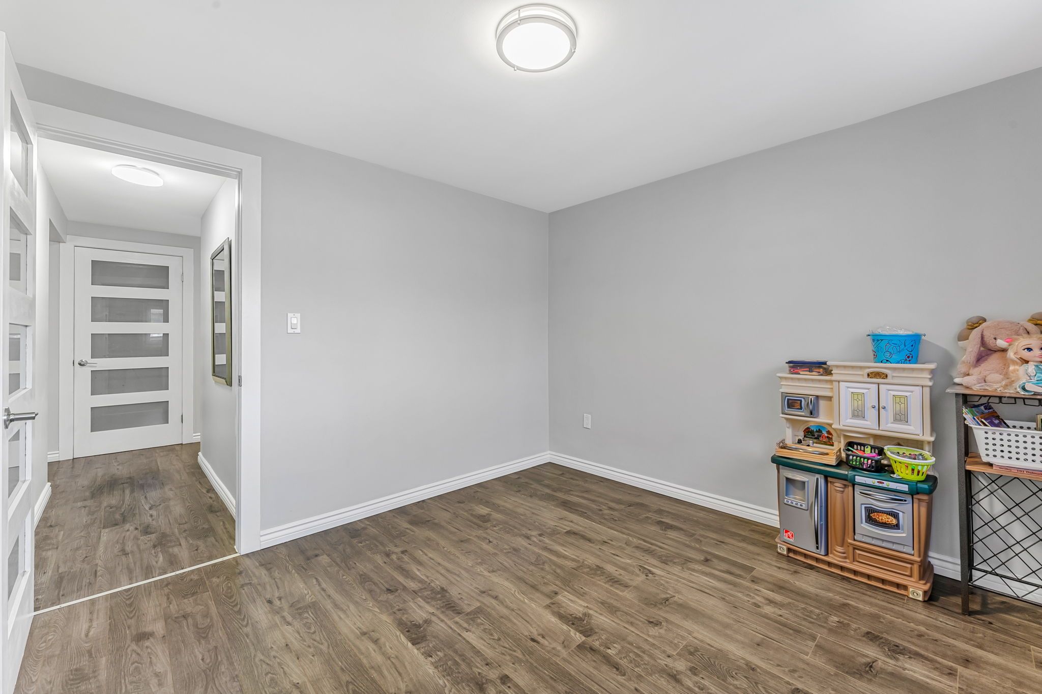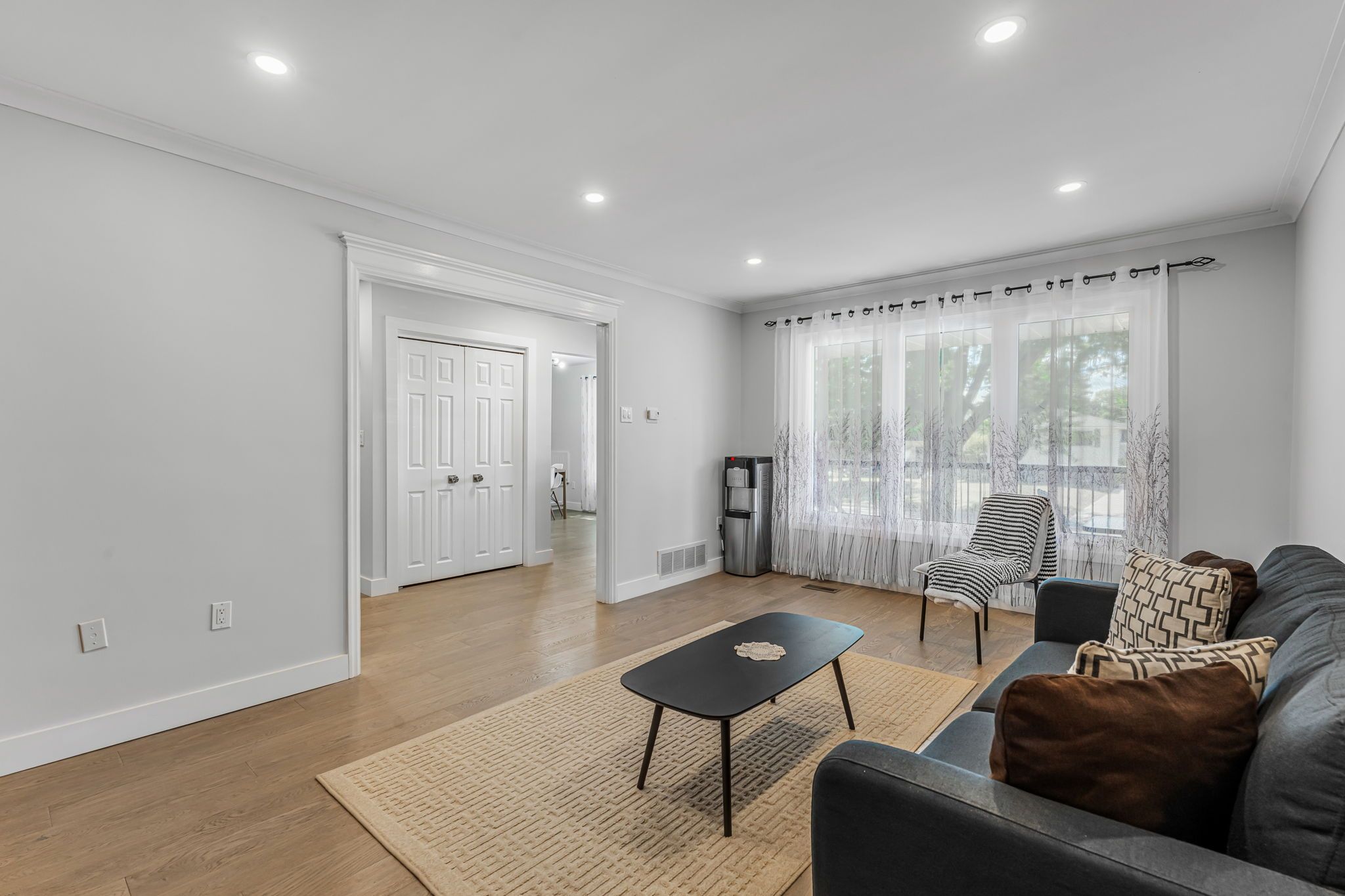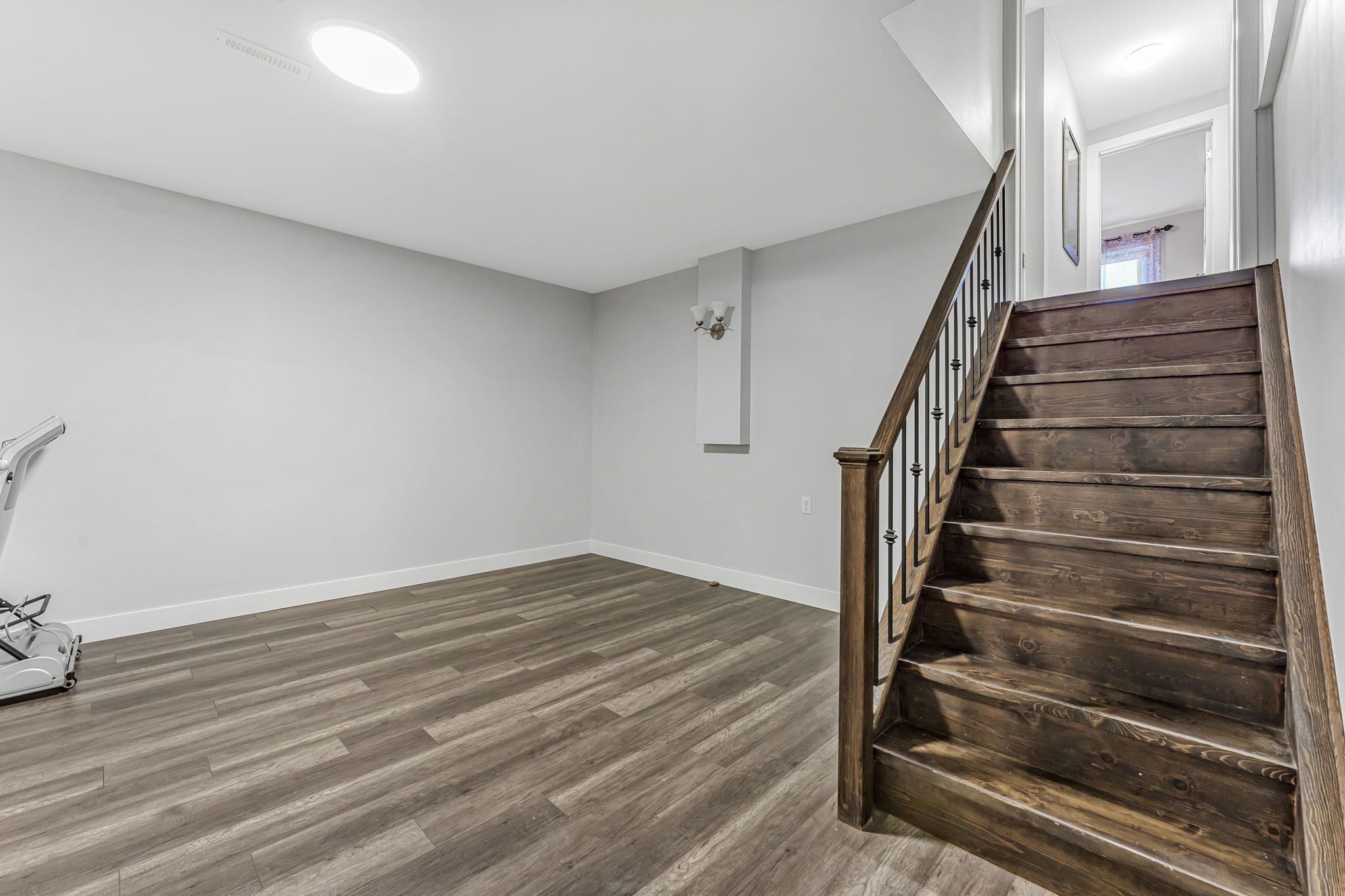 • Finished basement with high ceilings, large windows, and additional storage.