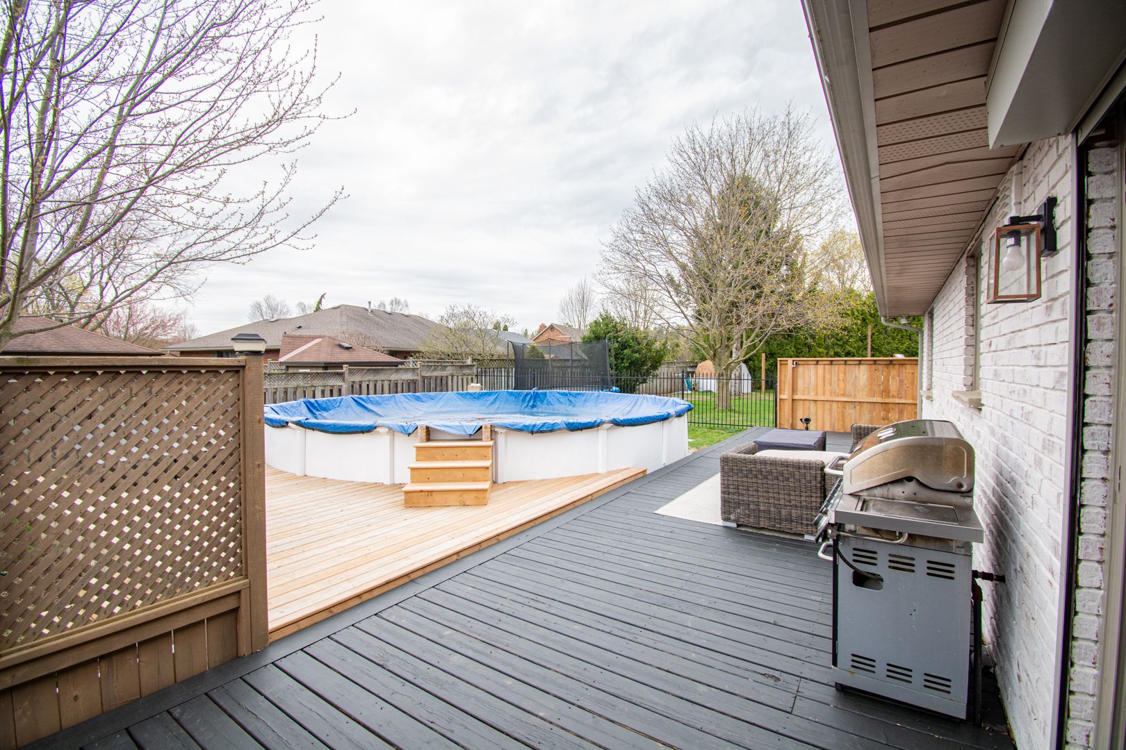 • Spacious lot featuring a heated above-ground pool and RV parking.