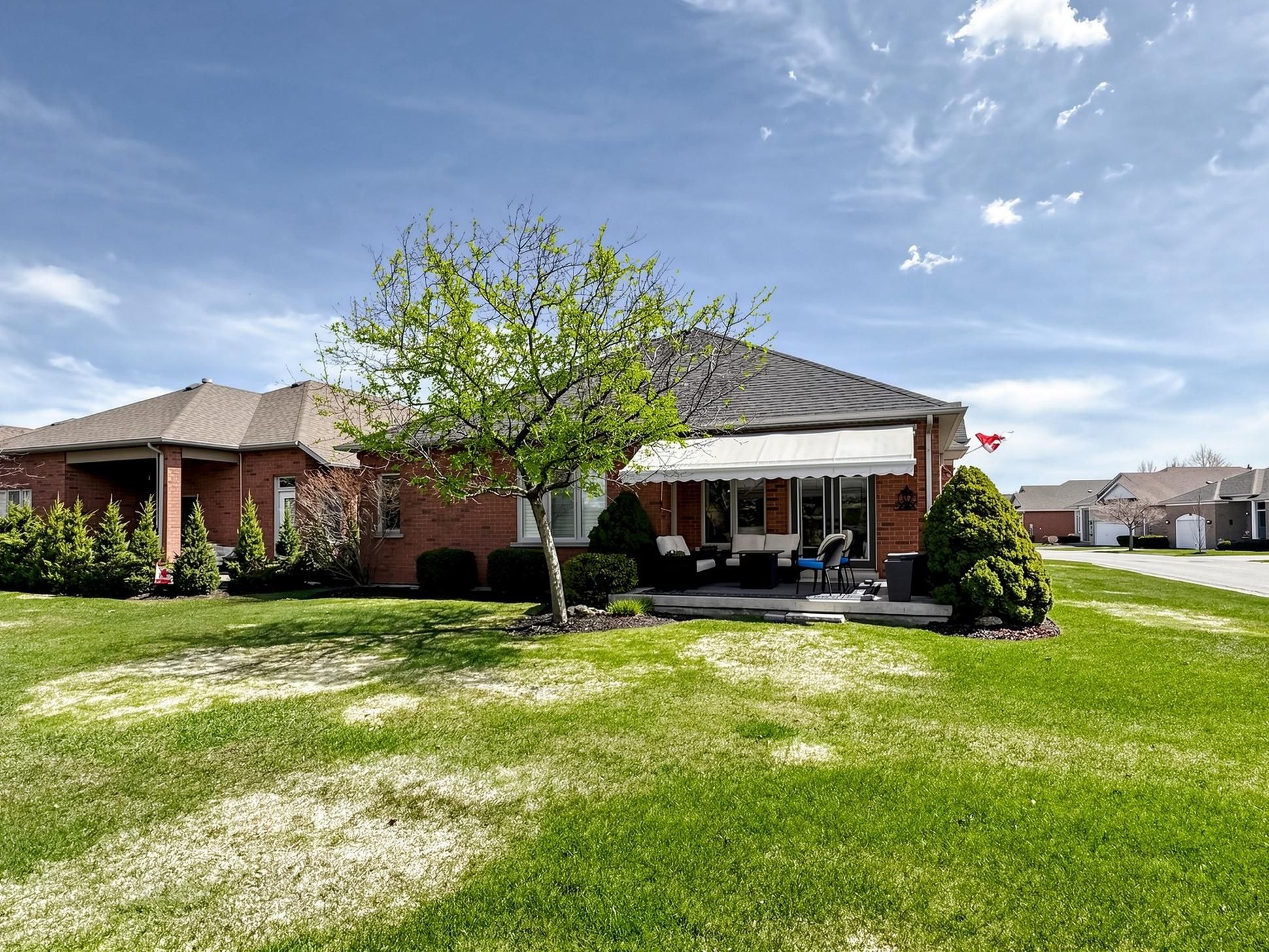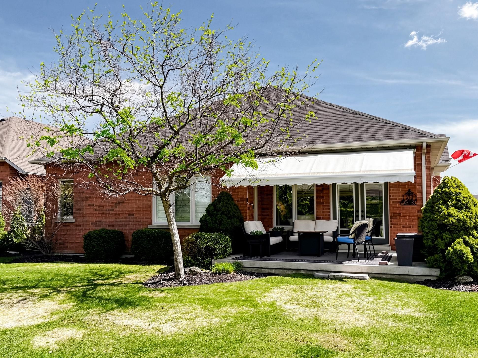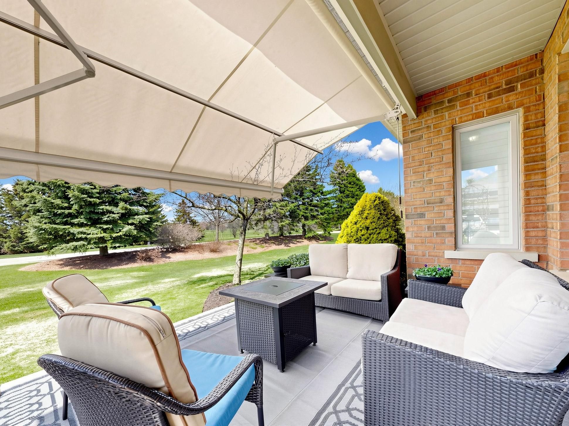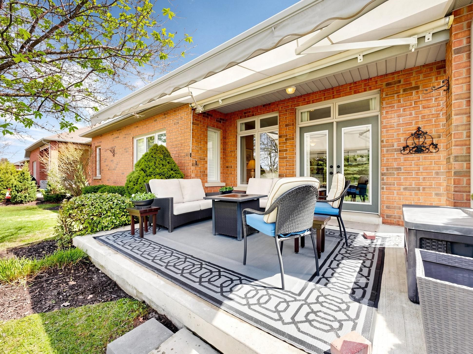 • Large covered patio with remote awning, great for gatherings.