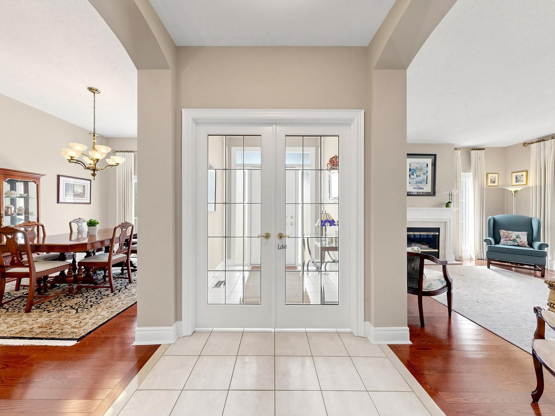 • Enclosed front foyer with French doors for added elegance.