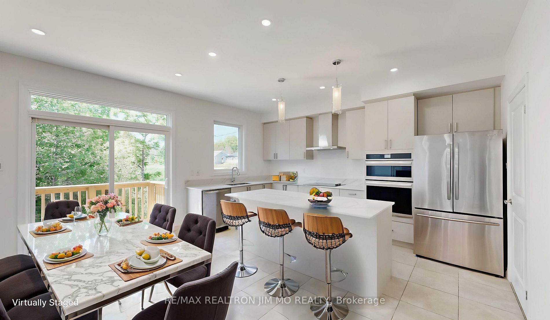 Fully upgraded 4+1 bedroom, 5 bath detached home with double garage and legal walk-out basement second dwelling (unit 299, town of georgina)set on a quiet street in a new southwest sutton subdivision and backing onto mature woods, this immaculate home blends upscale finishes with smart income potential. The open-concept main level features 9-ft ceilings, a large eat-in kitchen with central island, quartz countertops, built-in stainless appliances, and modern led pot lights. A spacious family room with gas fireplace, a main-floor den/office, and convenient laundry with direct garage entry complete the layout. Premium finishes throughout include stained hardwood floors and stairs, no carpet, and designer lighting. The oversized primary suite offers a walk-in closet and a luxurious ensuite with soaker tub and glass shower. All upstairs bedrooms provide ensuite access (2 full ensuites + 2 semi-ensuites) for exceptional functionality and comfort. The lower level is a fully self-contained, code-compliant second dwelling offering an additional 841 sq ft of living space. The suite features its own kitchen, bedroom, bathroom, laundry, and private entrance. Fully inspected, fireproofed, and officially registered as unit 299 with the town of georgina, this legal walk-out basement presents a rare opportunity for multigenerational living or reliable rental income. Minutes to hwy 48, schools, shopping, parks, and transit. Move-in ready. Please note: virtual staging for illustration only.
