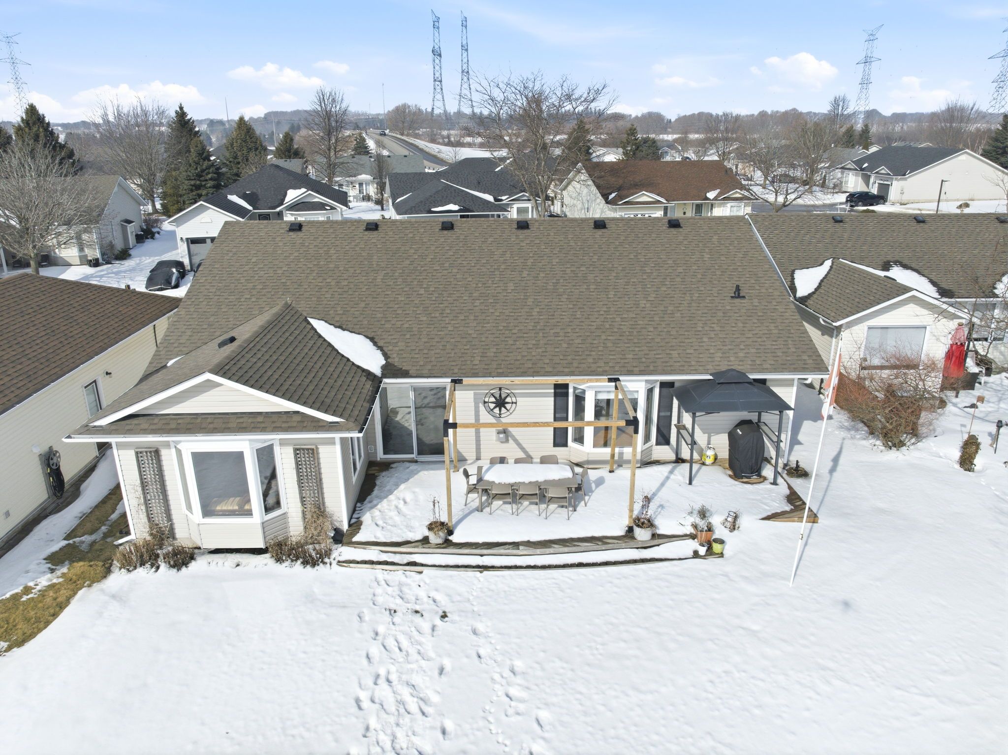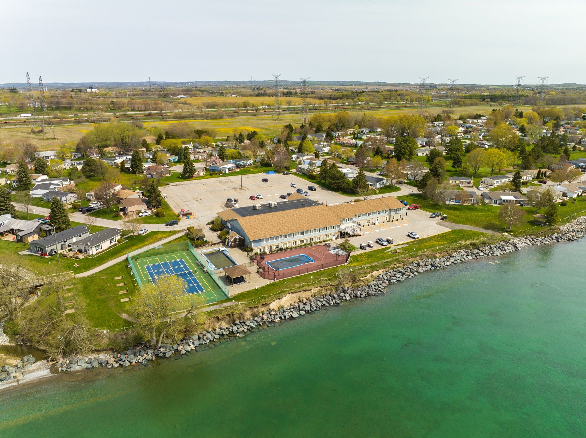 **rare west-end waterfront opportunity in wilmot creek. This sought-after oakridge plus model offers approximately 1,700 sq ft of well-designed living space, a double car garage, and unobstructed panoramic views of lake ontario from multiple principal rooms. Enjoy coffee while the sun-rises and entertaining at sunset in this south facing luxury home. Vaulted ceilings and expansive windows fill the open-concept living and dining areas with natural light, anchored by a gas fireplace and stunning lake views. A standout feature is the additional waterfront-facing living space - ideal as a private office, reading lounge, or extended sitting area - surrounded by windows overlooking the water. The spacious primary suite enjoys serene lake views, custom walk-in shelving, and a renovated ensuite with a sleek curb-less glass shower. A bright second bedroom, full bath, and versatile den provide flexible living options. The updated kitchen features new stainless steel appliances, refreshed counters, new sink and faucet, subway tile backsplash, and pot lights throughout the main areas. Freshly painted with new carpeting in the guest bedroom and den. Step outside to the extended waterfront deck with dedicated bbq gazebo area and toja grid solar shade - perfect for entertaining while enjoying open lake views. Additional highlights include double car garage with interior ramp access, ample below-grade storage, owned hot water tank, premium west-end street, and direct lakefront exposure. Enjoy resort-style living with access to golf, indoor and outdoor pools, fitness center, tennis and pickleball courts, billiards room, dog park, marina, walking trails, on-site salon, pharmacy, walk-in clinic and restaurant. Conveniently located minutes to newcastle shopping, dining, hospital services, and quick access to highways 401 and 115. Rarely does a 1,700 sq ft waterfront oakridge plus with double garage become available in this prime location. Landlease $1300. 00 + taxes of $288. 85.