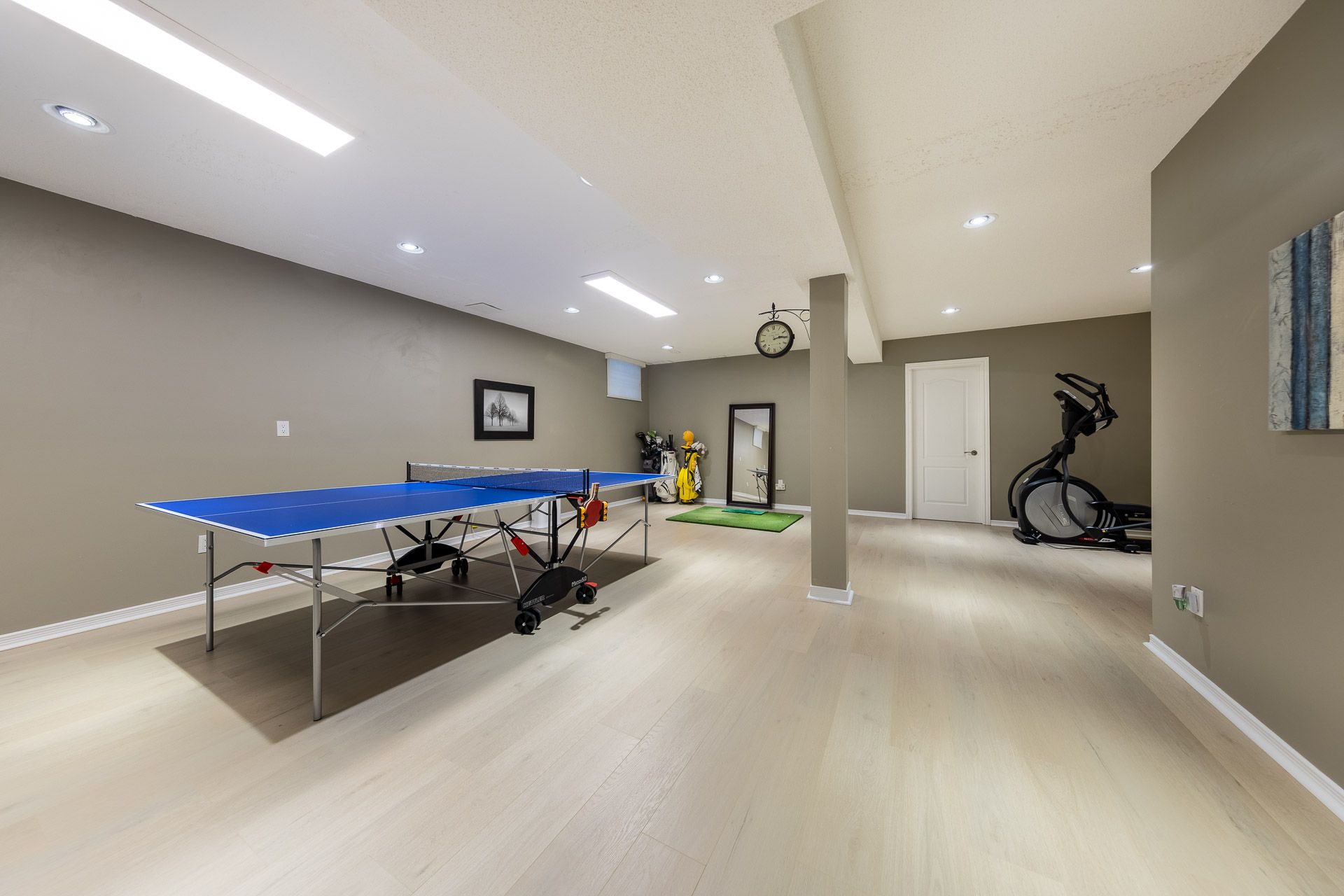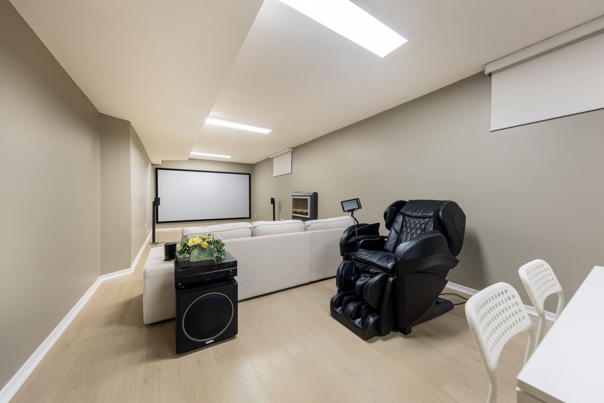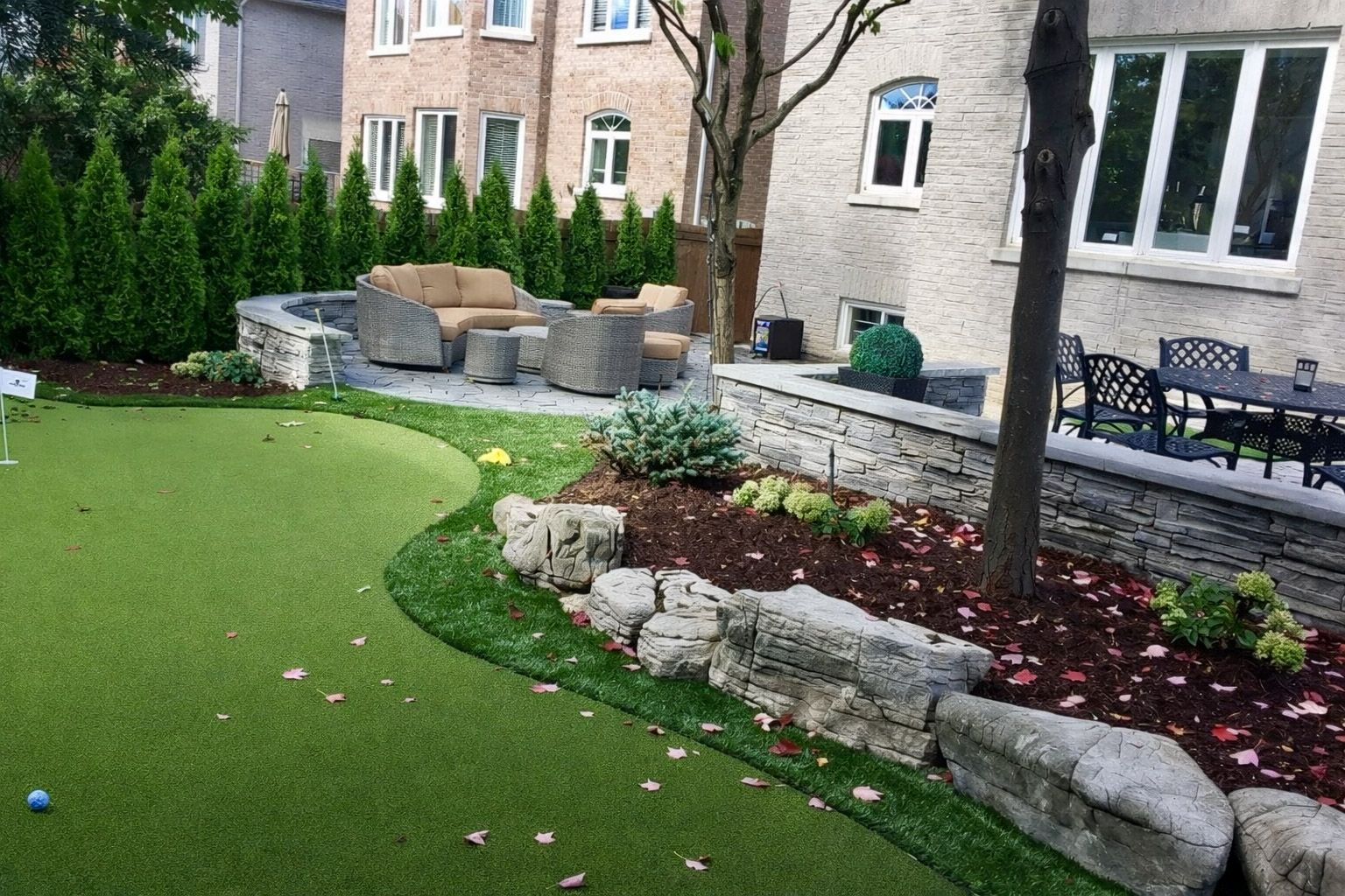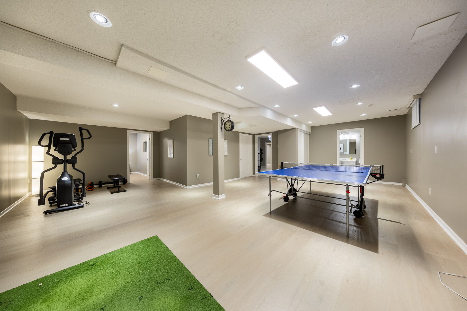 An extraordinary residence in the prestigious bayview hill enclave of richmond hill, located within top-ranking school districts and moments to parks, fine shopping, major highways, and transit. Offering approximately 4,100 sq. Ft. Of refined living space with 5 bedrooms, this home blends elegance with exceptional craftsmanship. A striking full stone façade and bespoke $20k solid wood entry door introduce a breathtaking 18' soaring foyer, setting the tone for the luxury within. Rich hardwood floors throughout, 9' ceilings, 8' solid doors, designer lighting, and extensive upgrades create a sophisticated, upscale ambiance. The elegant chef's kitchen is beautifully appointed with a grand center island, premium quartz surfaces, custom backsplash, and built-in appliances, seamlessly flowing into a sun-filled breakfast area overlooking the professionally landscaped backyard. The inviting family room with fireplace and private main-floor office offer both comfort and functional space for working from home. The primary suite is a true private retreat, featuring a spa-inspired 6-piece ensuite with shower panel tower system, dual walk-in closets (his & her) complete with luxury cabinetry, and an intimate sitting lounge - an ideal space for couples to relax and enjoy their morning coffee together. Secondary bedrooms are generously sized, providing comfort and functionality for the entire family with upgraded semi-ensuites, jacuzzi tubs, and premium shower panel systems. A dramatic skylight fills the home with warm, natural light and welcoming atmosphere throughout. The professionally finished basement is designed for family enjoyment and entertaining with a 144" home theatre experience, recreation and fitness space, and a guest suite. Exterior living is equally impressive with professional interlocking, ambient exterior lighting, sprinkler system, manicured landscaping, bbq area, and a private putting green. No sidewalk for extended driveway parking.