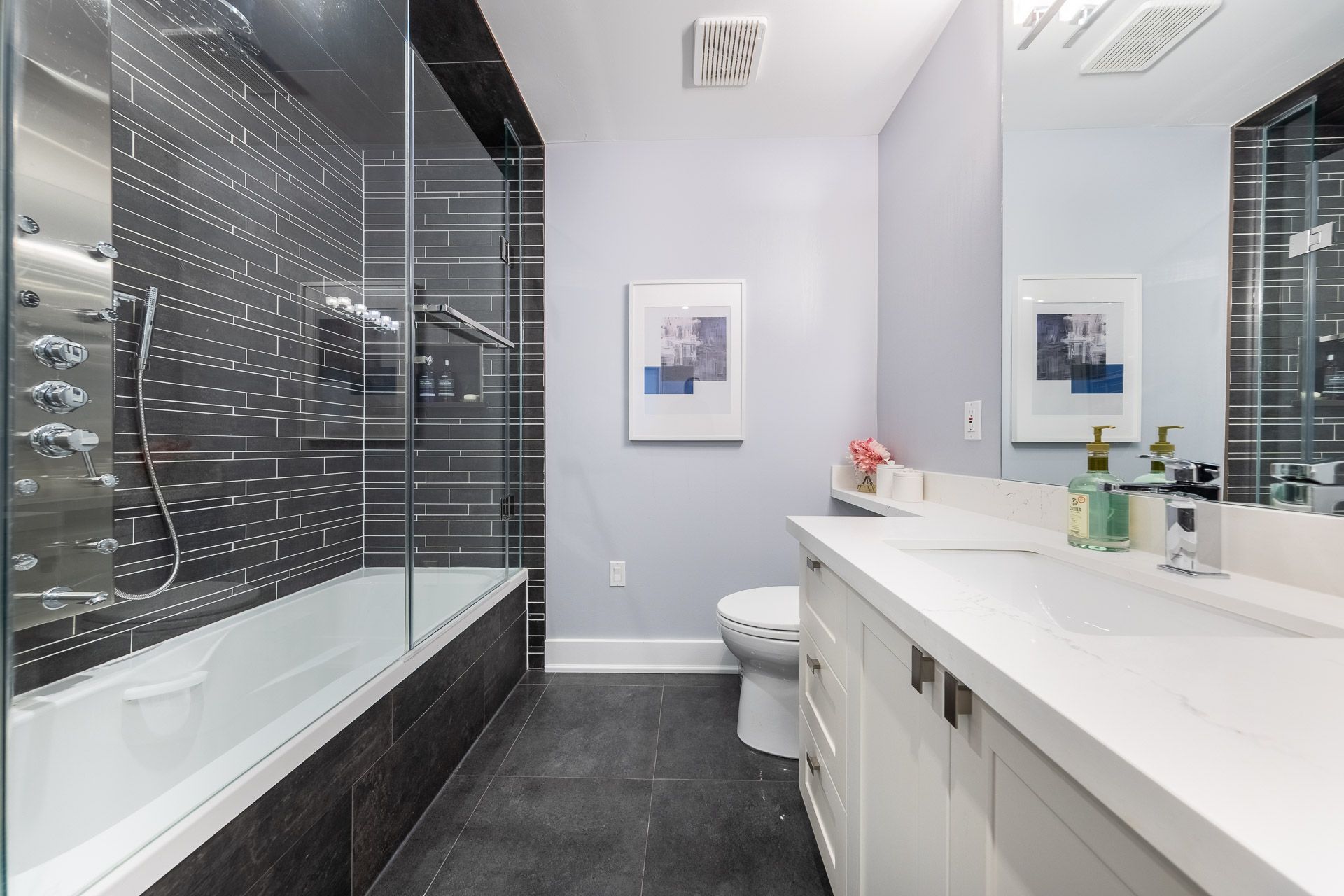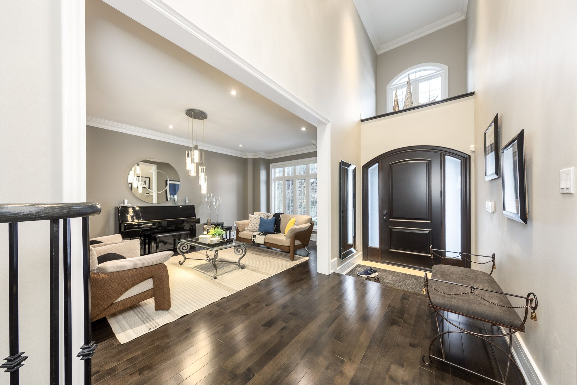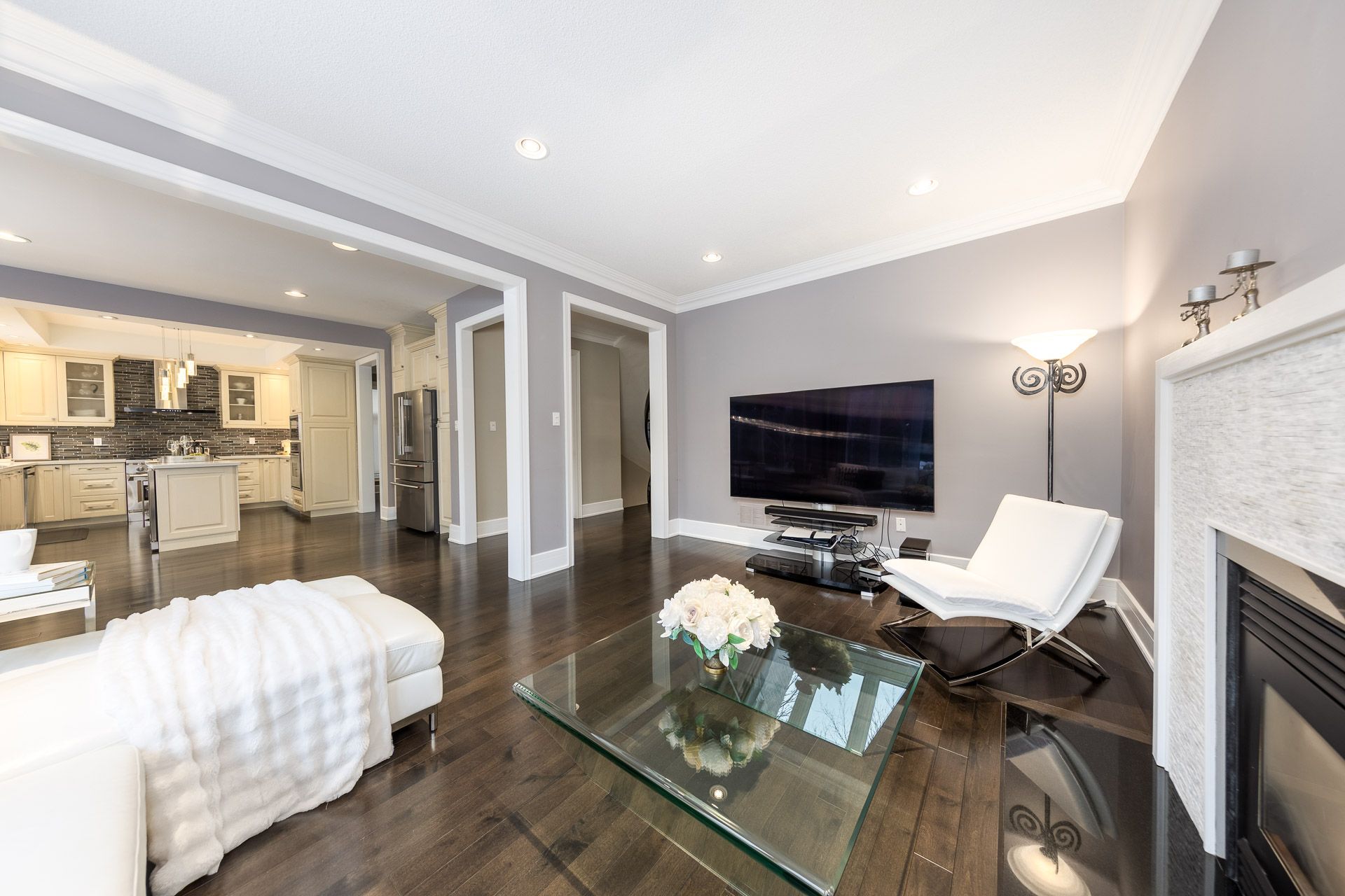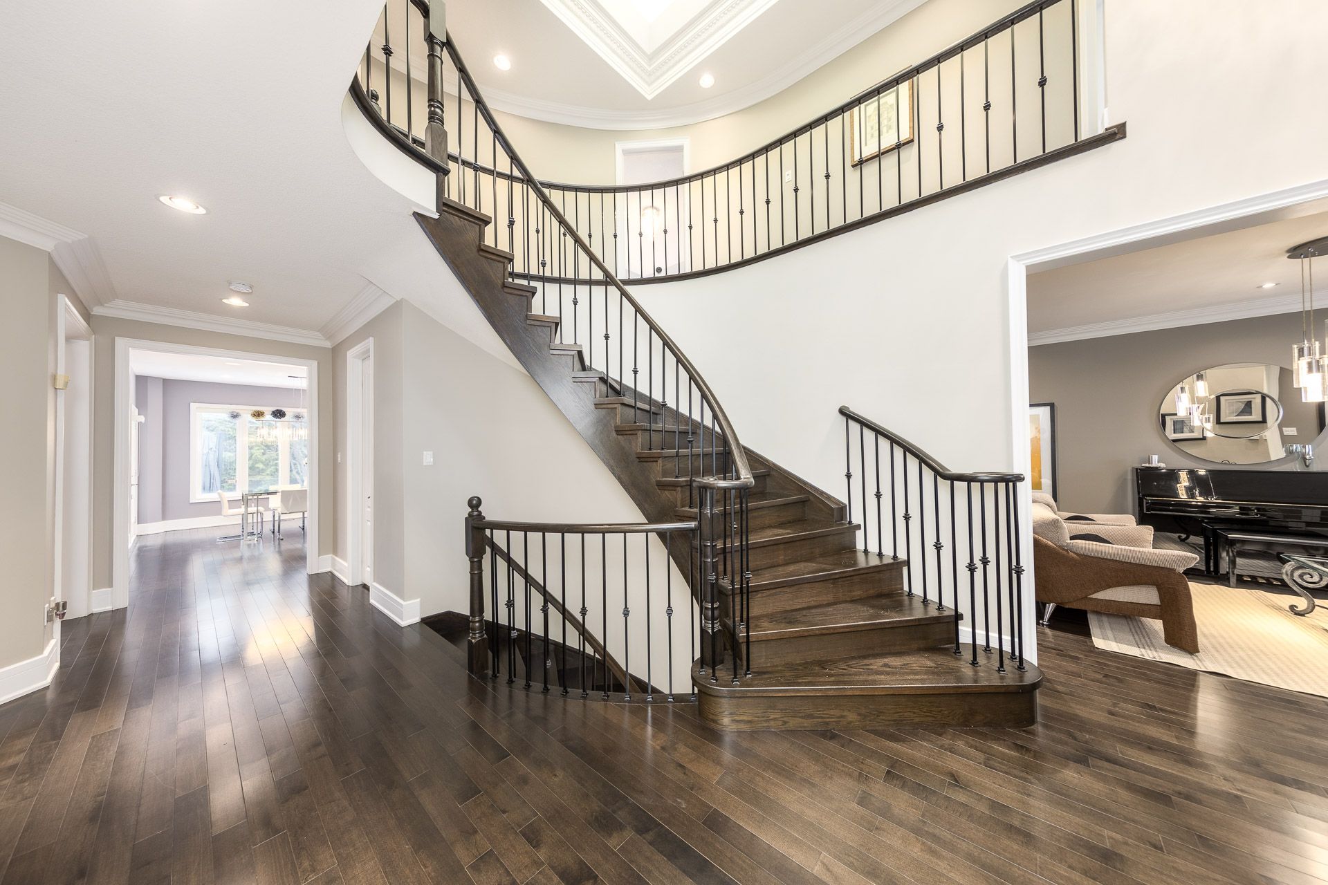 An extraordinary residence in the prestigious bayview hill enclave of richmond hill, located within top-ranking school districts and moments to parks, fine shopping, major highways, and transit. Offering approximately 4,100 sq. Ft. Of refined living space with 5 bedrooms, this home blends elegance with exceptional craftsmanship. A striking full stone façade and bespoke $20k solid wood entry door introduce a breathtaking 18' soaring foyer, setting the tone for the luxury within. Rich hardwood floors throughout, 9' ceilings, 8' solid doors, designer lighting, and extensive upgrades create a sophisticated, upscale ambiance. The elegant chef's kitchen is beautifully appointed with a grand center island, premium quartz surfaces, custom backsplash, and built-in appliances, seamlessly flowing into a sun-filled breakfast area overlooking the professionally landscaped backyard. The inviting family room with fireplace and private main-floor office offer both comfort and functional space for working from home. The primary suite is a true private retreat, featuring a spa-inspired 6-piece ensuite with shower panel tower system, dual walk-in closets (his & her) complete with luxury cabinetry, and an intimate sitting lounge - an ideal space for couples to relax and enjoy their morning coffee together. Secondary bedrooms are generously sized, providing comfort and functionality for the entire family with upgraded semi-ensuites, jacuzzi tubs, and premium shower panel systems. A dramatic skylight fills the home with warm, natural light and welcoming atmosphere throughout. The professionally finished basement is designed for family enjoyment and entertaining with a 144" home theatre experience, recreation and fitness space, and a guest suite. Exterior living is equally impressive with professional interlocking, ambient exterior lighting, sprinkler system, manicured landscaping, bbq area, and a private putting green. No sidewalk for extended driveway parking.