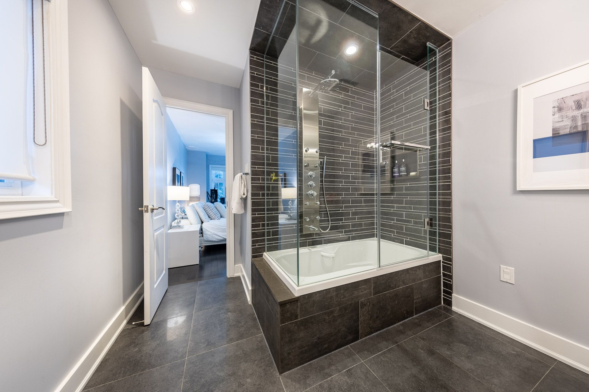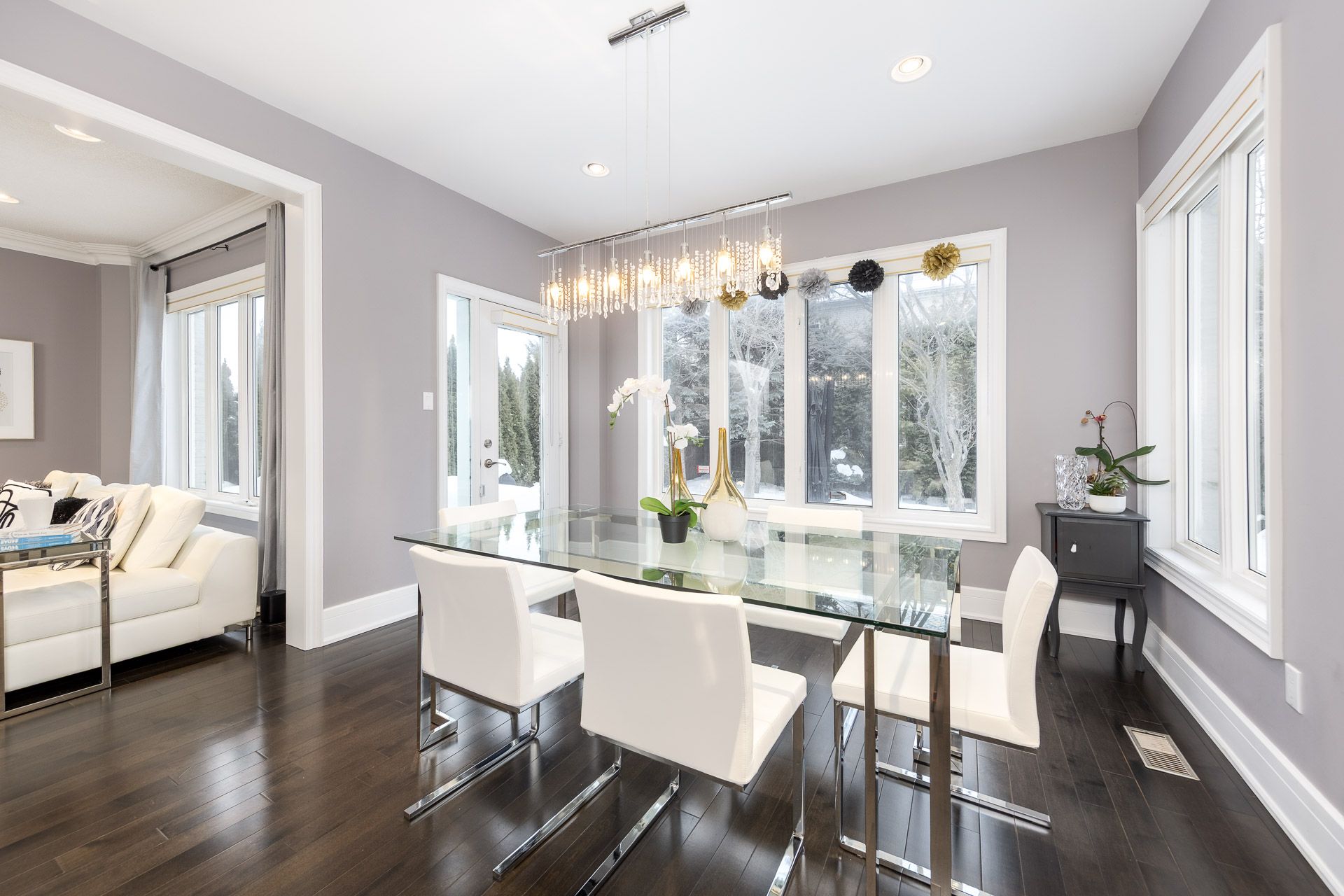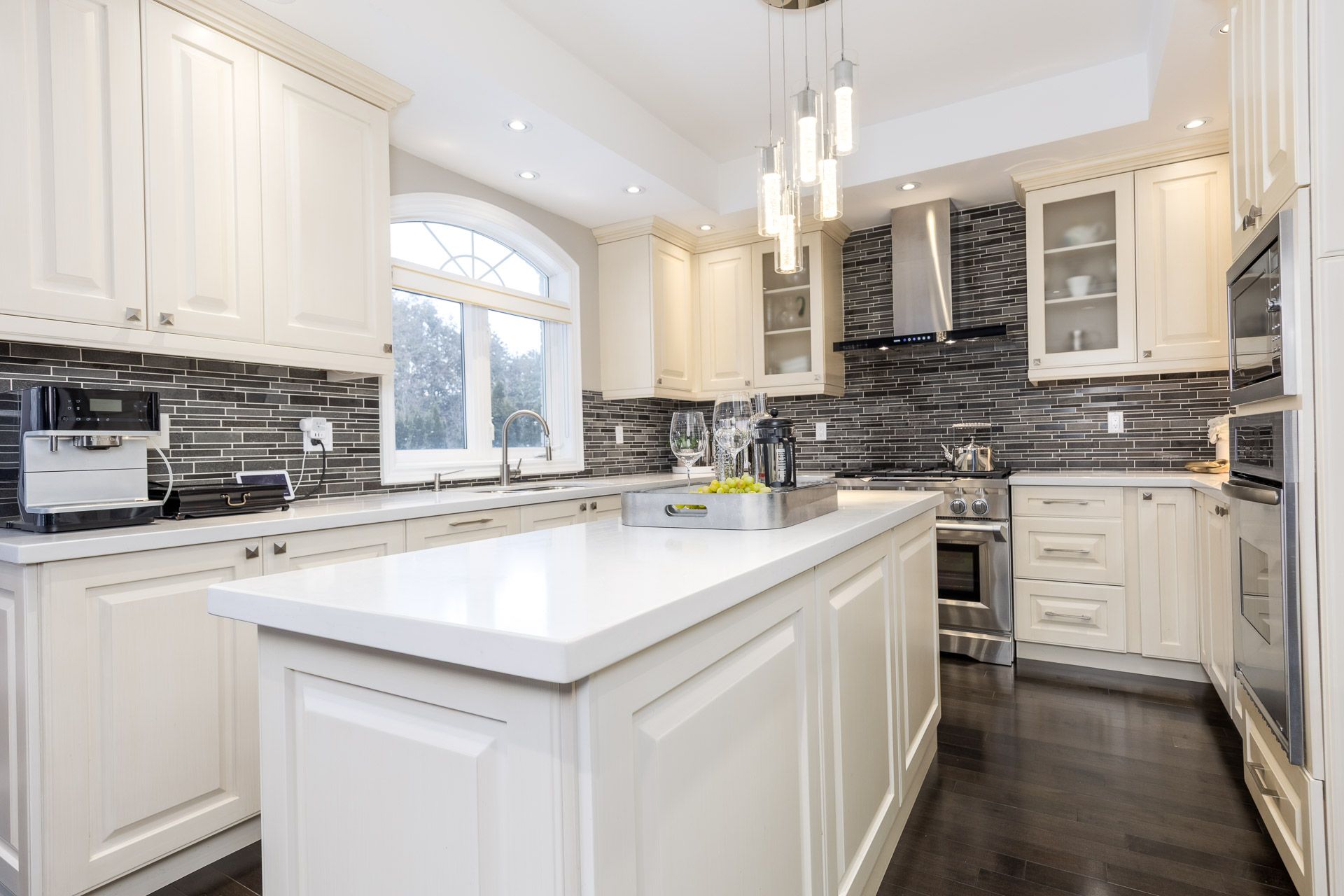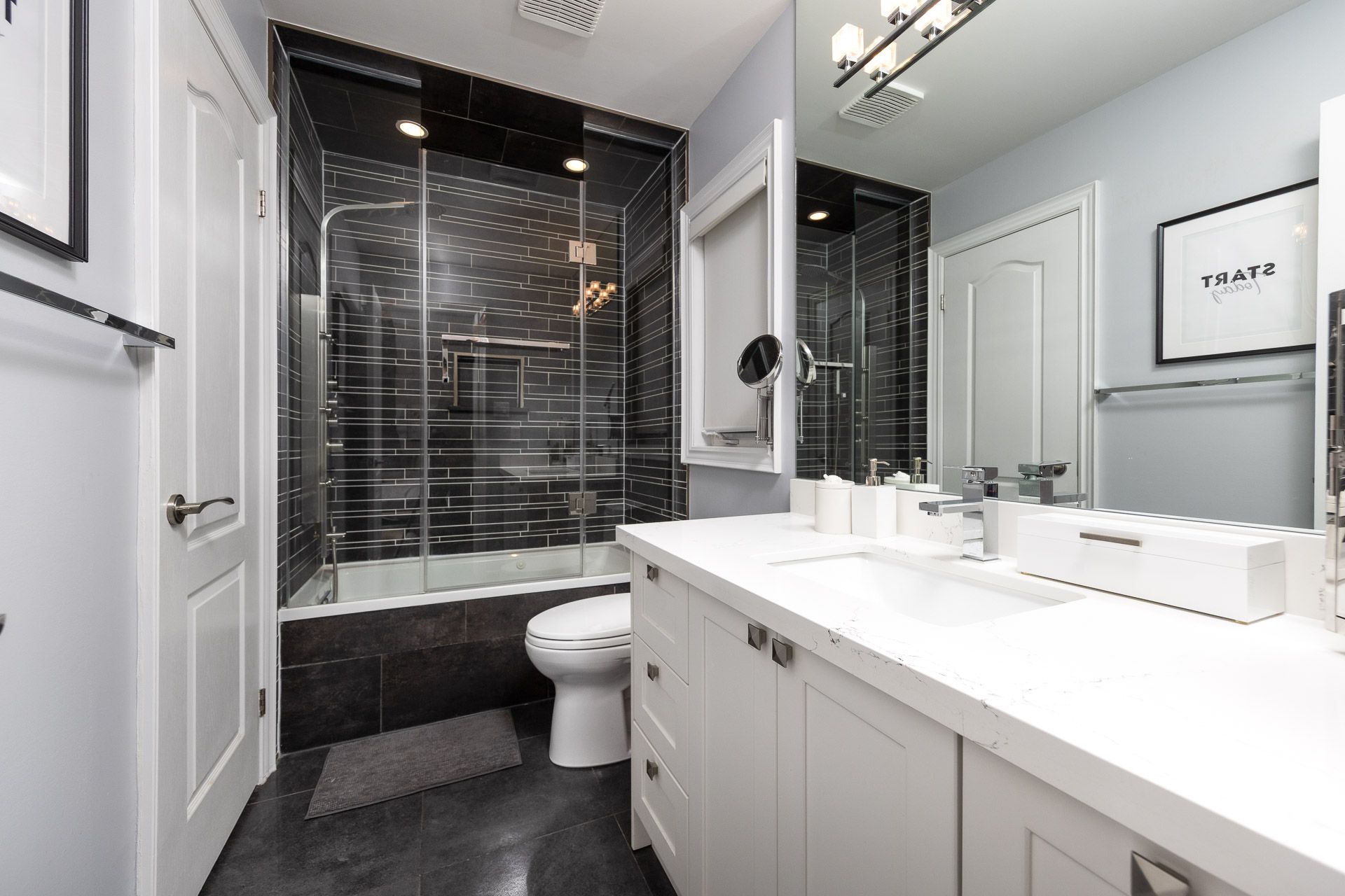 An extraordinary residence in the prestigious bayview hill enclave of richmond hill, located within top-ranking school districts and moments to parks, fine shopping, major highways, and transit. Offering approximately 4,100 sq. Ft. Of refined living space with 5 bedrooms, this home blends elegance with exceptional craftsmanship. A striking full stone façade and bespoke $20k solid wood entry door introduce a breathtaking 18' soaring foyer, setting the tone for the luxury within. Rich hardwood floors throughout, 9' ceilings, 8' solid doors, designer lighting, and extensive upgrades create a sophisticated, upscale ambiance. The elegant chef's kitchen is beautifully appointed with a grand center island, premium quartz surfaces, custom backsplash, and built-in appliances, seamlessly flowing into a sun-filled breakfast area overlooking the professionally landscaped backyard. The inviting family room with fireplace and private main-floor office offer both comfort and functional space for working from home. The primary suite is a true private retreat, featuring a spa-inspired 6-piece ensuite with shower panel tower system, dual walk-in closets (his & her) complete with luxury cabinetry, and an intimate sitting lounge - an ideal space for couples to relax and enjoy their morning coffee together. Secondary bedrooms are generously sized, providing comfort and functionality for the entire family with upgraded semi-ensuites, jacuzzi tubs, and premium shower panel systems. A dramatic skylight fills the home with warm, natural light and welcoming atmosphere throughout. The professionally finished basement is designed for family enjoyment and entertaining with a 144" home theatre experience, recreation and fitness space, and a guest suite. Exterior living is equally impressive with professional interlocking, ambient exterior lighting, sprinkler system, manicured landscaping, bbq area, and a private putting green. No sidewalk for extended driveway parking.