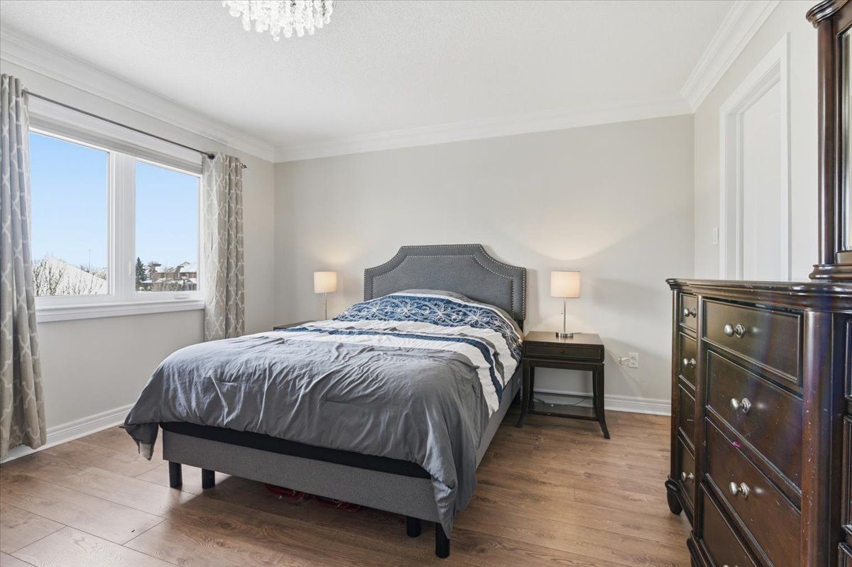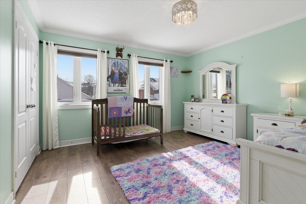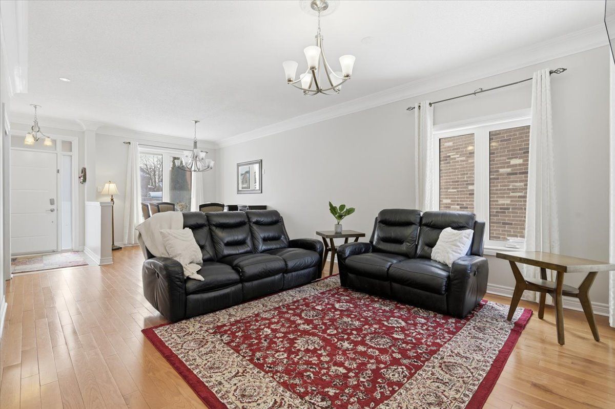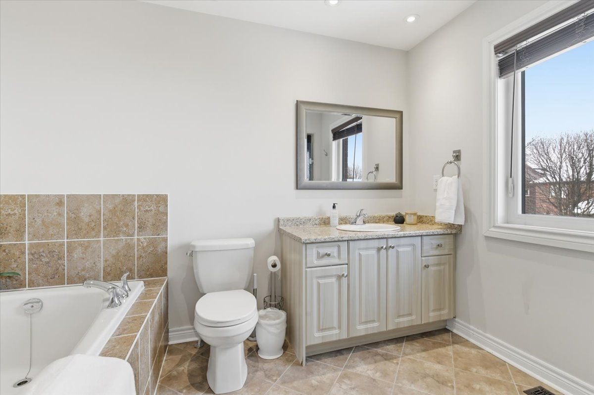 4 bedrooms | 3 bathrooms | 1,986 sq ft | 9-foot ceilings | open concept | hardwood flooring | second-floor laundry | fully landscaped. Welcome to this beautifully maintained semi-detached home offering 1,986 sq ft of bright, functional living space on a family-friendly court. Enjoy a covered front porch, classic solid brick exterior, and convenient access to parks, bonner fields, and schools-all within walking distance. The front door and windows were updated just three years ago, and both the front and backyard landscaping have been thoughtfully completed. Inside, the main floor features 9-foot ceilings, hardwood flooring, and large windows that flood the space with natural light. The open-concept living and dining area flows seamlessly into the kitchen and breakfast area, highlighted with pot lights and walkout access to the backyard-perfect for everyday living and entertaining. A powder room and direct access to the single-car garage with an automatic door opener add extra convenience. Upstairs, the spacious primary bedroom boasts crown moulding, a walk-in closet, and a luxurious 4-piece ensuite with a soaker tub and separate glass shower. Three additional generously sized bedrooms, each with large windows and ample closet space, share a 4-piece bathroom. A second-floor laundry room adds practical convenience. The unfinished lower level offers excellent potential, with high ceilings and a rough-in for a full bathroom-ideal for a recreation room, guest suite, or additional living space. With parking for three vehicles between the garage and driveway, modern updates, and a sought-after location, this home is ready to welcome its next family.