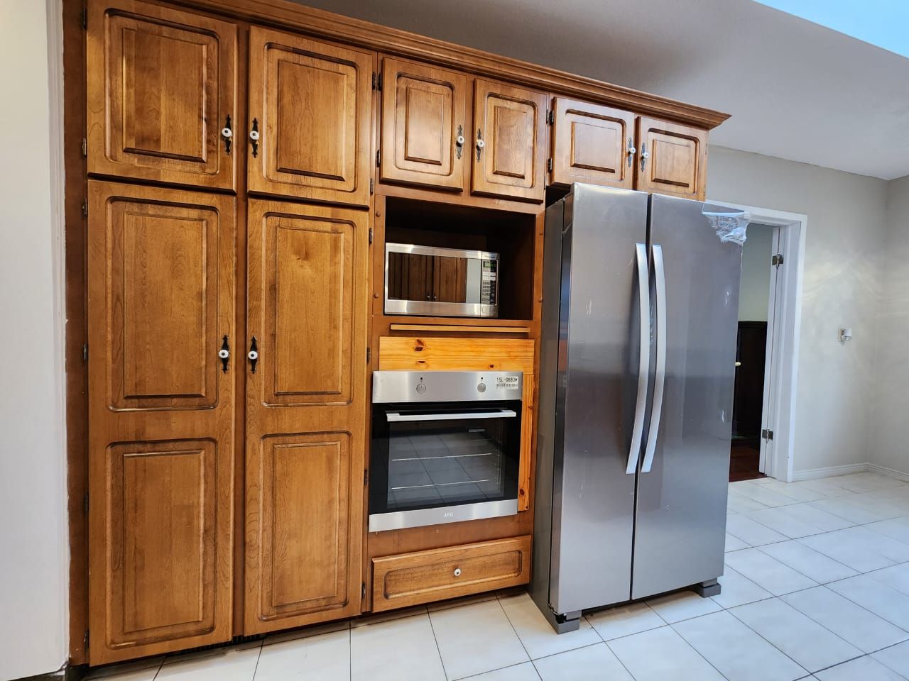 • Bright kitchen with large windows, inviting natural light.
