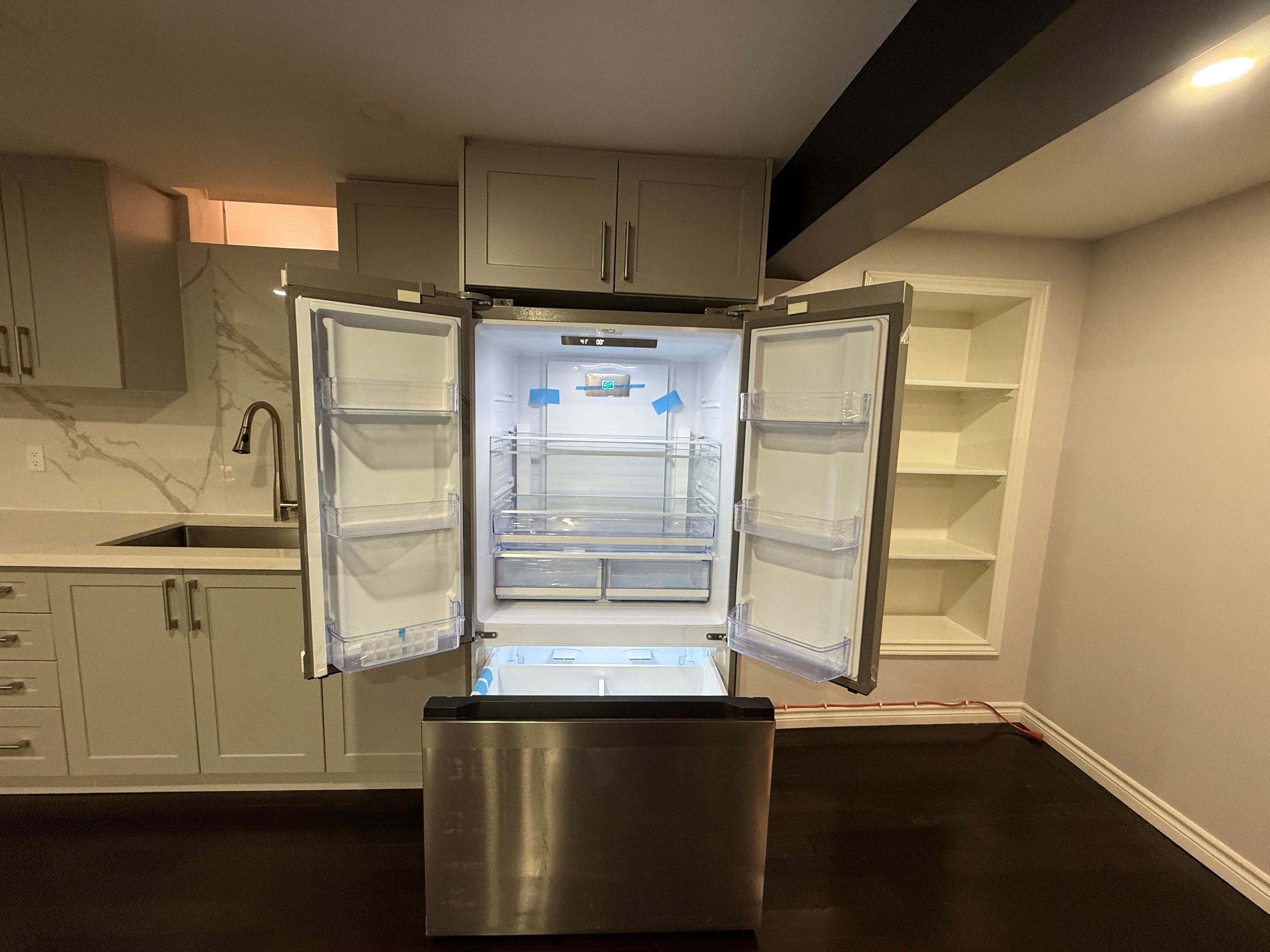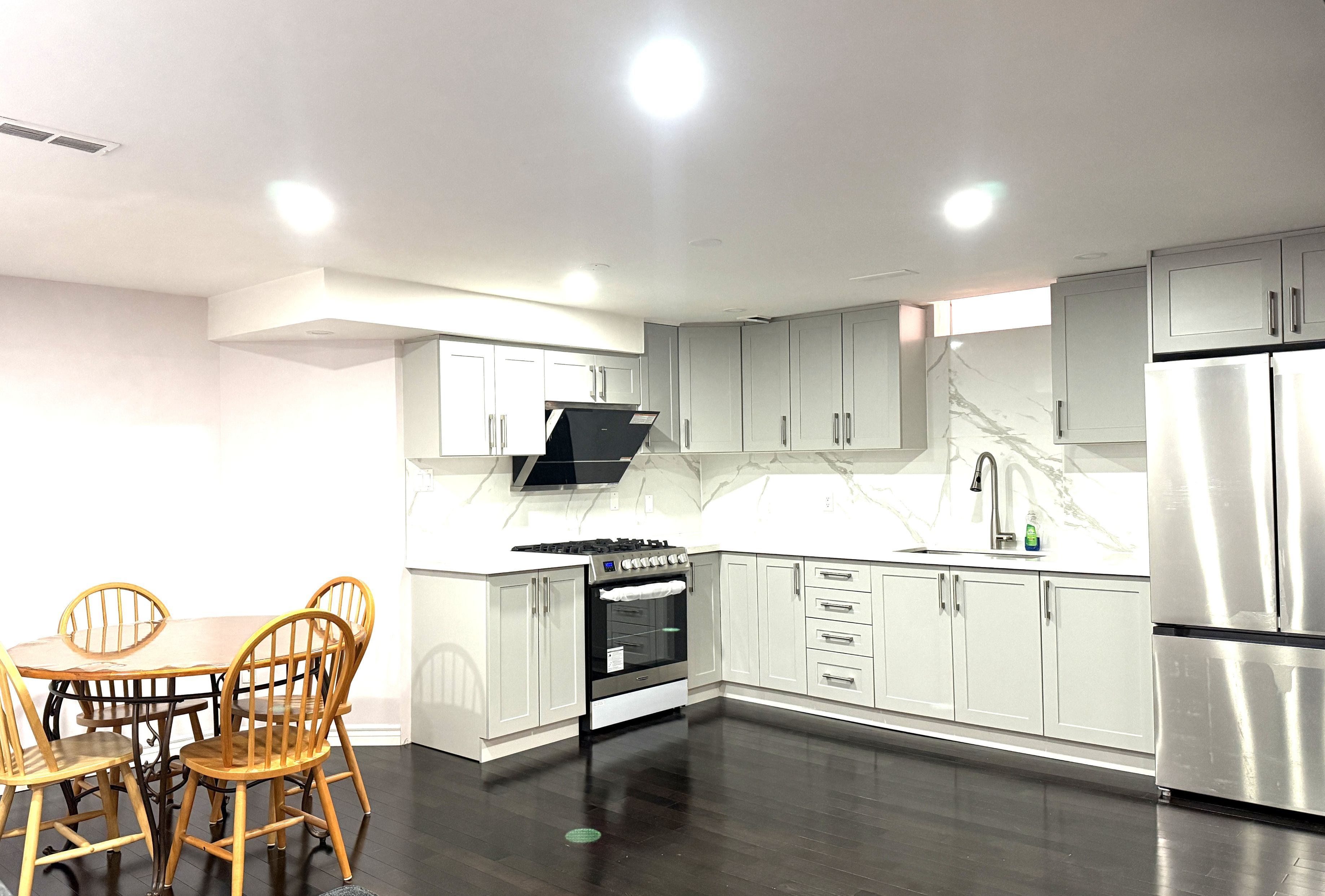 Huge two bedroom one full bathroom lower level new renovated apartment! Separate entrance! Situated on a peaceful street within a secure community. Family size kitchen with brand new gas range and modern range hood! Brand new french door fridge! Brand new in-suite washer and dryer (use by your own, no sharing). Located close to local amenities! Longo's, rexall, walmart, and medical centre. Near highly rated schools, just beside parks, easy access to highway 407 and highway 7. One parking space on driveway included. Perfect for those seeking comfort, convenience, big home, and affordable price!