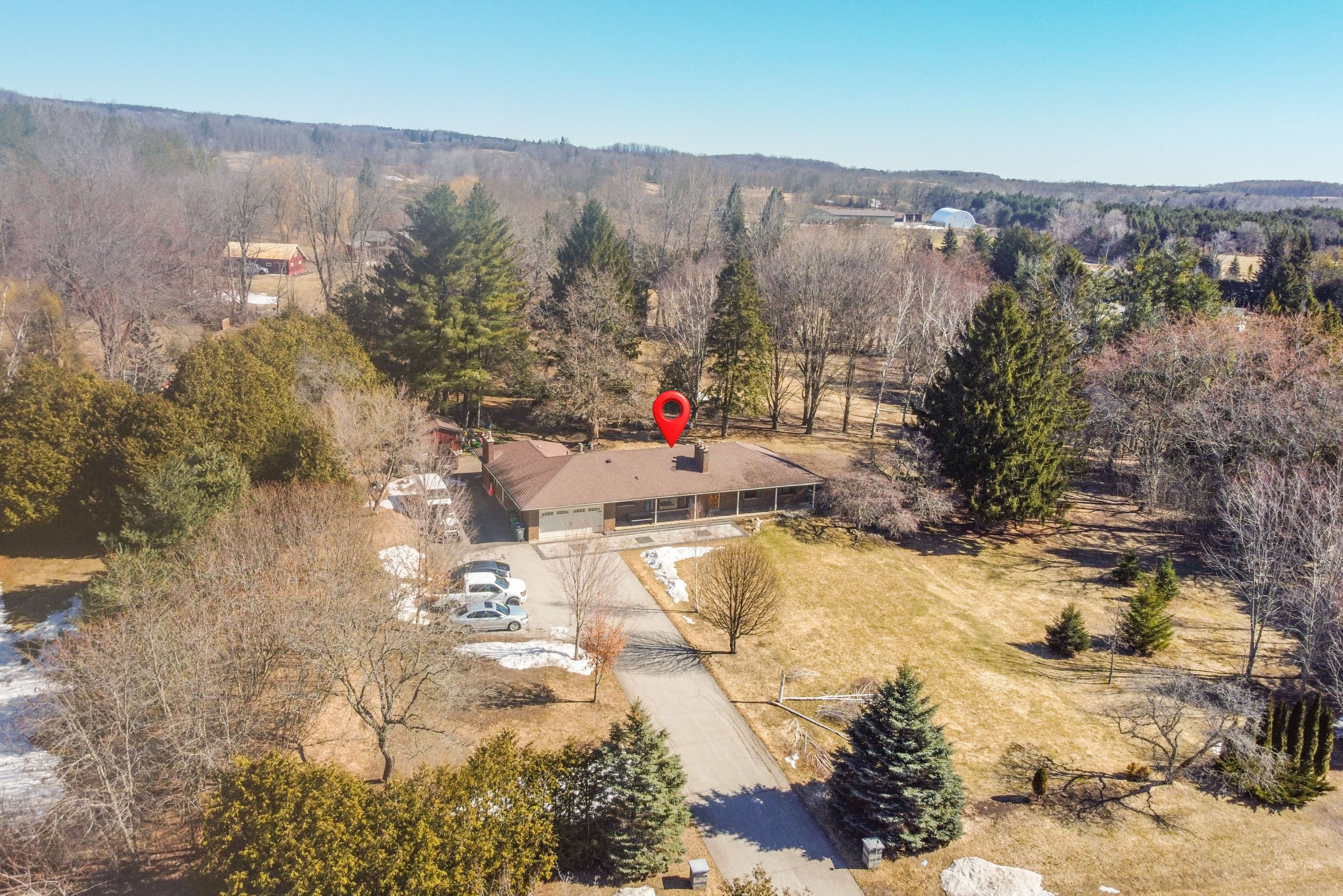• Long, private driveway leading to an impressive front entry.