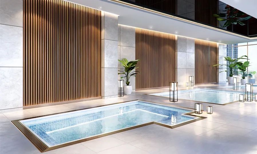 • Access to world-class amenities, including a Sky Lounge and indoor pool.