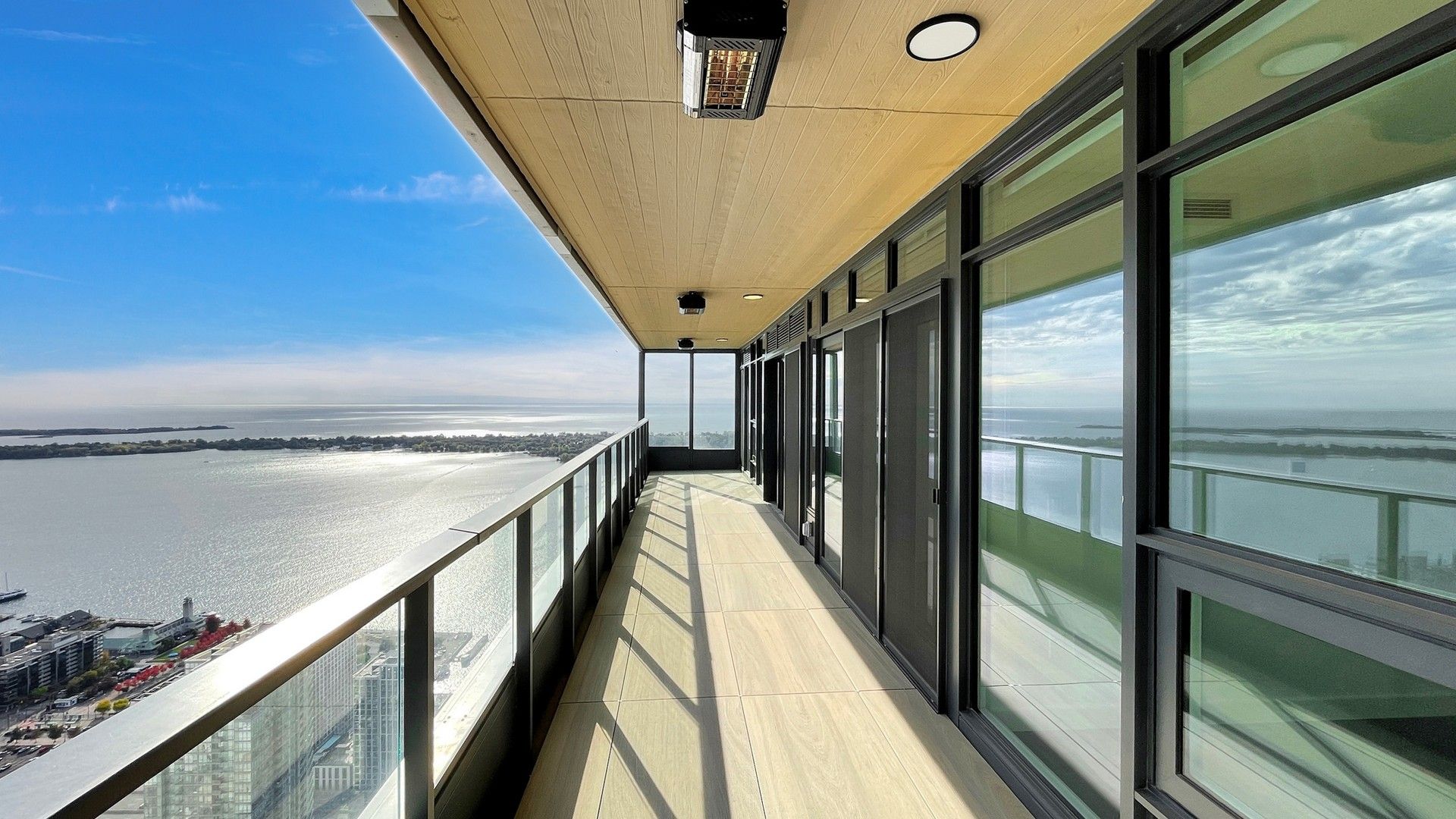 • Large balcony includes heating and lighting for year-round use.