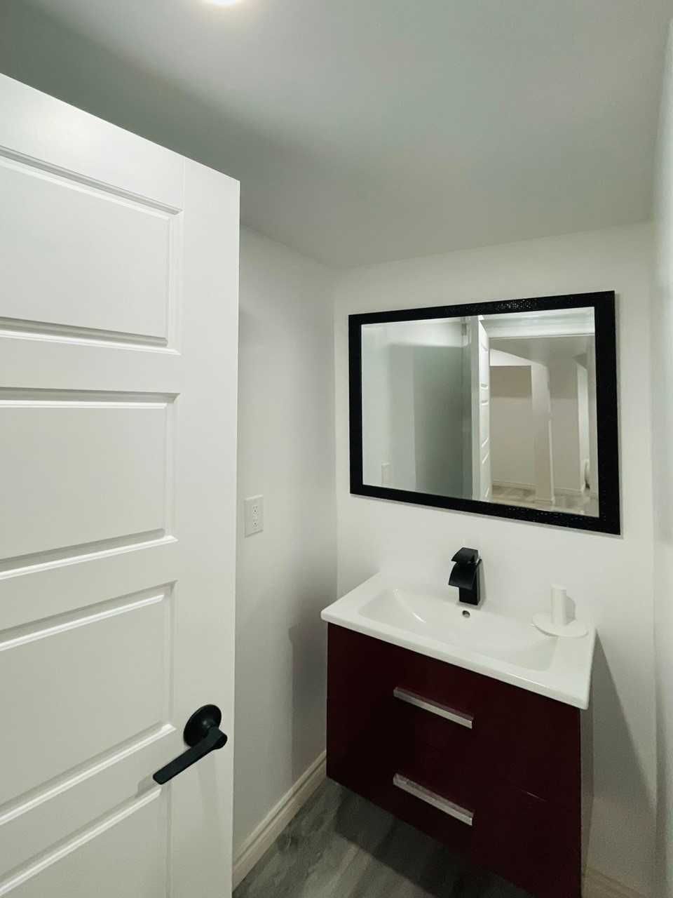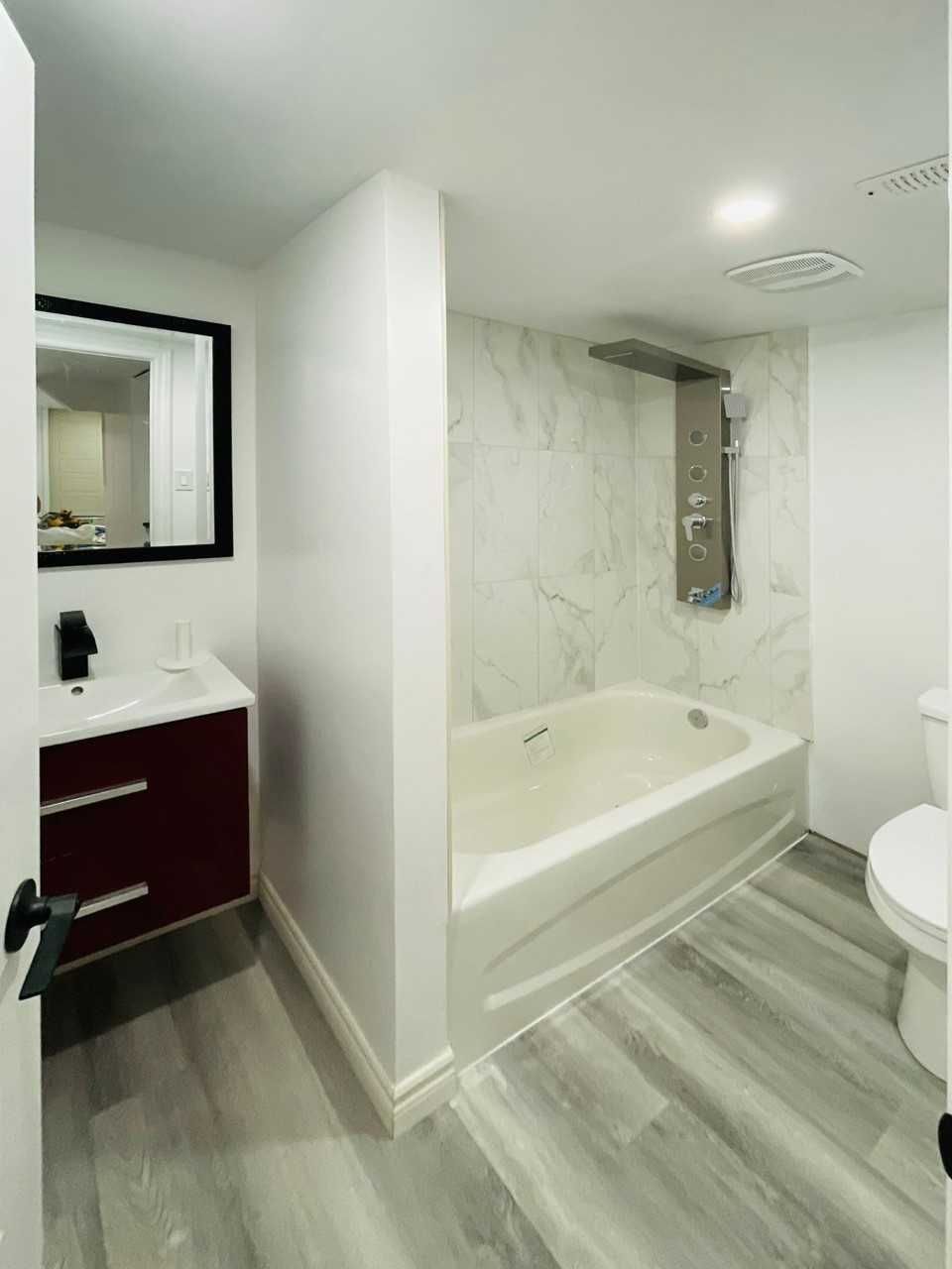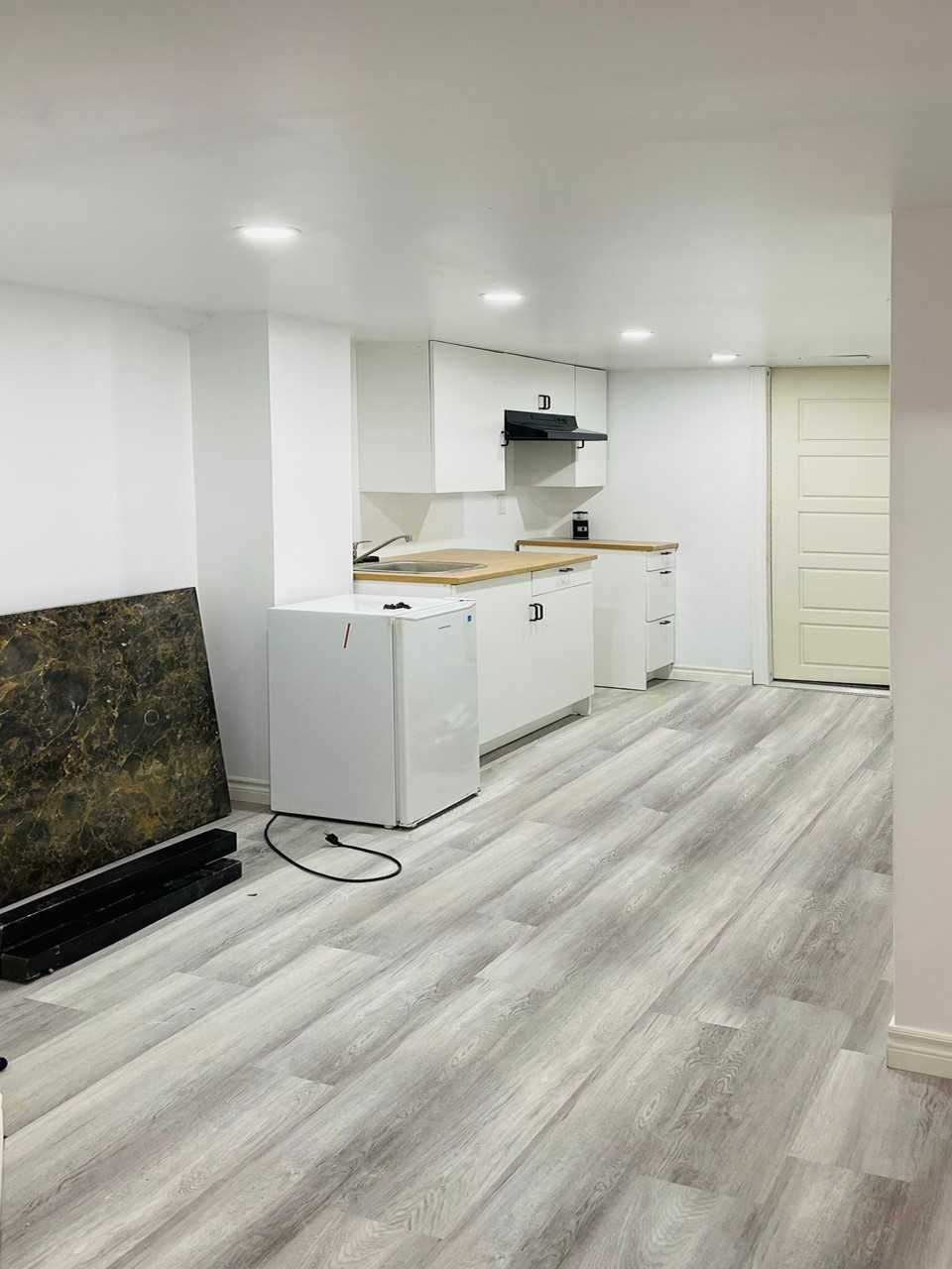 • Finished basement with a bathroom, bedroom, and kitchen.