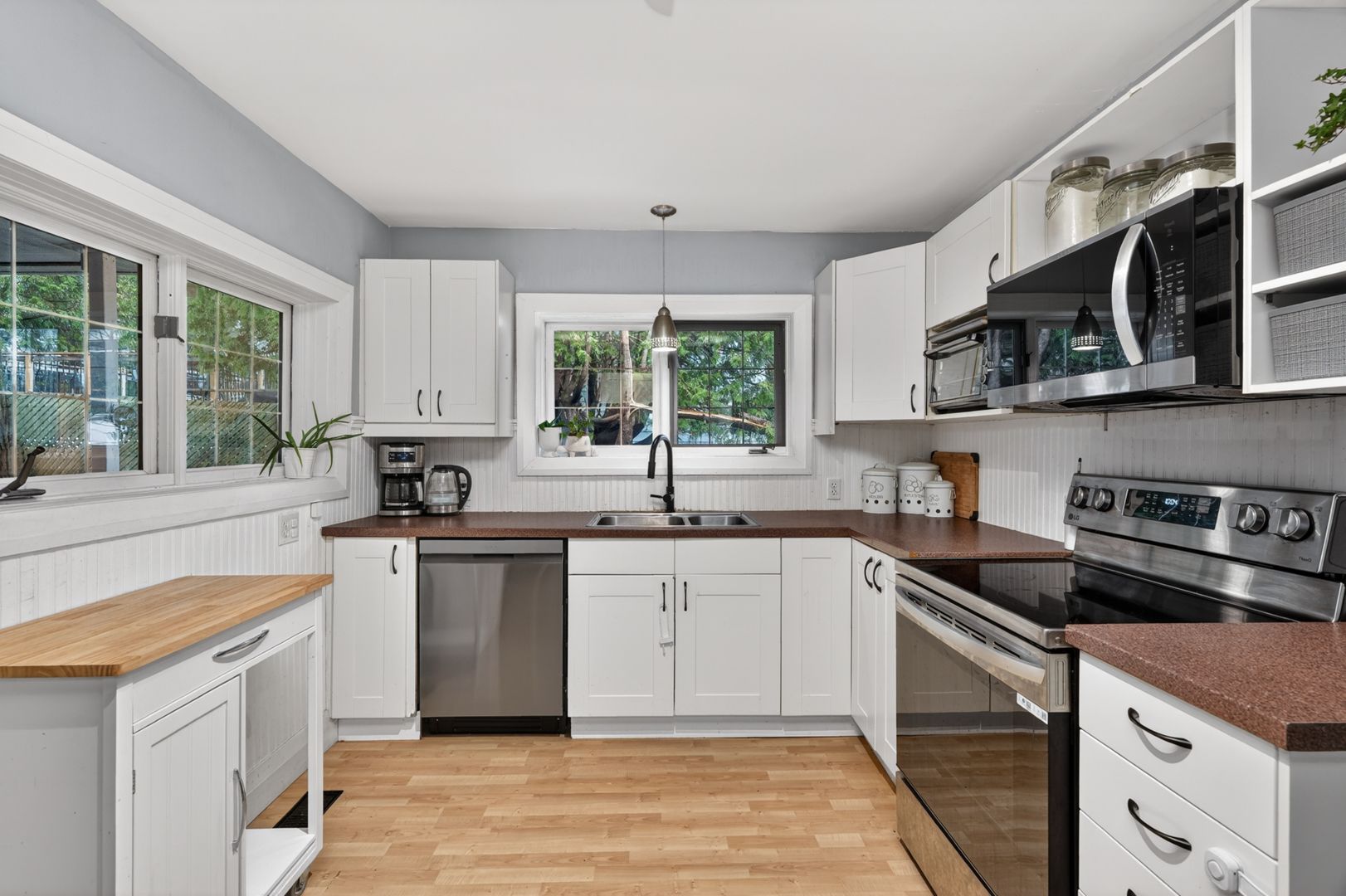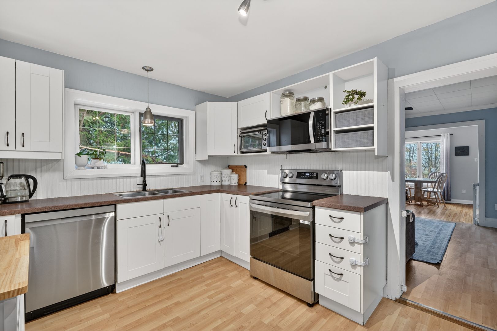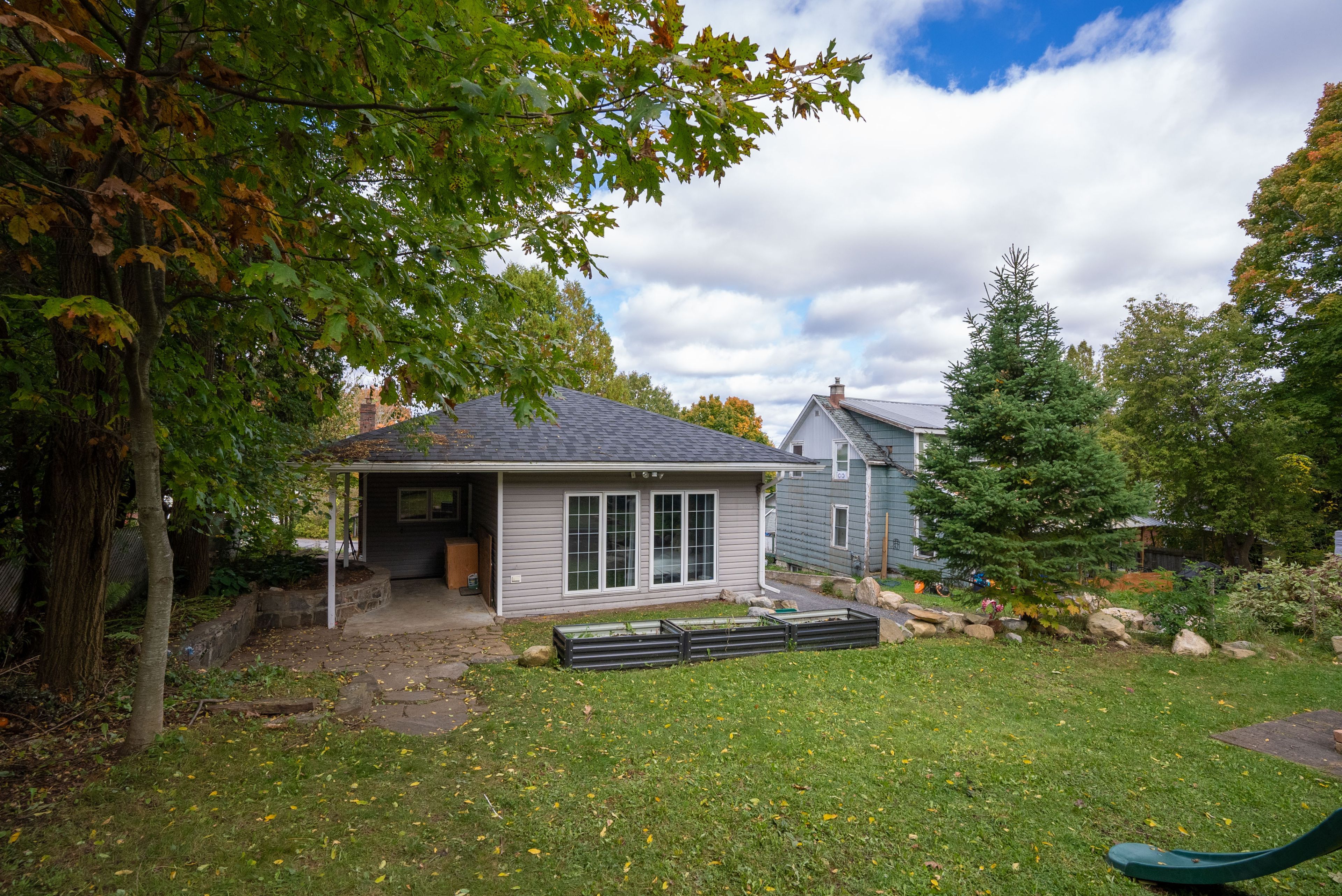 Welcome to this well maintained in town bungalow offering easy one level living in a highly walkable huntsville location. This approximately 1,046 square foot home features three bedrooms and two bathrooms and is ideally suited for first time buyers, downsizers, or young families. Located just minutes from both elementary and secondary schools and within walking distance to downtown huntsville, shops, restaurants, and services, the location is hard to beat. The traditional layout includes a comfortable living room and dining area with fresh updates throughout. The kitchen has been upgraded with new appliances including refrigerator, stove, microwave, and dishwasher, and a brand new central air conditioner adds year round comfort. The primary bedroom features floor to ceiling windows with views overlooking the backyard, allowing plenty of natural light. Outside, enjoy a partially fenced and private backyard that offers space for children, pets, or relaxed outdoor living. Rivermill park is just a short walk away and features a playground and green space. With full municipal services, new furnace, air conditioning, a manageable footprint, and a convenient in town setting, this move in ready bungalow offers excellent value and lifestyle in the heart of huntsville. [furnace 2025, new appliances, new ac]