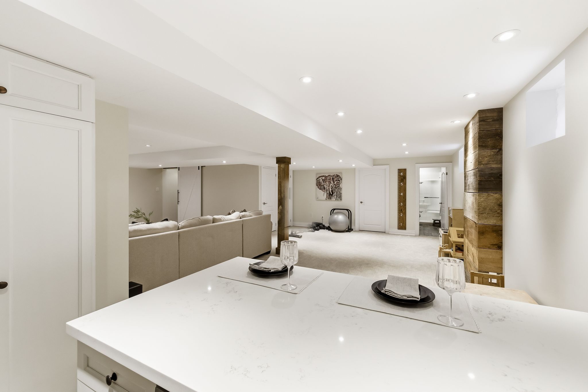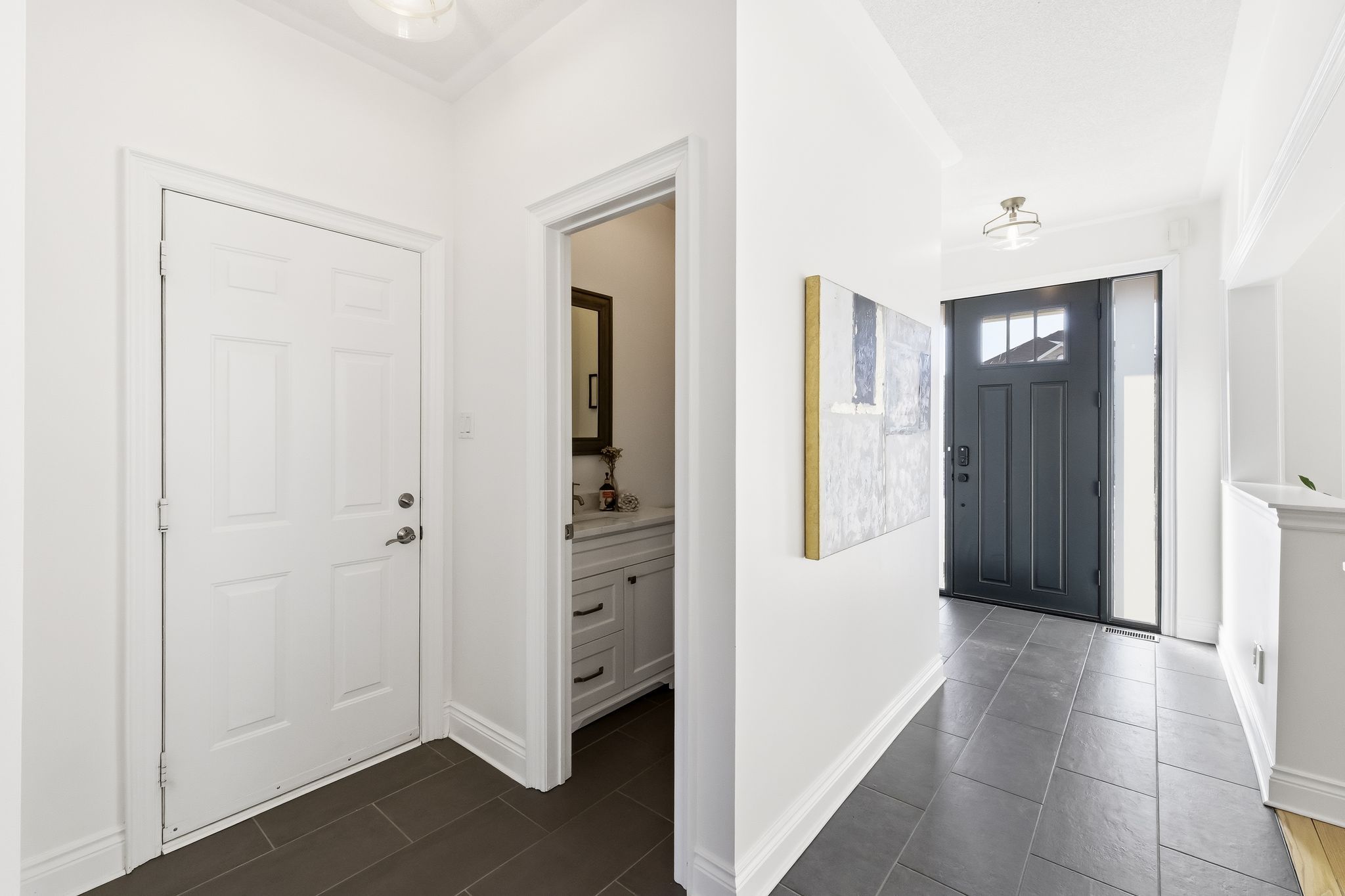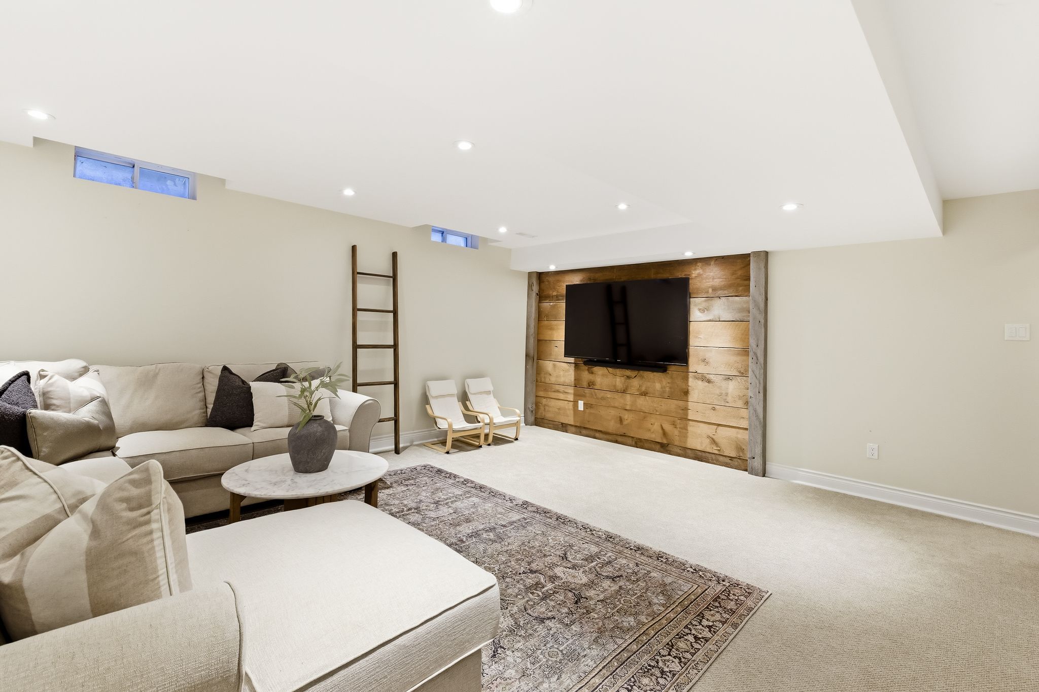 Extentensively upgraded with high-end custom finishes throughout, this 2,285 sq ft home offers beautiful natural light with generous flow across all three levels, and is set on a private 50x119 ft lot. The main floor features 9-ft ceilings and a stunning open-concept kitchen with s/s appliances, quartz countertops, custom cabinetry, large centre island, beverage fridge, and eat-in area, seamlessly connected to a spacious living room. A shiplap feature wall with gas fireplace and built-in extendable tv creates a striking focal point, while new windows with california shutters flood the space with light. Main floor and basement lighting are upgraded with lutron dimmers. A professionally upgraded 2-car garage, fully brick veneered and finished with reclaimed beams, t&g ceilings, pot lights, heater, and new high-lift garage doors, is a true standout. Every bathroom has been fully updated with elevated finishes. The upstairs main bath features herringbone floor tile, while the primary suite includes a shiplap feature wall with fireplace and tv, his/hers closets, and a renovated ensuite with penny tile flooring and glass walk-in shower. Second-floor laundry adds everyday convenience. The fully finished basement extends the living space with a dedicated lounge/tv area and a wet bar featuring quartz countertops with dishwasher and fridge. A fourth bathroom adds convenience for guests or gatherings. Fully fenced backyard positioned for privacy, with no direct rear-facing neighbours. Significant exterior investments include a new roof (21), all new windows and doors (20), automated landscape sprinklers, and three raised garden boxes. The front landscaping is professionally finished with substantial armour stone steps and strong curb appeal - reflecting the same level of care and upgrade seen throughout the interior. Curated, refined, and finished to the highest standard - with an unmatched garage and a private lot. Turnkey perfection!