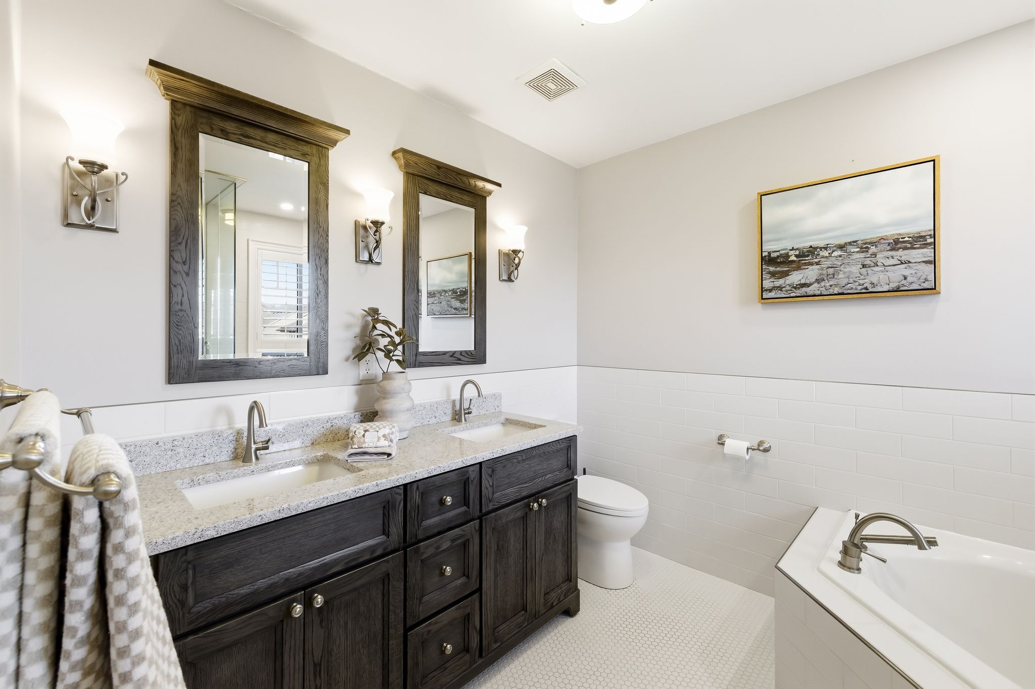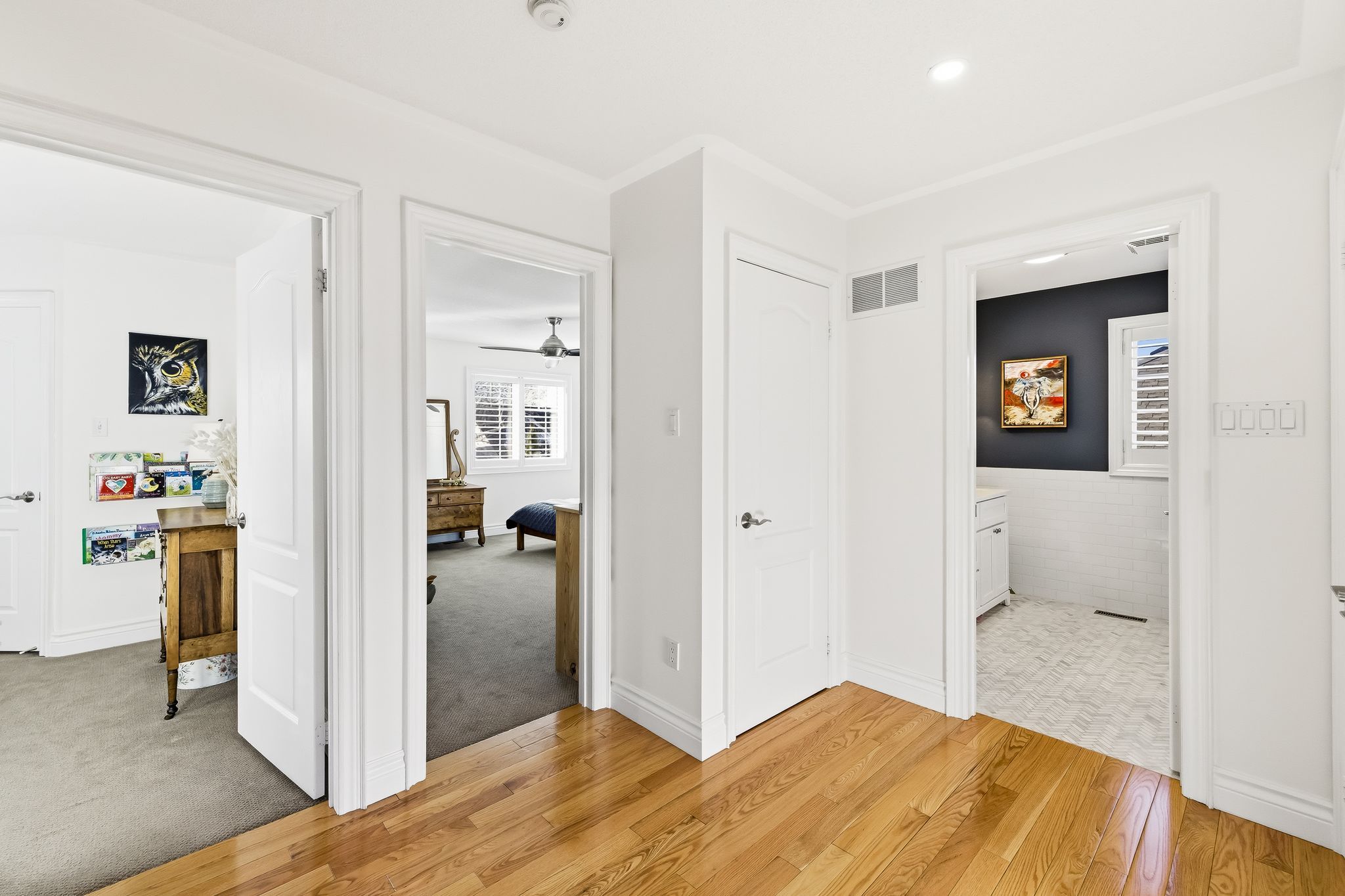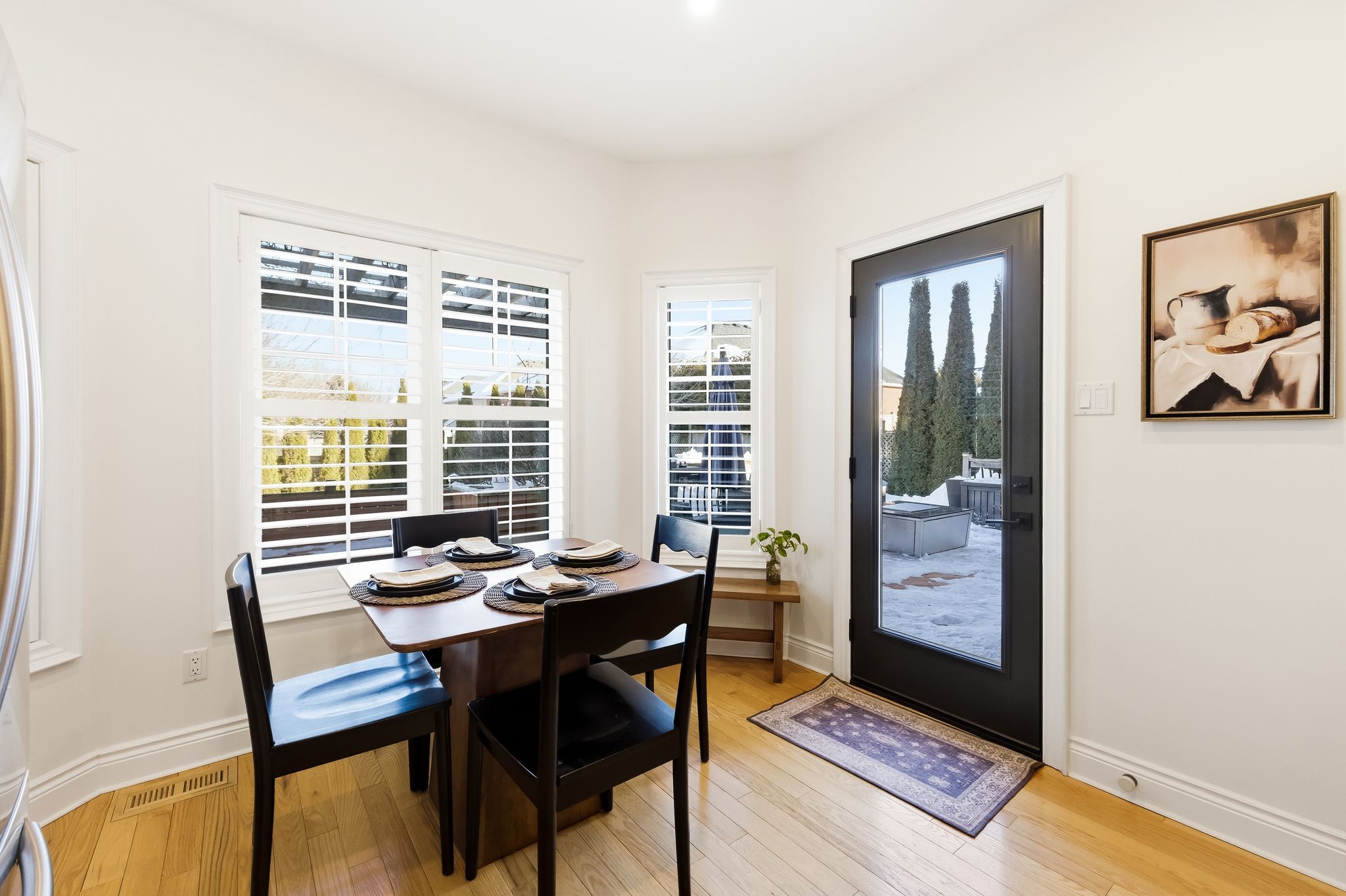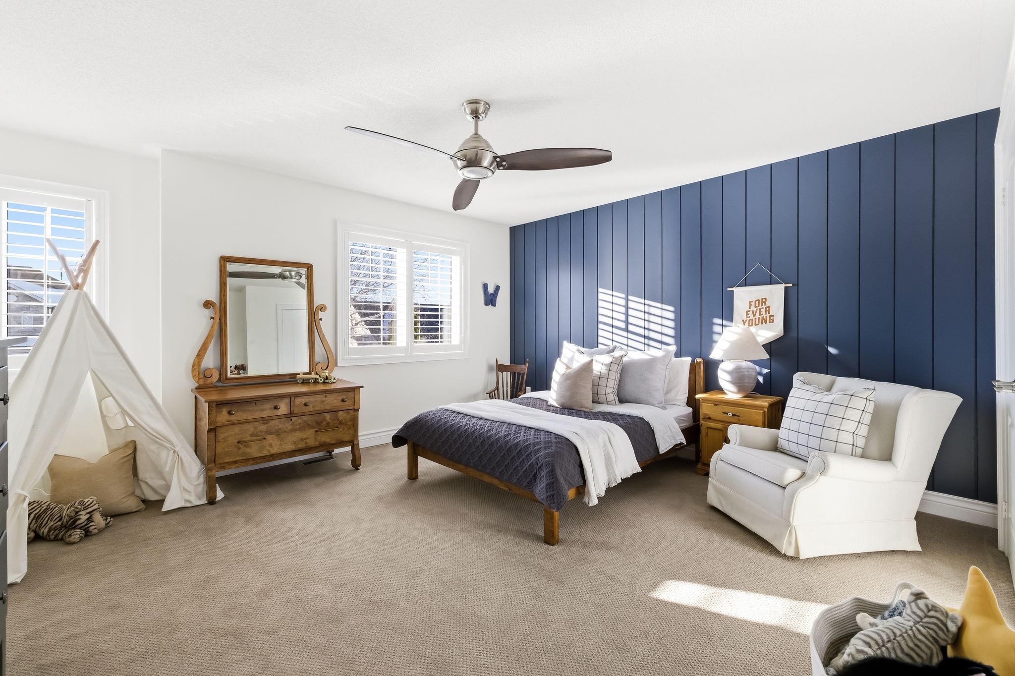 Extentensively upgraded with high-end custom finishes throughout, this 2,285 sq ft home offers beautiful natural light with generous flow across all three levels, and is set on a private 50x119 ft lot. The main floor features 9-ft ceilings and a stunning open-concept kitchen with s/s appliances, quartz countertops, custom cabinetry, large centre island, beverage fridge, and eat-in area, seamlessly connected to a spacious living room. A shiplap feature wall with gas fireplace and built-in extendable tv creates a striking focal point, while new windows with california shutters flood the space with light. Main floor and basement lighting are upgraded with lutron dimmers. A professionally upgraded 2-car garage, fully brick veneered and finished with reclaimed beams, t&g ceilings, pot lights, heater, and new high-lift garage doors, is a true standout. Every bathroom has been fully updated with elevated finishes. The upstairs main bath features herringbone floor tile, while the primary suite includes a shiplap feature wall with fireplace and tv, his/hers closets, and a renovated ensuite with penny tile flooring and glass walk-in shower. Second-floor laundry adds everyday convenience. The fully finished basement extends the living space with a dedicated lounge/tv area and a wet bar featuring quartz countertops with dishwasher and fridge. A fourth bathroom adds convenience for guests or gatherings. Fully fenced backyard positioned for privacy, with no direct rear-facing neighbours. Significant exterior investments include a new roof (21), all new windows and doors (20), automated landscape sprinklers, and three raised garden boxes. The front landscaping is professionally finished with substantial armour stone steps and strong curb appeal - reflecting the same level of care and upgrade seen throughout the interior. Curated, refined, and finished to the highest standard - with an unmatched garage and a private lot. Turnkey perfection!