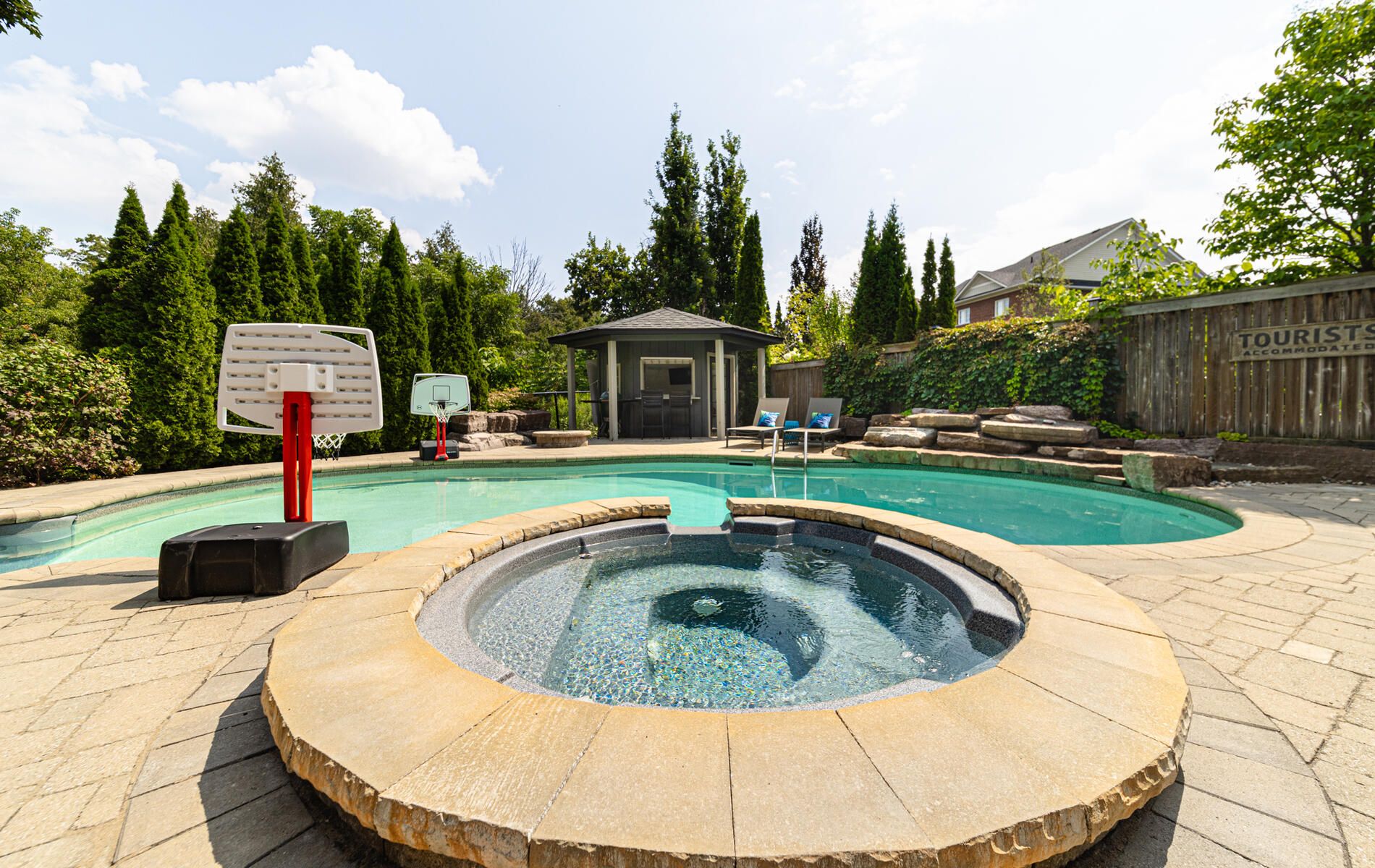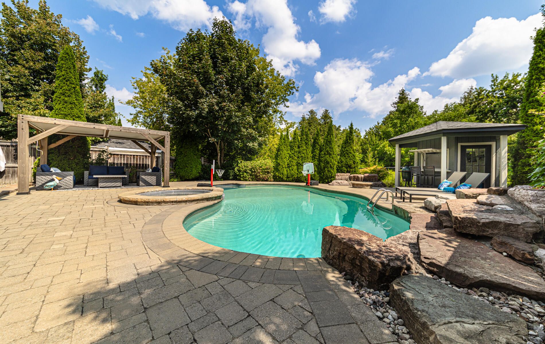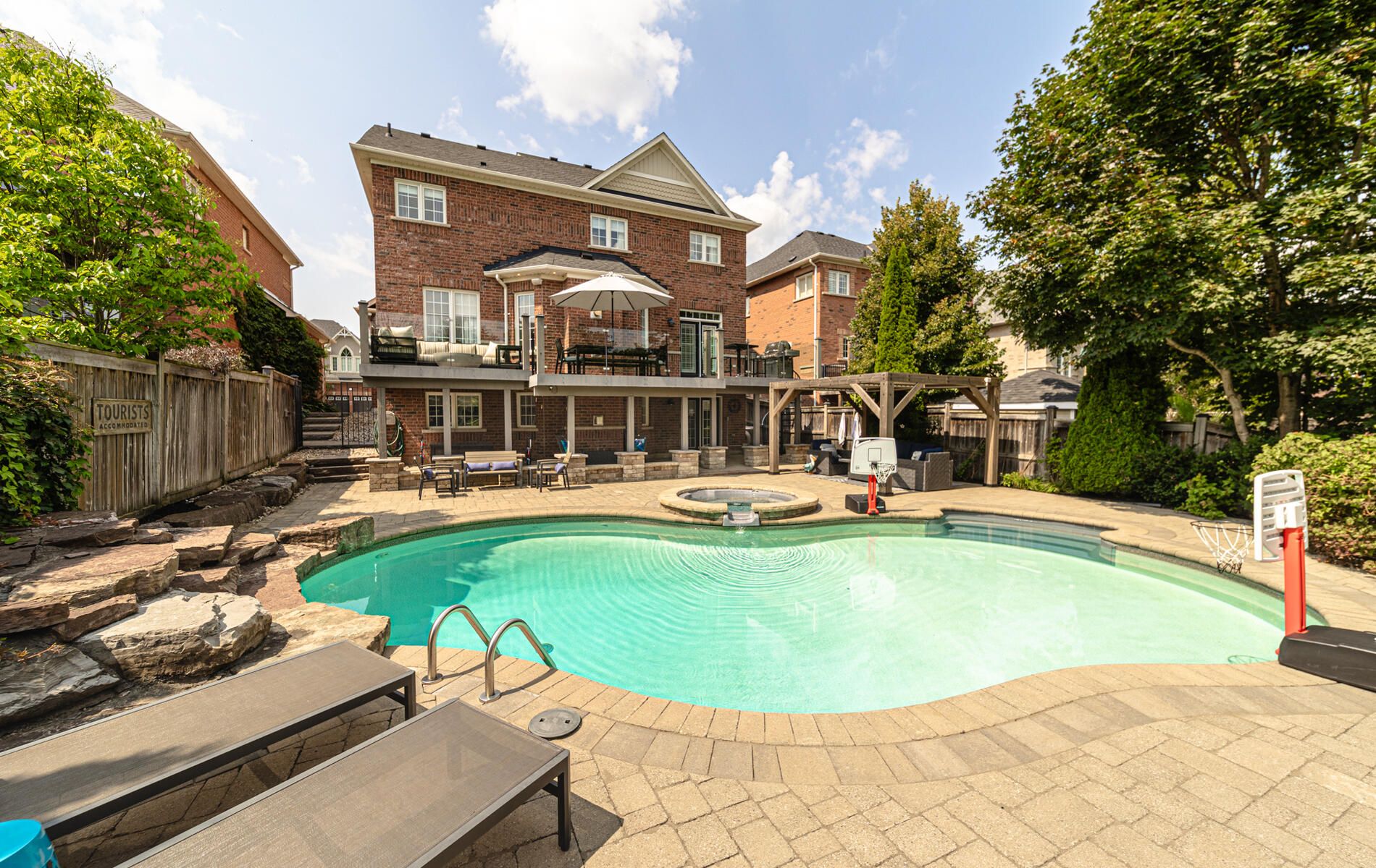 Set on one of brooklin's most coveted streets, this exceptional southampton model queensgate home offers over 4,000 sq. Ft. Of professionally designed & decorated luxury living space. Situated on a 50 ft lot backing onto greenspace, this home delivers both sophistication & serenity. The attention to detail is evident from soaring ceilings & rich hardwood flooring throughout to designer lighting & in-ceiling speakers that set the tone for effortless elegance. At the heart of the home lies the entertainers kitchen, outfitted with high-end appliances incl. A jenn-air fridge, wall oven, microwave, & thermador cooktop. This culinary haven seamlessly opens to the oversized great room w/ gas fireplace, all overlooking the breathtaking ravine backdrop & walks out to custom trex deck overlooking the backyard oasis. In addition to a separate living & dining room, the main floor also features a home office (also ideal as a childrens playroom), a mudroom/laundry room w/access to a recently renovated garage. Upstairs, the primary suite is a true retreat, with tranquil ravine views, his-and-hers walk-in closets, & a spa-inspired 5-piece ensuite. Bedroom 2 enjoys its own 3-piece ensuite and walk-in closet, while bedrooms 3 & 4 share a spacious 4-piece jack & jill bath each with its own walk-in closet. The finished walk-out basement extends the homes entertainment space, a sprawling rec room w/built-in cabinetry, a wet bar & beverage fridge, plus an open games area ideal for hosting family gatherings or poolside celebrations. Step outside to your private backyard oasis, complete w/16 x 32 kidney-shaped in-ground pool, hot tub, pool cabana w/electrical, propane fire pit & extensive landscaping. All of this is within walking distance to top-rated schools & moments from downtown brooklin, golf courses, the 407, shops, dining & more. Luxury. Privacy. Location. This is more than a home its a lifestyle.