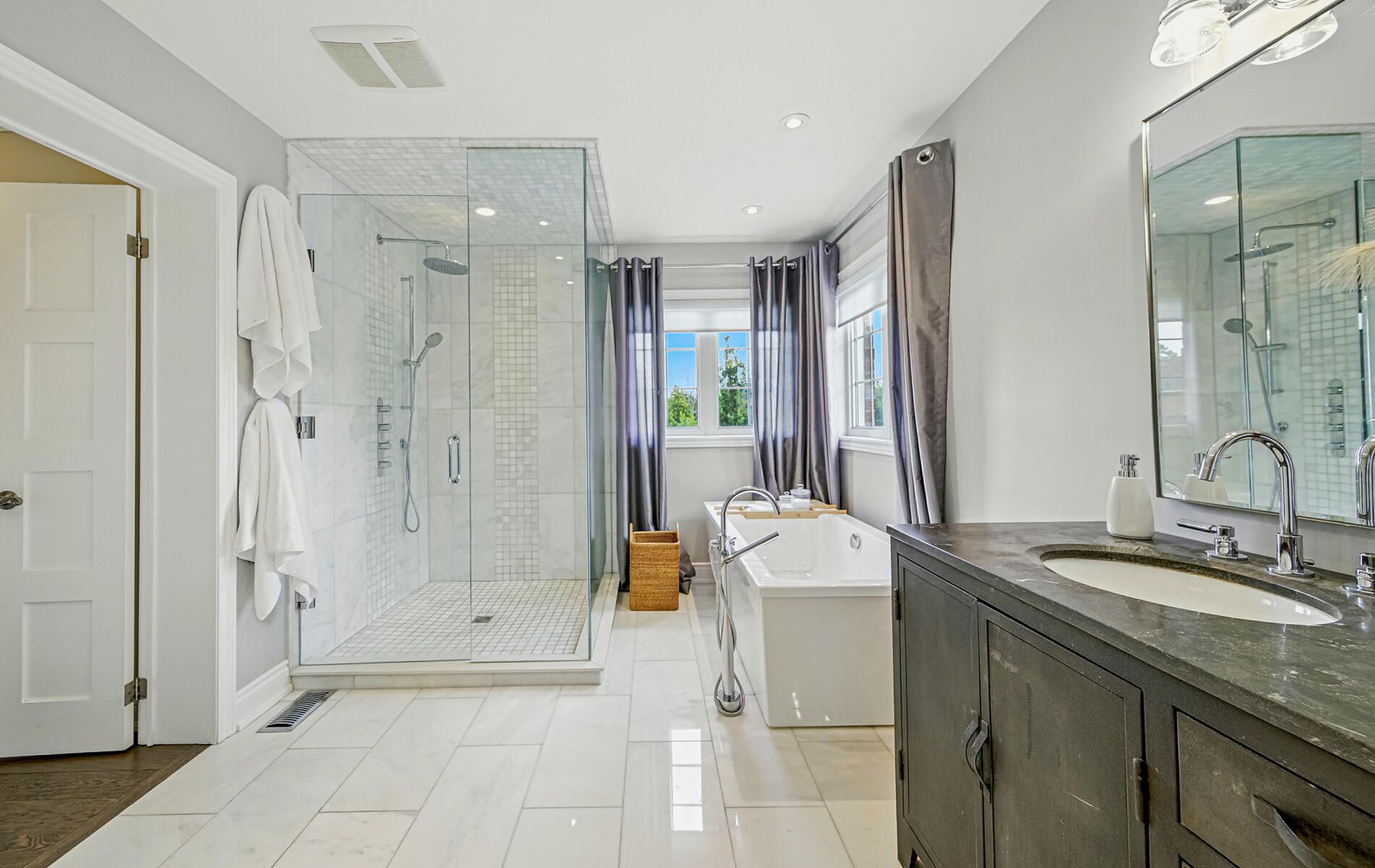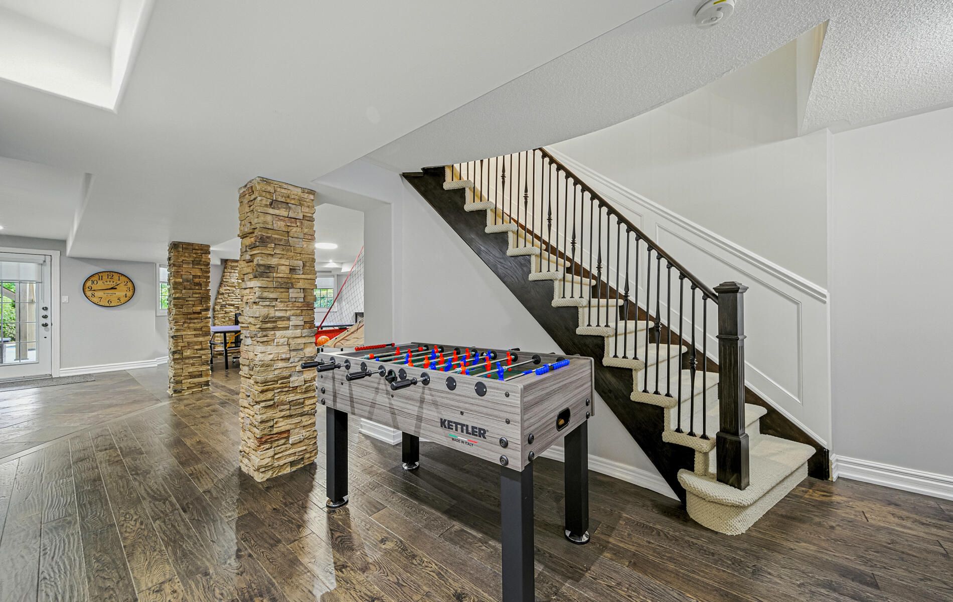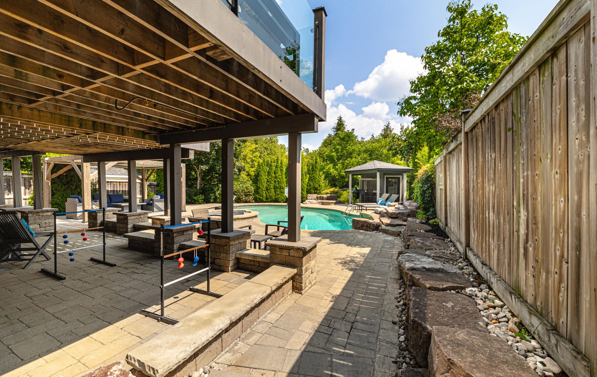 Set on one of brooklin's most coveted streets, this exceptional southampton model queensgate home offers over 4,000 sq. Ft. Of professionally designed & decorated luxury living space. Situated on a 50 ft lot backing onto greenspace, this home delivers both sophistication & serenity. The attention to detail is evident from soaring ceilings & rich hardwood flooring throughout to designer lighting & in-ceiling speakers that set the tone for effortless elegance. At the heart of the home lies the entertainers kitchen, outfitted with high-end appliances incl. A jenn-air fridge, wall oven, microwave, & thermador cooktop. This culinary haven seamlessly opens to the oversized great room w/ gas fireplace, all overlooking the breathtaking ravine backdrop & walks out to custom trex deck overlooking the backyard oasis. In addition to a separate living & dining room, the main floor also features a home office (also ideal as a childrens playroom), a mudroom/laundry room w/access to a recently renovated garage. Upstairs, the primary suite is a true retreat, with tranquil ravine views, his-and-hers walk-in closets, & a spa-inspired 5-piece ensuite. Bedroom 2 enjoys its own 3-piece ensuite and walk-in closet, while bedrooms 3 & 4 share a spacious 4-piece jack & jill bath each with its own walk-in closet. The finished walk-out basement extends the homes entertainment space, a sprawling rec room w/built-in cabinetry, a wet bar & beverage fridge, plus an open games area ideal for hosting family gatherings or poolside celebrations. Step outside to your private backyard oasis, complete w/16 x 32 kidney-shaped in-ground pool, hot tub, pool cabana w/electrical, propane fire pit & extensive landscaping. All of this is within walking distance to top-rated schools & moments from downtown brooklin, golf courses, the 407, shops, dining & more. Luxury. Privacy. Location. This is more than a home its a lifestyle.