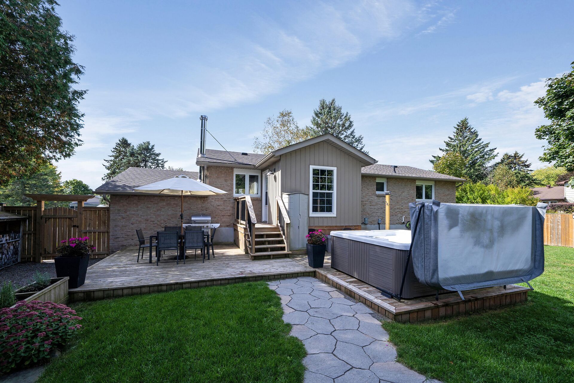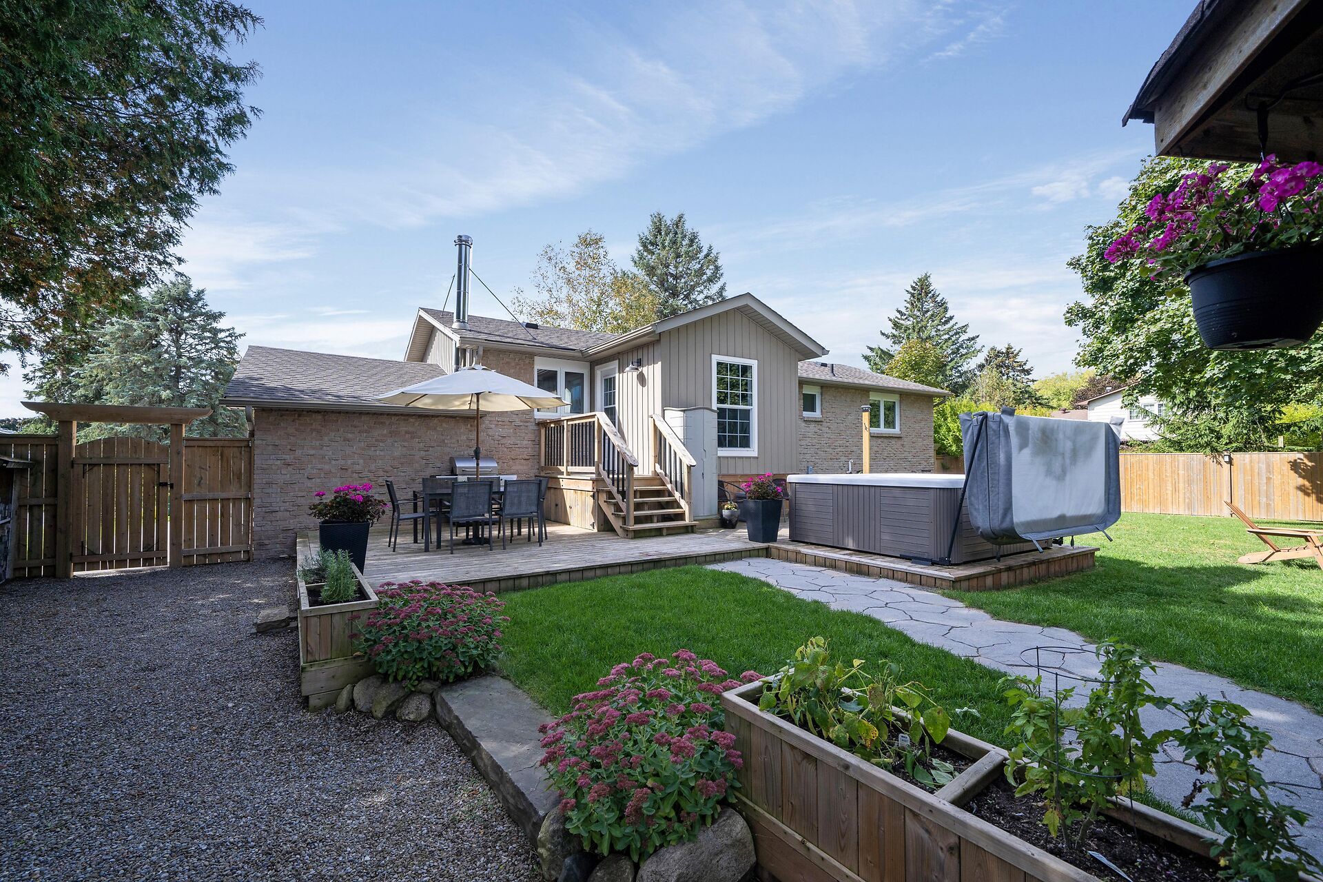 Your wait is over! This turnkey, 3 +1 bedroom home has been updated and styled from top to bottom. A lovely, raised bungalow with stunning decor and natural light pouring in through the windows. New flooring and a kitchen that blends beauty with functionality, complete with a coffee bar that will take your breath away. Main floor laundry room and mudroom are crisp and clean with access to the backyard. The lower level features a cozy family room with wood burning stove, the fourth bedroom, a three-piece bath, and a bonus wood shop. The fully fenced backyard will not disappoint; it includes a spacious deck, gazebo, hot tub, and playhouse. Located on a quiet street, walking distance to shopping, school, the arena, and library. An easy commute to the gta or the acton go station. Enjoy small town charm with lots of families and friendly neighbors.
