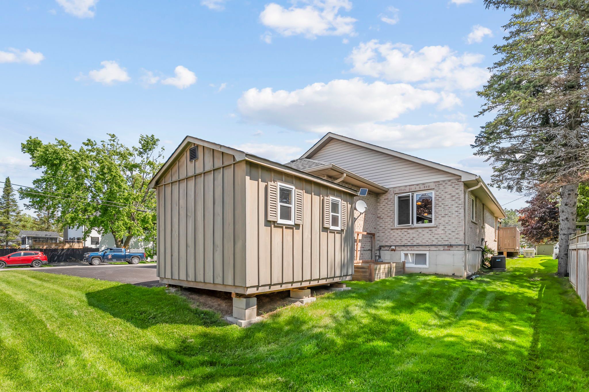 Welcome home to 3 david dr, an address with opportunity! This lovingly maintained, solid, custom-built bungalow is the perfect blend of thoughtful design, comfort, and functionality, inside and out. Ideal for those seeking multigenerational living and set on beautifully manicured grounds with attractive hardscaping, this home welcomes you with a charming covered front porch, ideal for peaceful mornings with coffee in hand. Step inside to a bright, open-concept living space, where skylights and gas fireplace anchor the kitchen, dining and living areas with warmth and light. The kitchen features quartz island, built in oven, gas cooktop, plenty of storage and sliding glass doors that lead you to a private side deck, complete with a hot tub hookup and pergola, offering the perfect spot to unwind. The spacious primary bedroom boasts a walk-in closet and access to a 4-piece semi-ensuite bath with soaker tub and stand up shower. Unique to this home is a separate wing with its own entrance and 2-piece washroom, ideal for a home office, studio, home-based business endeavour, or even an extra bedroom! A large garden shed and massive paved driveway add extra convenience for storage and parking. Downstairs, the basement expands your living space with a cozy family room, dedicated office, laundry, and a massive cold cellar. There's even potential for an in-law suite or multigenerational living setup. This home has been lovingly cared for for many years and is awaiting its new forever family! Book your viewing today!