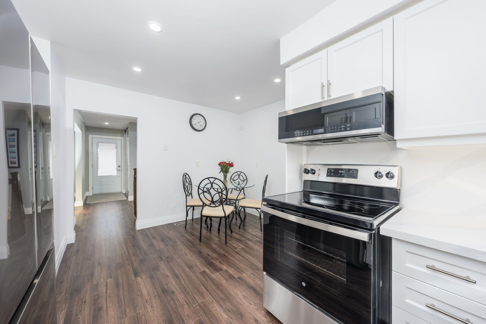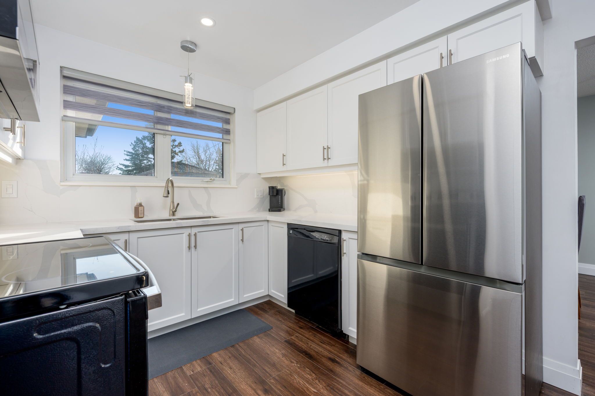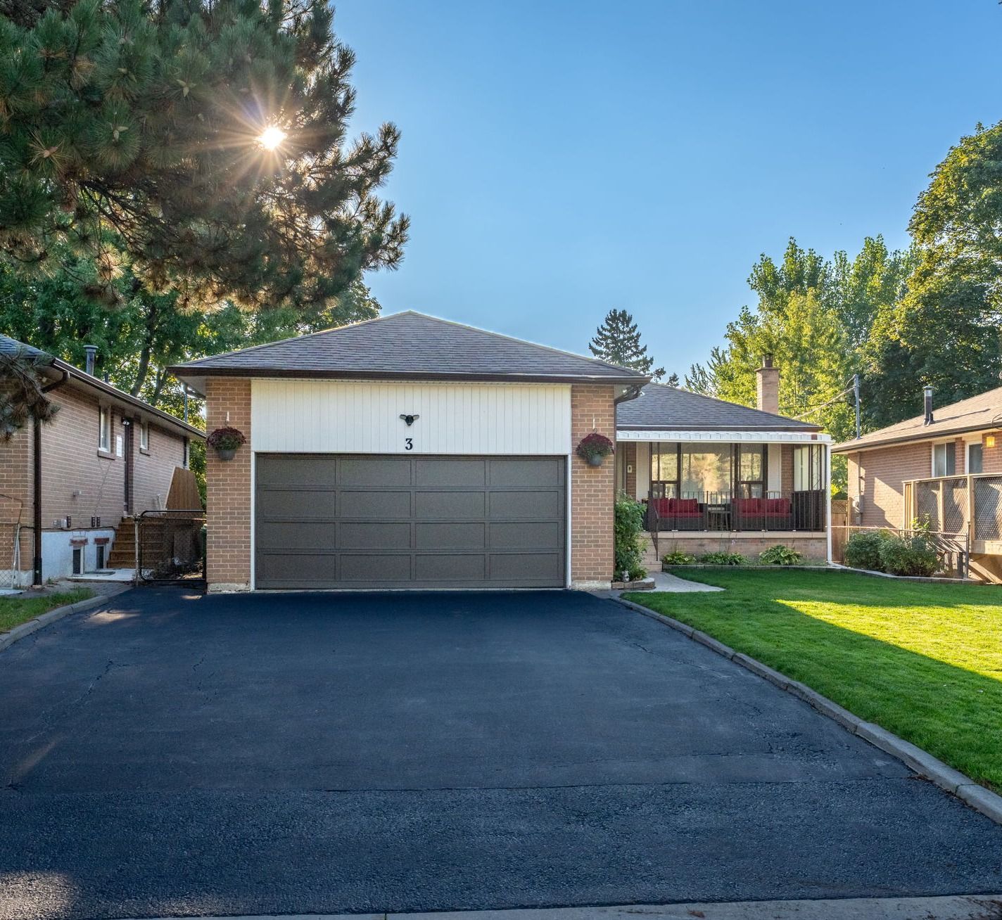 Tucked away on a quiet court of just 12 homes, this exceptionally rare spacious 4+1 bdrm offers outstanding upgrades, parking & living space. The property features a double-car garage, sealed driveway(2025) and parking for up to 9 small vehicles or 6 large vehicles. With approximately $100,000 in upgrades in 2024 and 2025, this home blends modern style and quality finishes with the rare benefit of a larger lot in a mature, sought-after neighborhood. An impressively designed exterior welcomes you with an interlocking front walkway leading to a very large covered front porch, with a faux stone finish (jewel stone) an ideal space to relax and enjoy the outdoors. Additional recent upgrades include a new front door & garage side dr. Step inside to a bright foyer with double mirrored closet drs and pot lights, opening to the main level w/rich dark laminate flooring throughout (excluding bathrooms) elegant new oak railings with iron pickets & 5 1/2-inch slant bevel baseboards add character, complemented by new interior drs (lincoln) and trim on main level . The massive living rm, with large picture window, offers plenty of daylight flowing into a spacious dining room-perfect for entertaining. The stunning renovated eat-in kit is a showstopper, featuring quartz counters & backsplash, soft-close cabinetry, under-cabinet lighting, pot lights, stainless steel double undermount sink, new stainless-steel fridge, stove, a pantry, and a walk-out to a covered deck with pot lights. Upstairs, the luxurious primary bdrm offers two large closets, laminate flooring, pot light above the closets, and access to a newly reno'd 3-piece semi-ensuite. 3 additional well-proportioned bdrms complete the level. Fully reno'd 4-pc main bath boasts a high-end porcelain vanity w/quartz countertop, soaker tub, rain shower, and pot lights. The finished bsmt provides additional living space, featuring a fam rm w/gas fp, wainscoting, wet bar, game rm, 2pc bath, 5th bdrm, laundry rm & cantina.