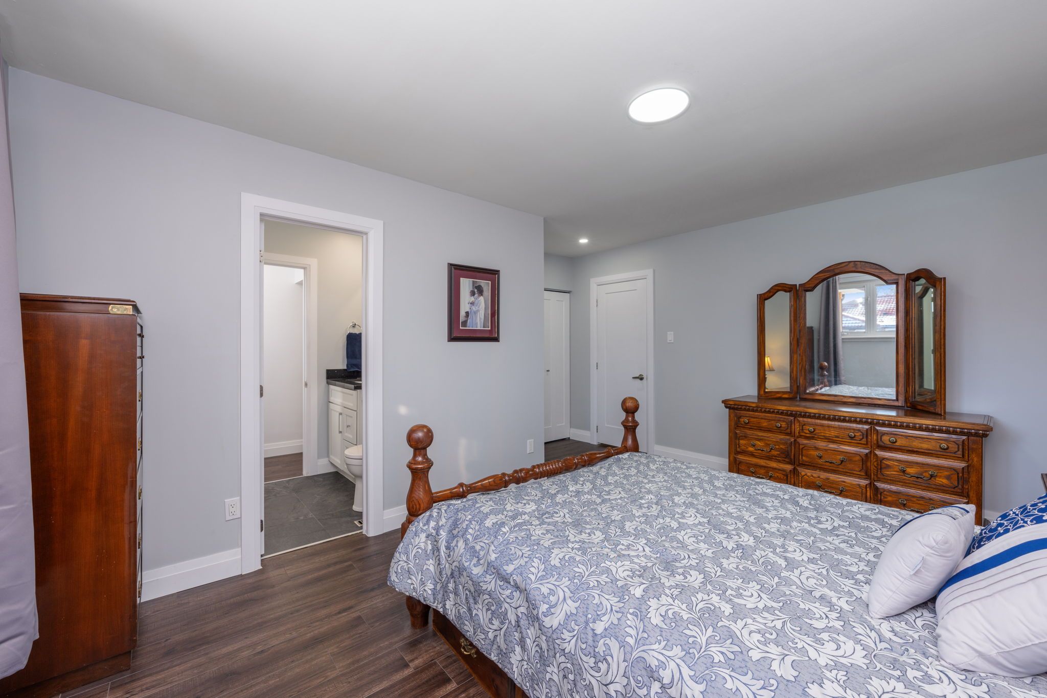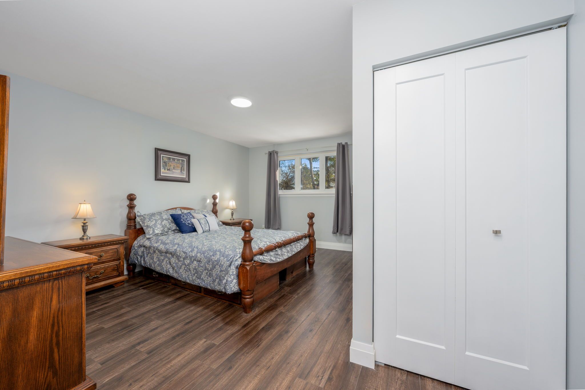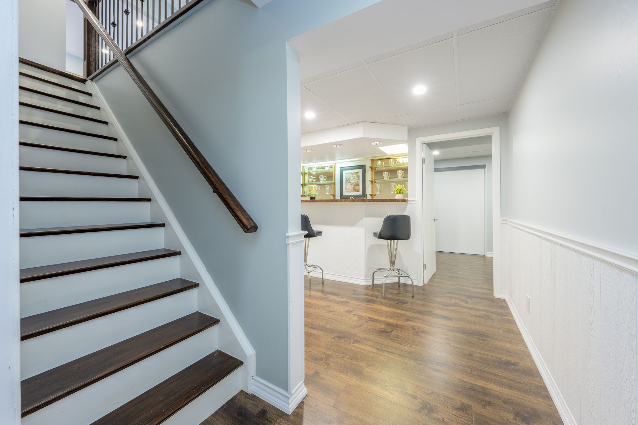 Tucked away on a quiet court of just 12 homes, this exceptionally rare spacious 4+1 bdrm offers outstanding upgrades, parking & living space. The property features a double-car garage, sealed driveway(2025) and parking for up to 9 small vehicles or 6 large vehicles. With approximately $100,000 in upgrades in 2024 and 2025, this home blends modern style and quality finishes with the rare benefit of a larger lot in a mature, sought-after neighborhood. An impressively designed exterior welcomes you with an interlocking front walkway leading to a very large covered front porch, with a faux stone finish (jewel stone) an ideal space to relax and enjoy the outdoors. Additional recent upgrades include a new front door & garage side dr. Step inside to a bright foyer with double mirrored closet drs and pot lights, opening to the main level w/rich dark laminate flooring throughout (excluding bathrooms) elegant new oak railings with iron pickets & 5 1/2-inch slant bevel baseboards add character, complemented by new interior drs (lincoln) and trim on main level . The massive living rm, with large picture window, offers plenty of daylight flowing into a spacious dining room-perfect for entertaining. The stunning renovated eat-in kit is a showstopper, featuring quartz counters & backsplash, soft-close cabinetry, under-cabinet lighting, pot lights, stainless steel double undermount sink, new stainless-steel fridge, stove, a pantry, and a walk-out to a covered deck with pot lights. Upstairs, the luxurious primary bdrm offers two large closets, laminate flooring, pot light above the closets, and access to a newly reno'd 3-piece semi-ensuite. 3 additional well-proportioned bdrms complete the level. Fully reno'd 4-pc main bath boasts a high-end porcelain vanity w/quartz countertop, soaker tub, rain shower, and pot lights. The finished bsmt provides additional living space, featuring a fam rm w/gas fp, wainscoting, wet bar, game rm, 2pc bath, 5th bdrm, laundry rm & cantina.
