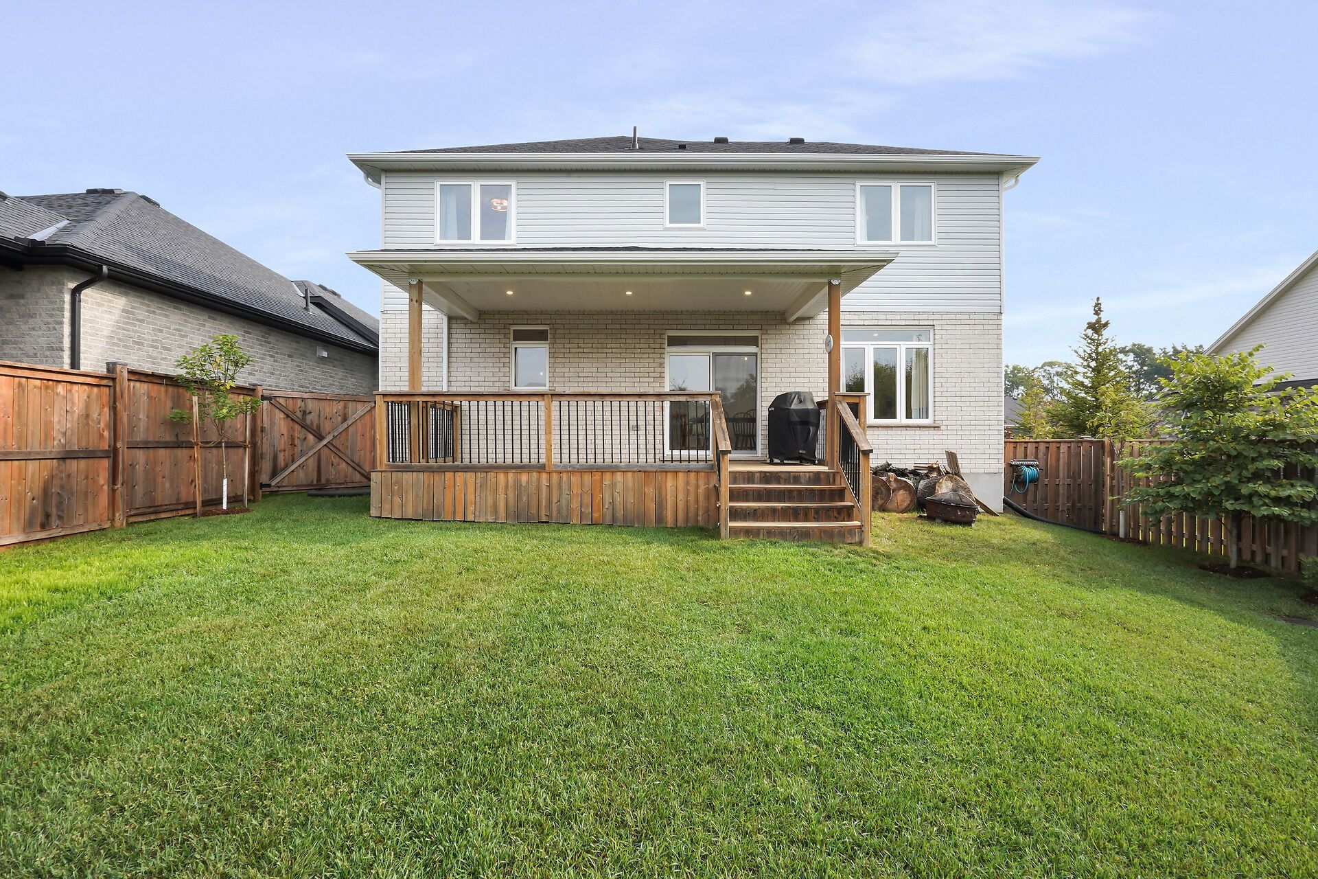 Welcome to the very best of southgrove meadows - where style, comfort, and family living come together just steps from a soon-to-be-installed new community park. This custom-built 4+1 bedroom, 4-bathroom home is more than just a place to live - its a forever home waiting for you. From the curb, you'll love the tailored exterior with modern tones, a sleek concrete driveway, and a welcoming covered porch that sets the tone for what's inside. Step through the front door and prepare to be wowed by soaring vaulted ceilings over a bright, open-concept great room anchored by a cozy fireplace. The dining area is perfect for family gatherings, while the chefs kitchen delivers on every detail with endless cabinetry, generous storage, and a layout designed for both everyday living and entertaining. Upstairs, you'll find four spacious bedrooms, including a serene primary retreat complete with a walk-in closet and a spa-inspired ensuite. The fully finished lower level adds even more space with a 5th bedroom, full bathroom, and a plush family room ideal for movie nights or game days. Step outside to your private backyard oasis featuring a covered deck, landscaped gardens, and plenty of room for kids, pets, and summer barbecues. Located just steps to caradoc sands golf course, highway 402, and all of strathroy's most-loved amenities, this home combines luxury and convenience in one incredible package. With appliances, window coverings, and a fully finished basement all included, the value here is unmatched. This is the one you've been waiting for - welcome home!