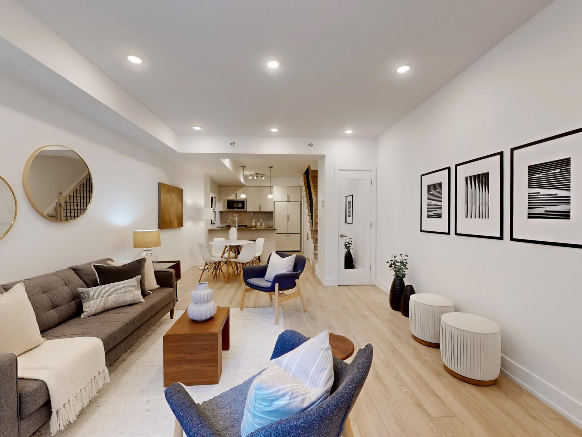 Welcome home * a hidden gem nestled in a quiet enclave in the heart of junction * this freehold townhome defines urban chic lifestyle * with approximately 1600 sq. Ft. Of thoughtfully designed living space across 3-levels plus almost 270 sq. Ft. Private roof top terrace this home is perfectly suited for both family living & entertaining * experience the ideal blend of function, style, comfort featuring generous room sizes, bathroom on every level, ample storage & quality finishes throughout * the impressive open plan main level boasts soaring ceilings & oversized principal room that flows seamlessly into ultra sleek kitchen with light-toned finishes, quartz countertops, breakfast bar, & convenient powder room * the entire second floor is dedicated to luxurious primary suite complete with walk-in closet & spa inspired 5-piece ensuite fitted with dual vanity & large wall-to-wall separate shower * third level features 2 spacious bedrooms & a full 4-piece bathroom * versatile upper level also offers walk-out access to sunny roof top terrace equipped with water & gas hook-up * additional conveniences include 2nd level laundry room with deep lundry tub, 1 underground parking & 1 locker * superb location steps to bloor, close to roncy, high park, vibrant junction triangle, bloor line subway & go station with all the amenities at your fingertips * boutique family friendly complex, walk, bike & pet friendly * this home presents an exceptional opportunity to embrace the dynamic lifestyle of junction in low maintenance setting.