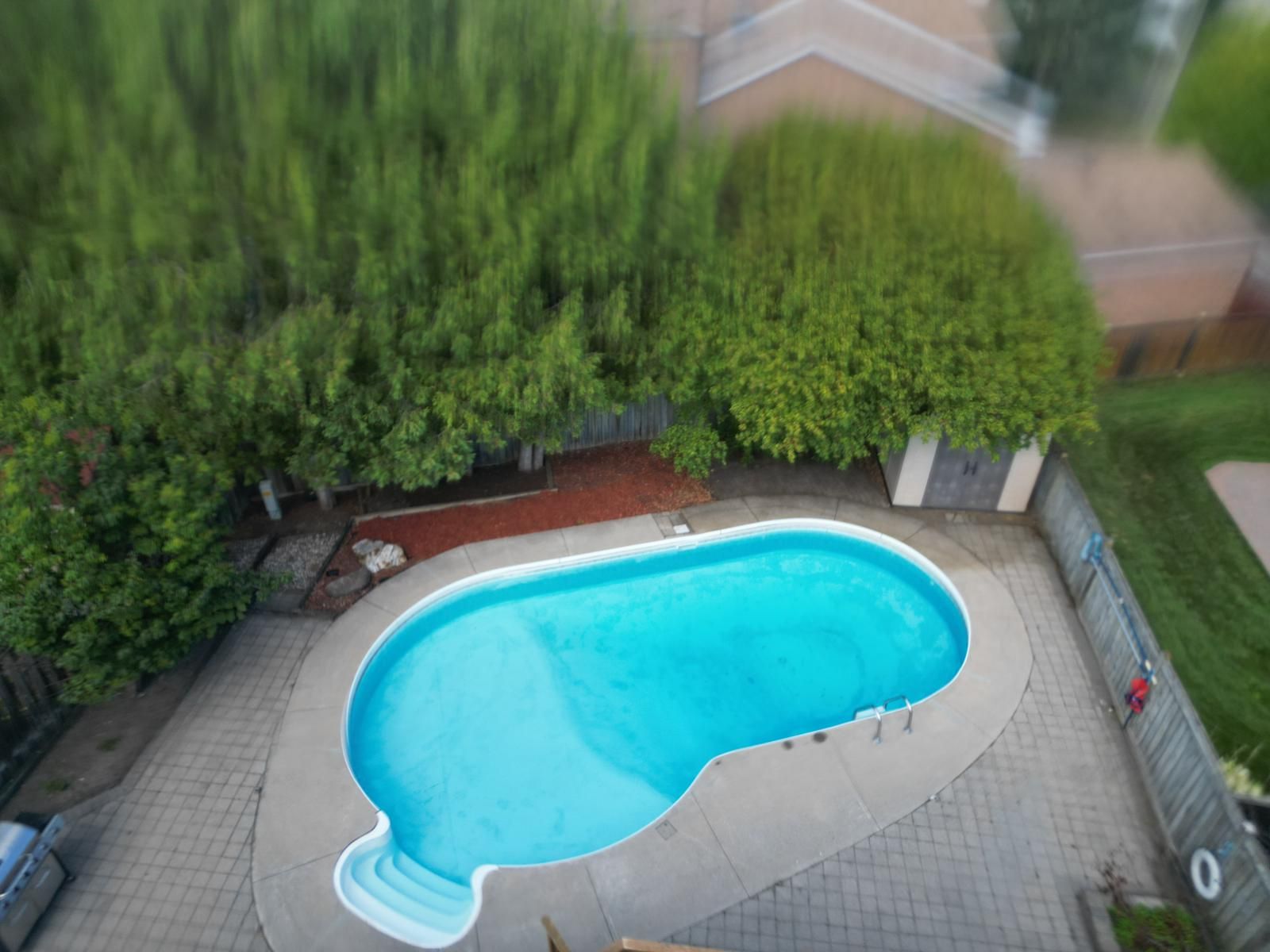 • Private backyard oasis includes a heated inground pool and hot tub.