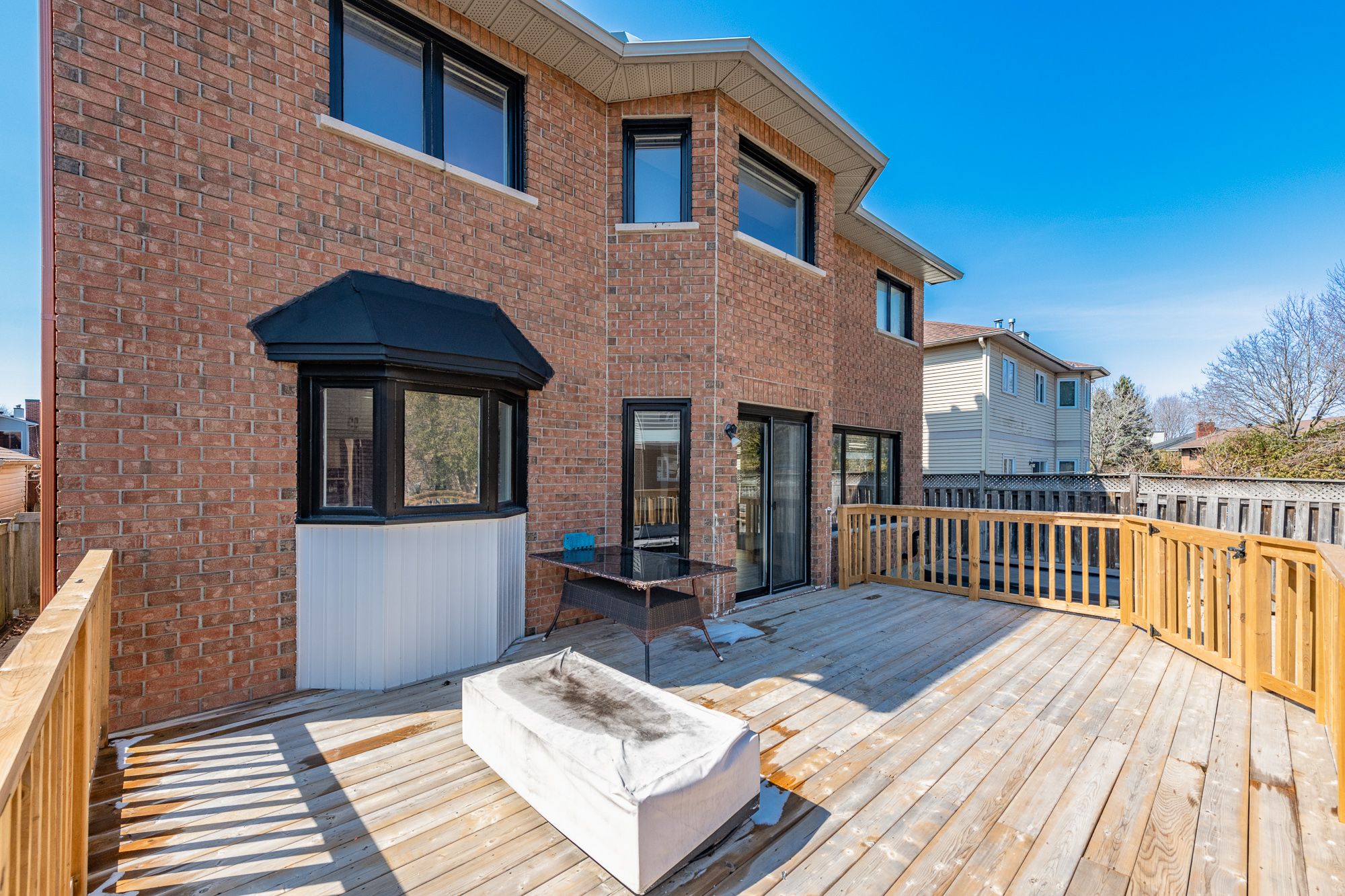 Beautiful full brick, 4 bed/4 bath home with over 4,100 sq. Ft. Of updated living space with finished basement on a premium lot! The main level features hardwood flooring, spacious living and dining rooms, a functional den, inviting family room, and a tastefully updated kitchen. Upstairs offers a generous primary suite with a 5-piece ensuite and walk-in closet, plus three additional bedrooms with custom closets and a full bath. The finished basement includes a rec area, office and 3-piece bathroom. Enjoy your private backyard oasis with a heated inground pool, hot tub, grilling area, patio, and outdoor lighting. Complete with an interlock driveway and extensive updates throughout including flooring, bathrooms, basement, pool, garage, and ceilings. Located across from a park and near top-rated schools, convenient shopping, restaurants and community amenities, with easy access to major routes for commuting. Roof (2022), windows (2012), ac (2012), furnace (2008).