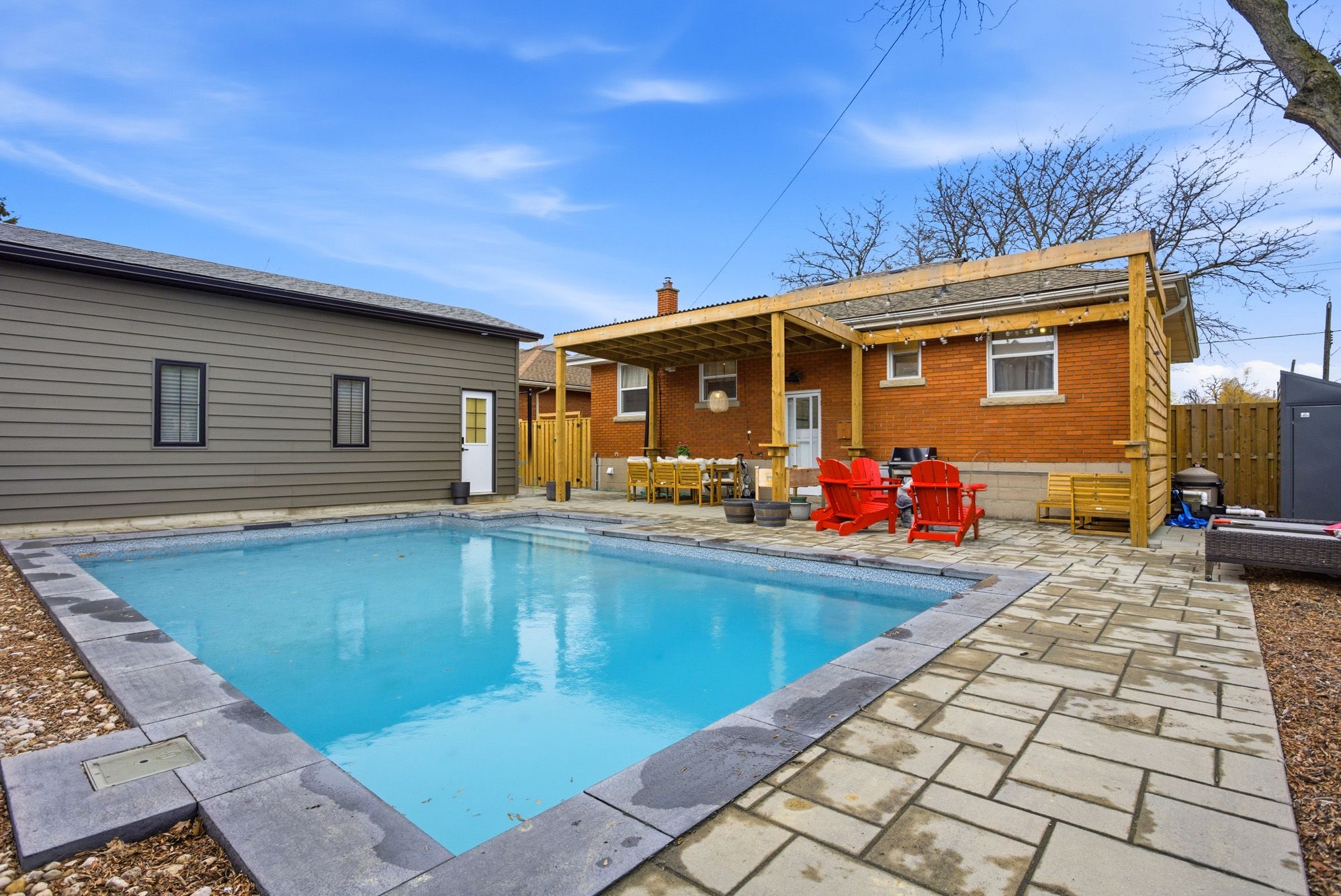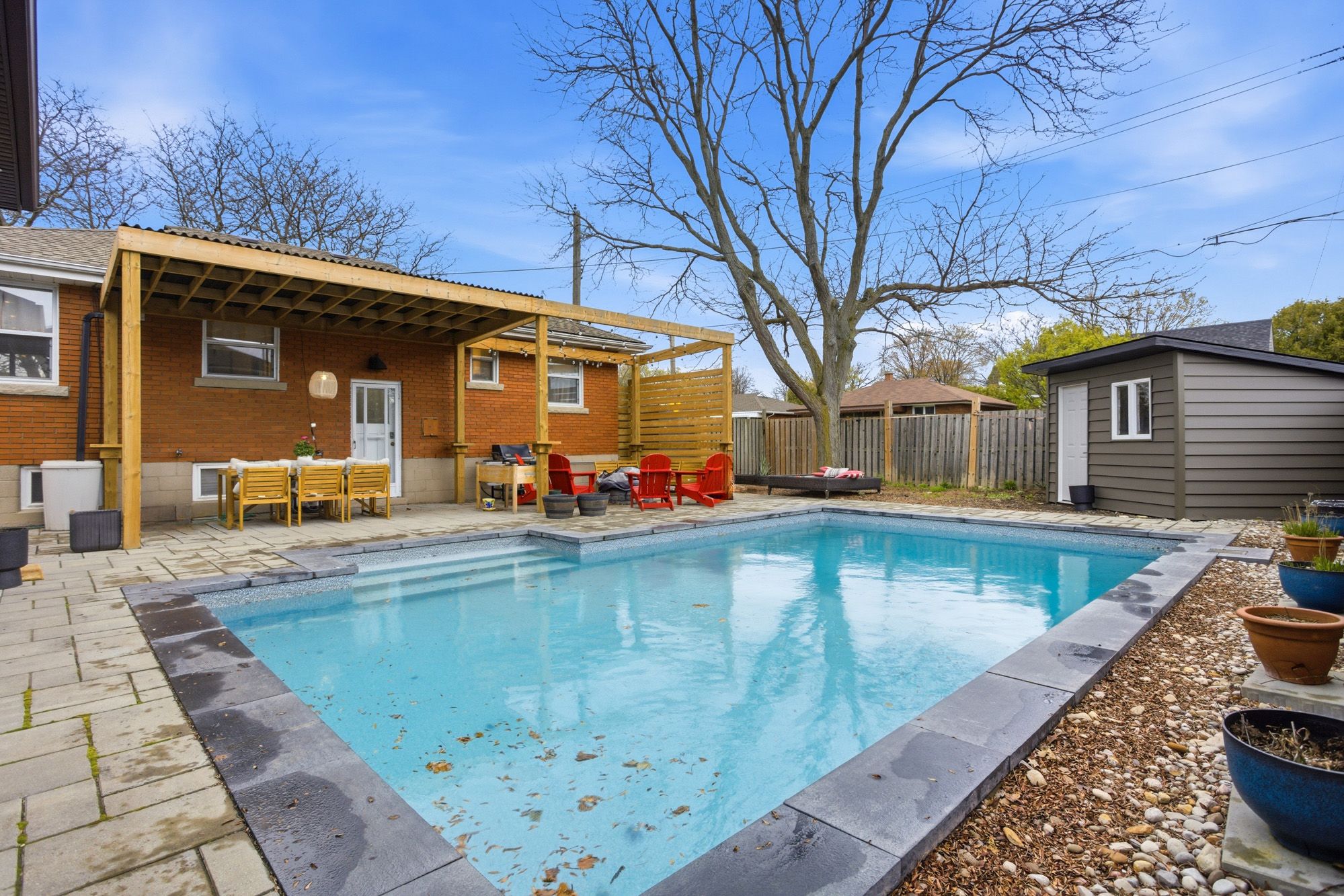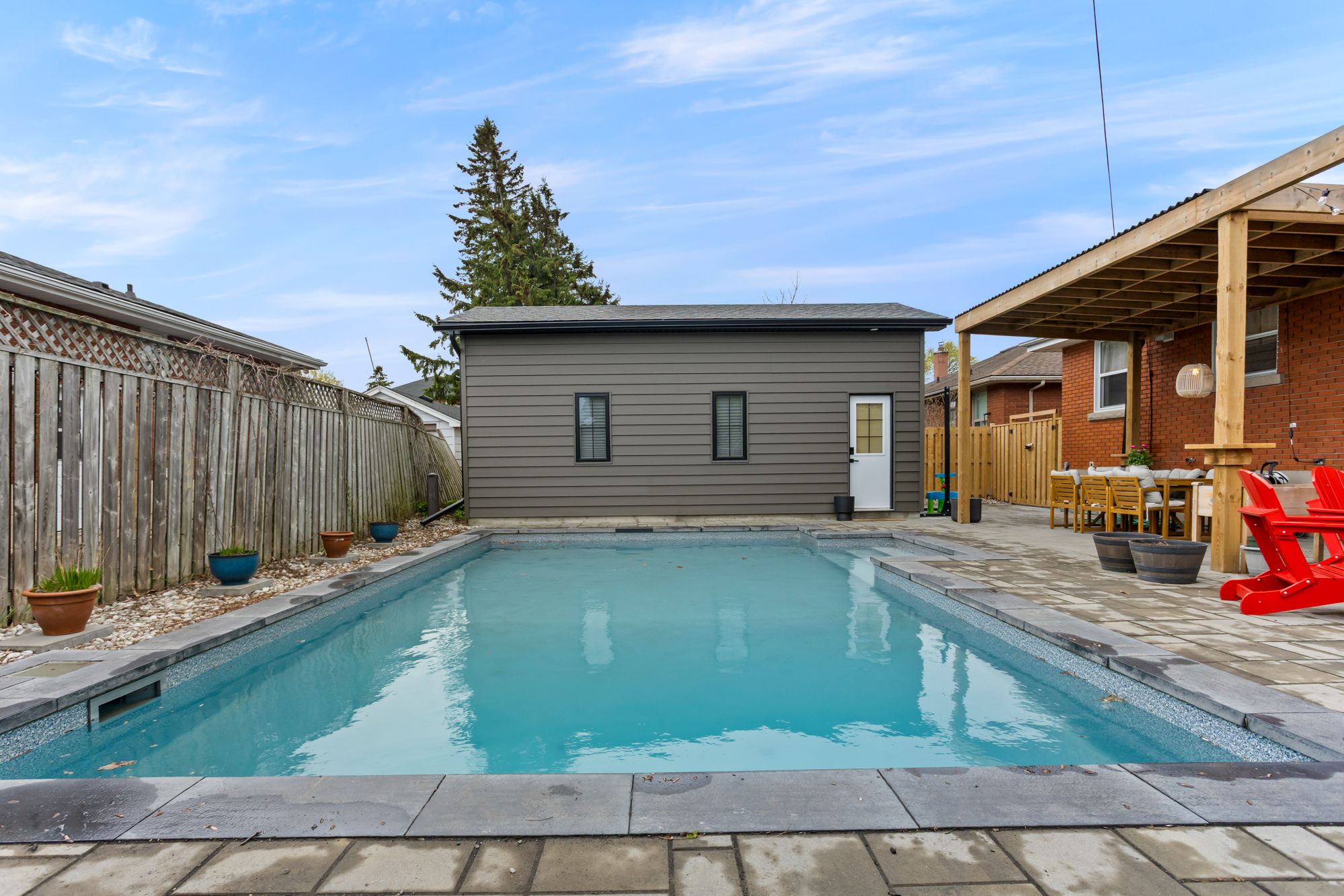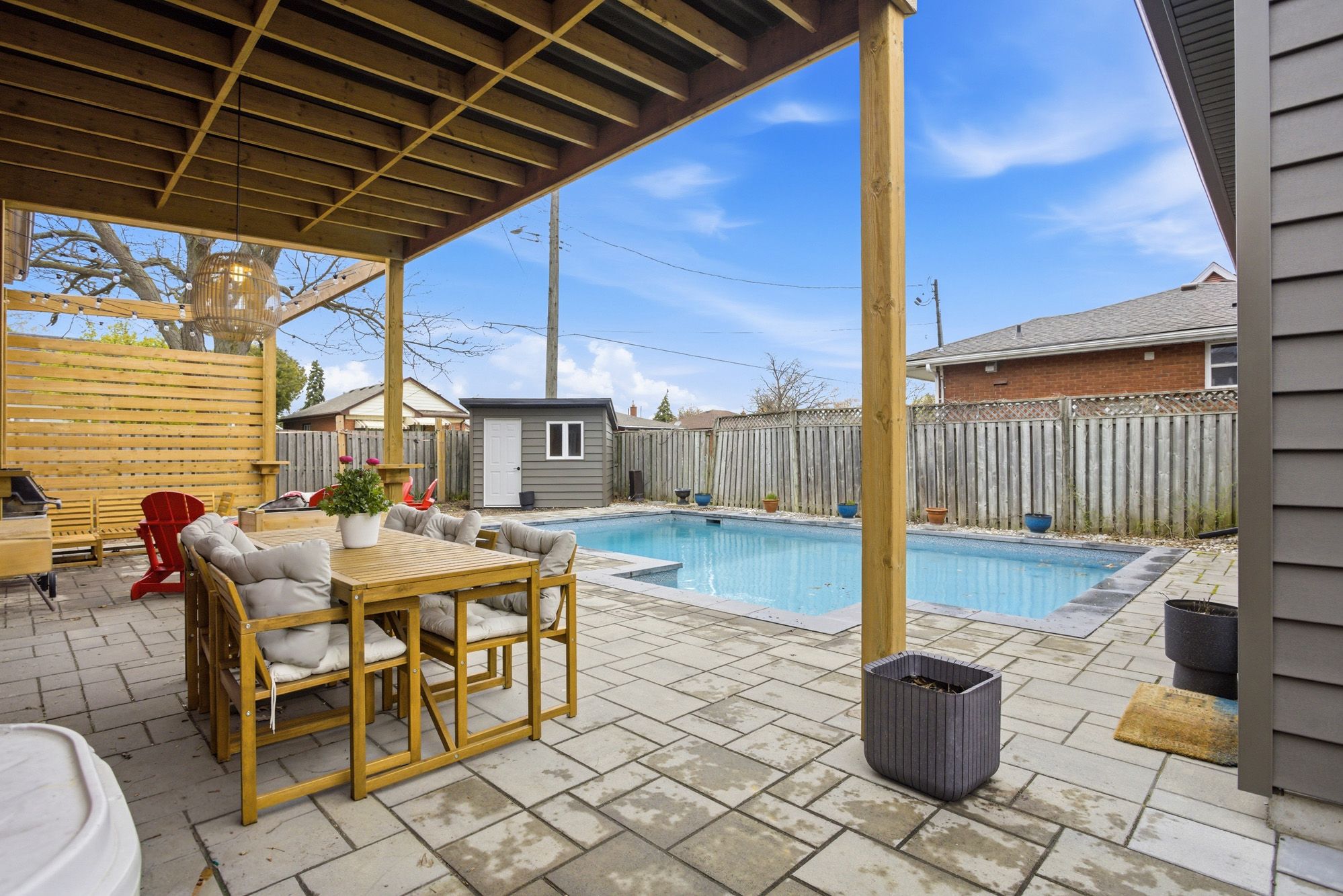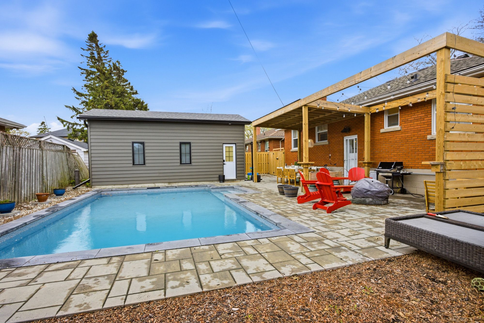 • Fully fenced backyard with a new pool, ideal for summer fun.