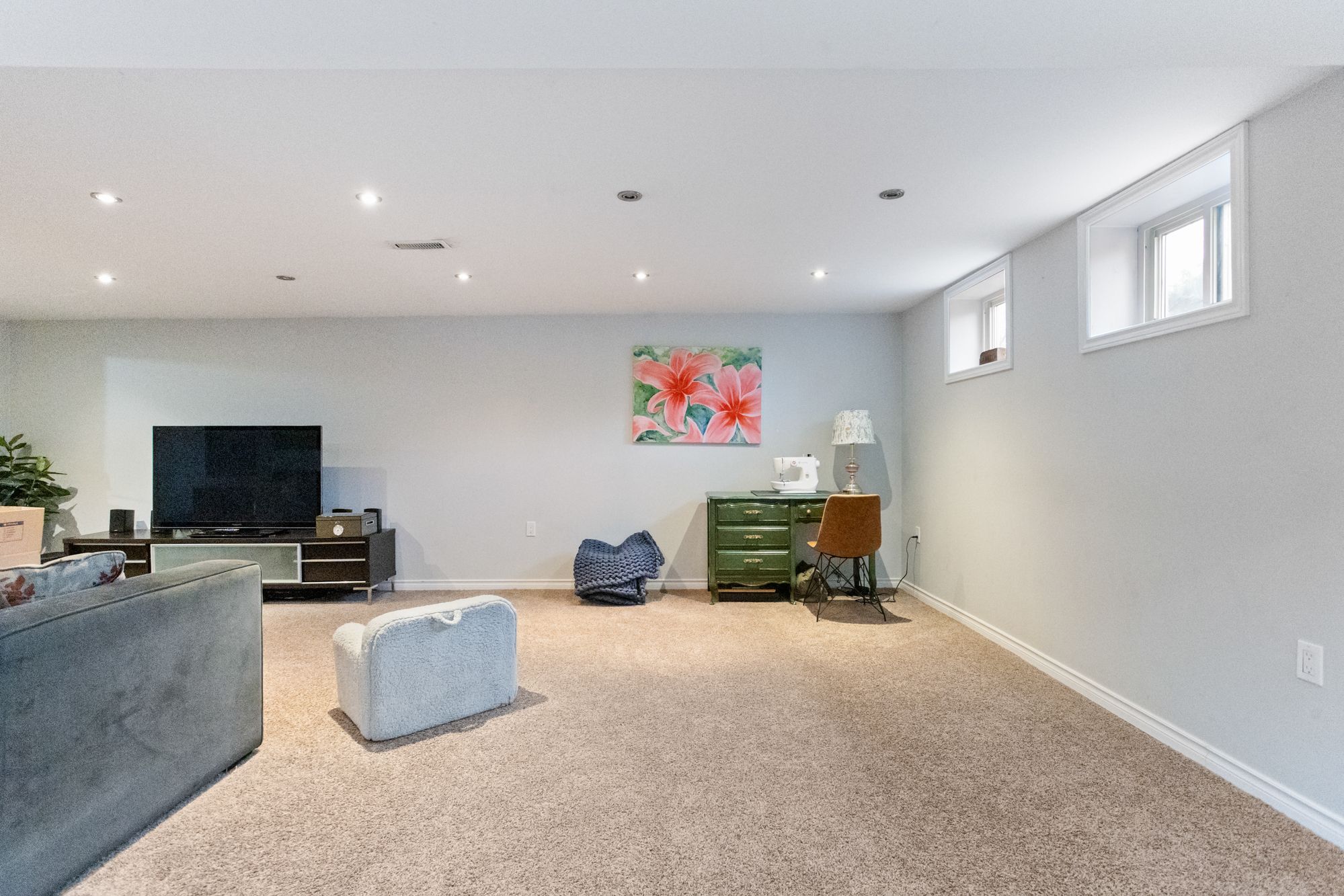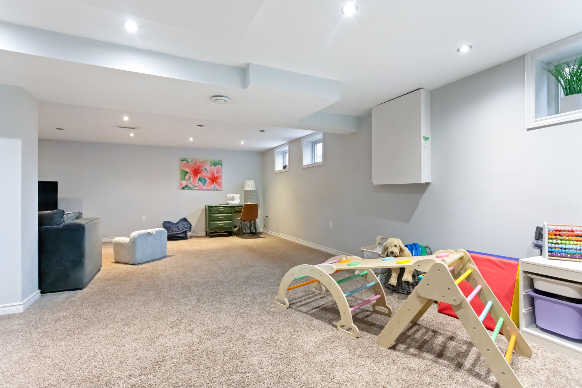 • Finished basement offers flexible additional living space for various needs.