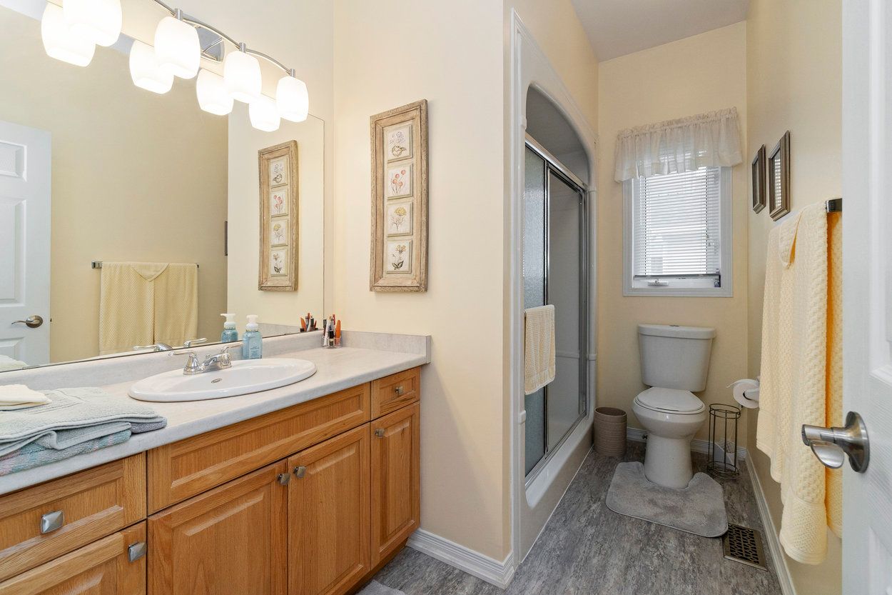 Welcome to 3 fir drive in the sought-after adult lifestyle community of wilmot creek! This charming bungalow features 2 spacious bedrooms, a combined living and dining room with hardwood floors, and a bright kitchen open to the family room with walk-out to a private rear deck - ideal for entertaining or relaxing outdoors. A screened porch at the front adds extra charm and a cozy spot to enjoy the neighbourhood. The oversized garage provides ample storage and can accommodate a golf cart. Monthly potl fees of $1,200 include property taxes, water, driveway & road snow removal, land lease and access to all amenities. Residents of wilmot creek enjoy an unparalleled lifestyle with over 100 different social clubs, a vibrant hub at the wheelhouse offering billiards, shuffleboard, fitness classes, crafts and dance programs. The community also boasts an 800-seat auditorium hosting theatre productions, dances and the annual grandkids christmas party. Amenities include a private 9-hole golf course, swimming pool, clubhouse, fitness centre, tennis courts, library, woodworking shop, and more - all just steps from lake ontario. Truly a welcoming, active community with something for everyone!