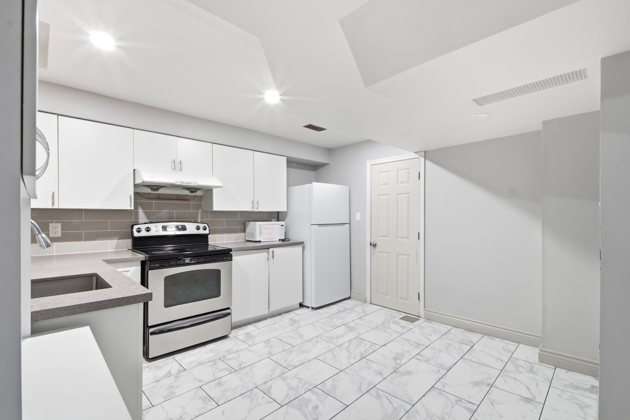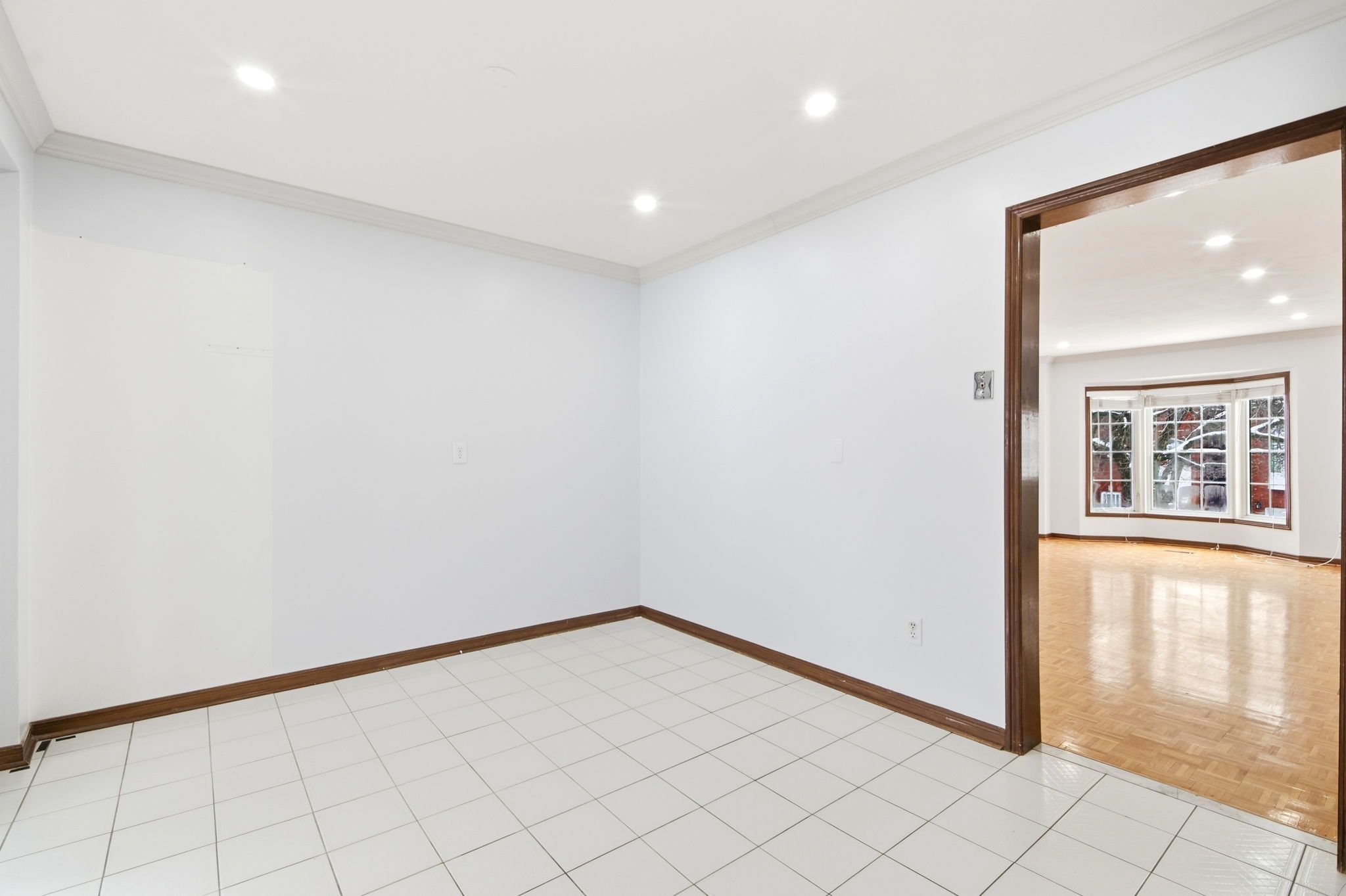 • Open-concept design with elegant parquet and ceramic flooring.