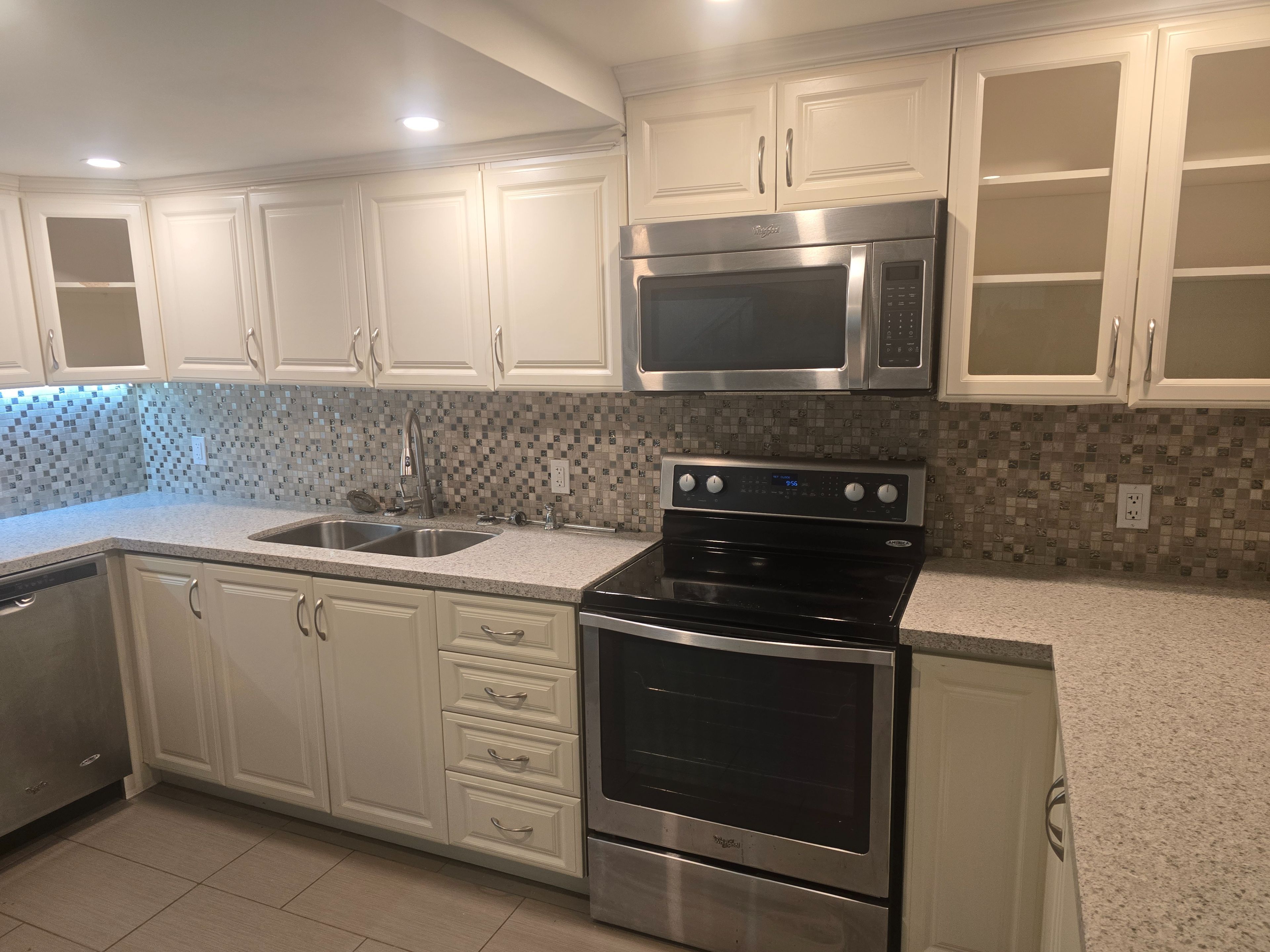 • Renovated kitchen features stainless steel appliances and granite countertops.