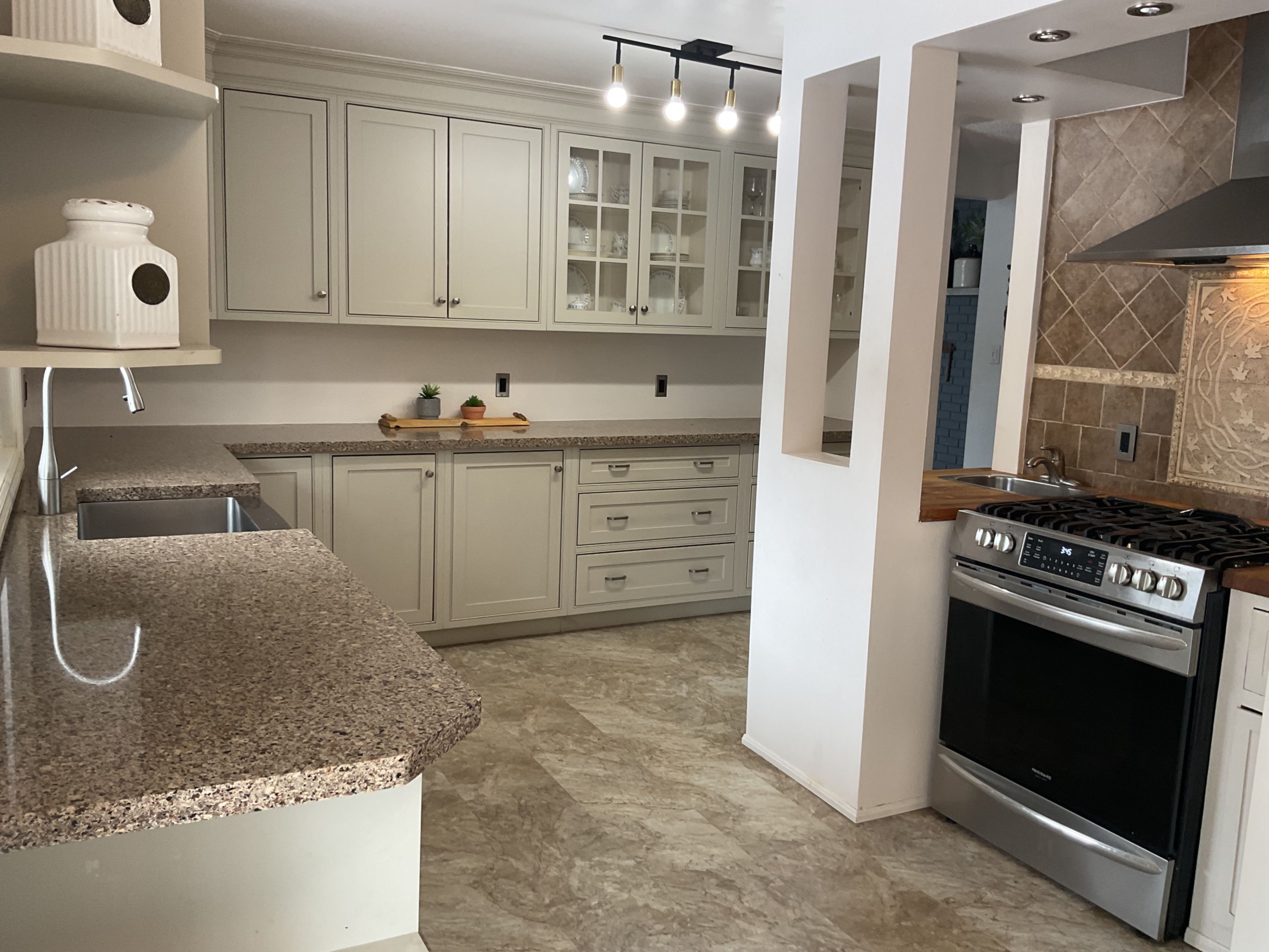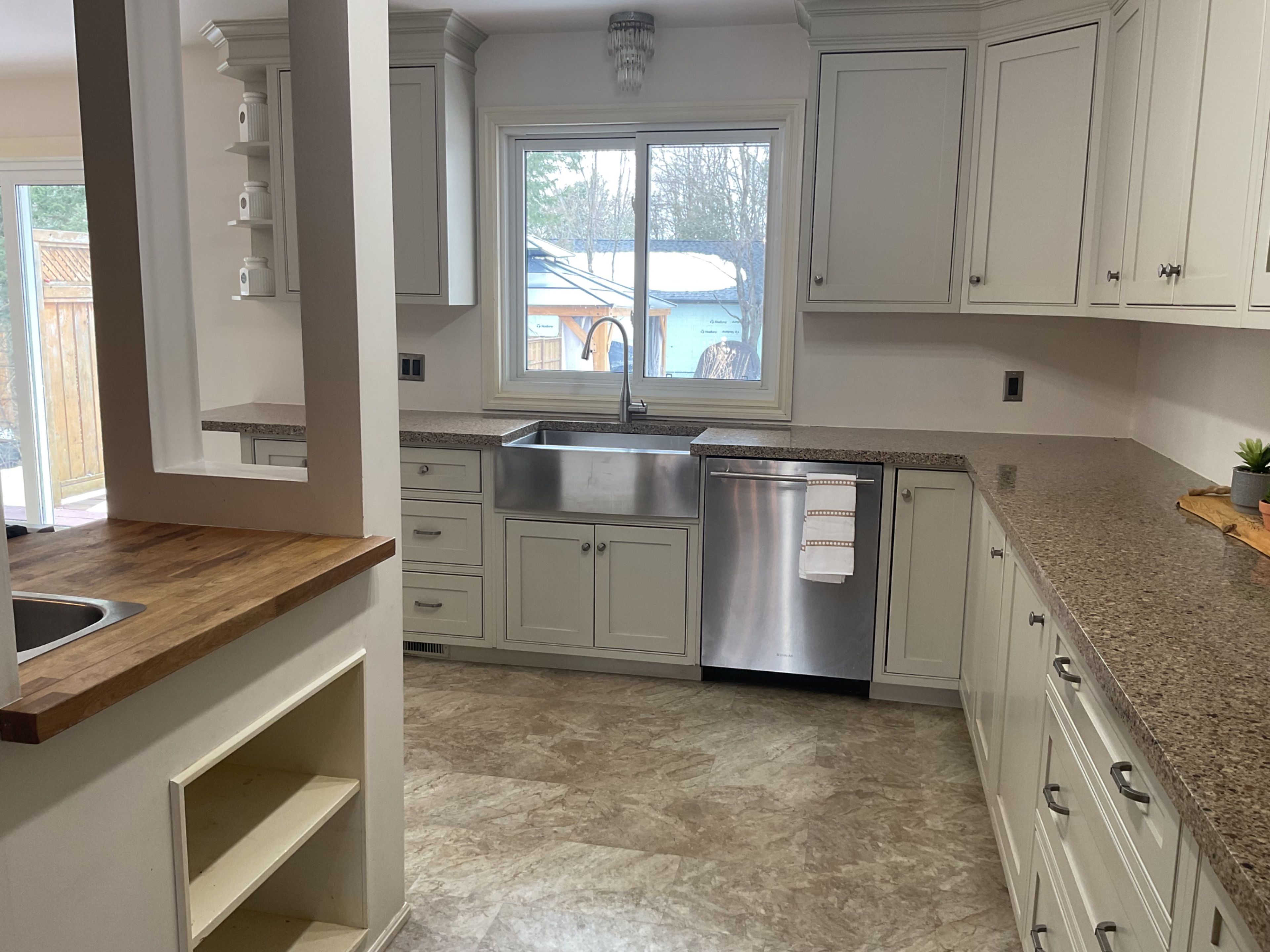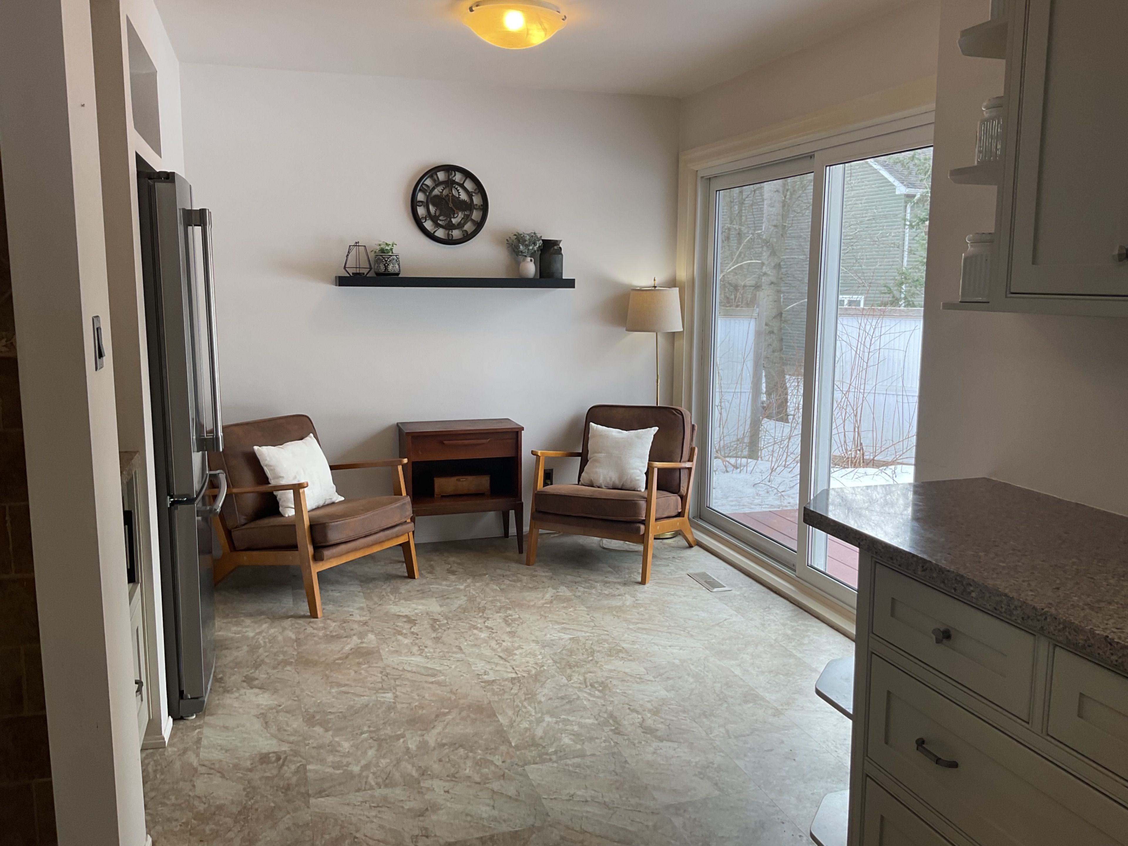 • Bright kitchen with patio doors that open to a spacious backyard.