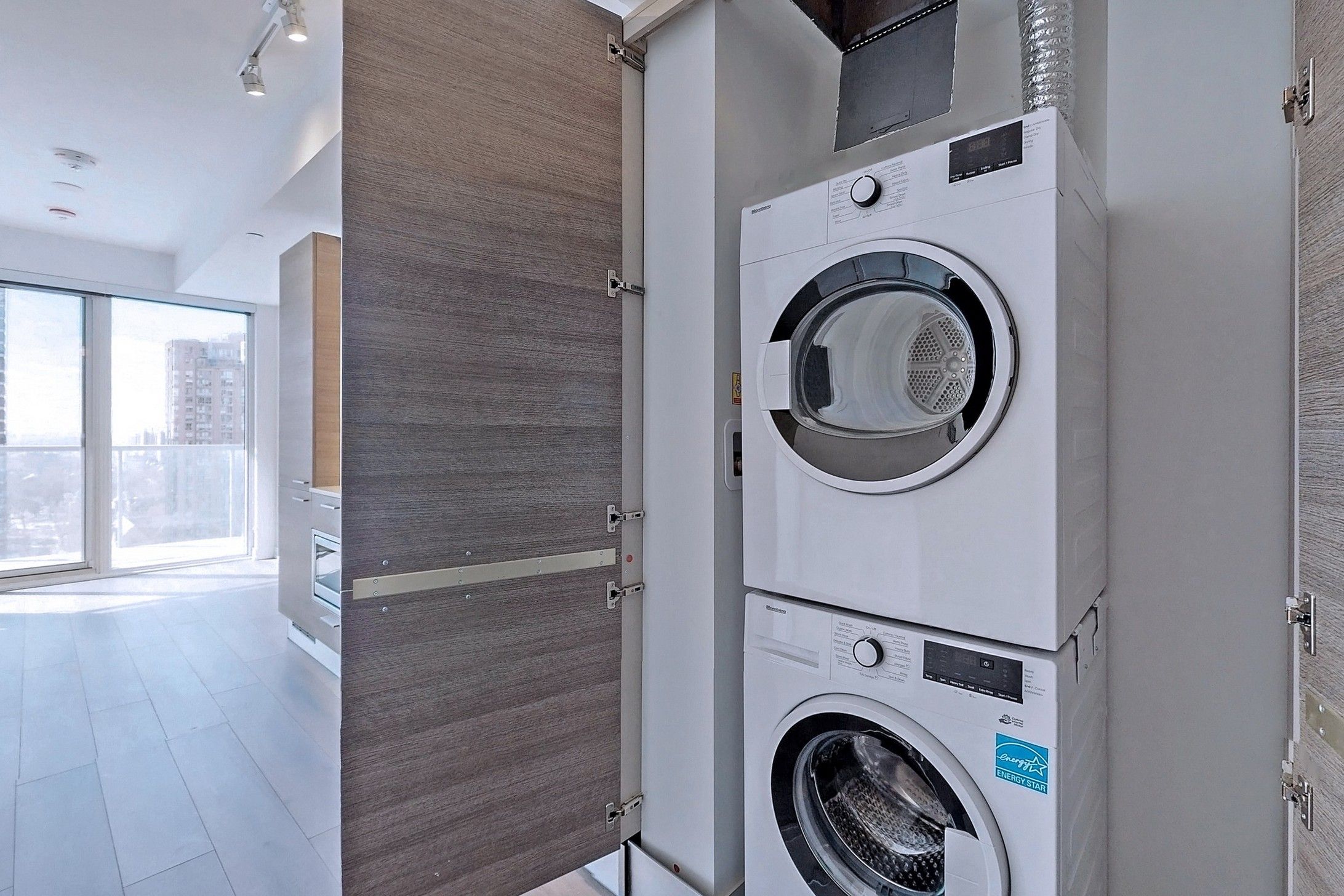 Glamorous & convenient downtown living at luxurious "gloucester on yonge" w/direct access to subway. Bright and spacious 1 plus den w/9ft ceiling. Steps away from yorkville, uoft, ryerson, restaurants, shops, parks and more! A modern kitchen with integrated appliances, cabinet organizers, full-sized washer/dryer; and roller blinds.