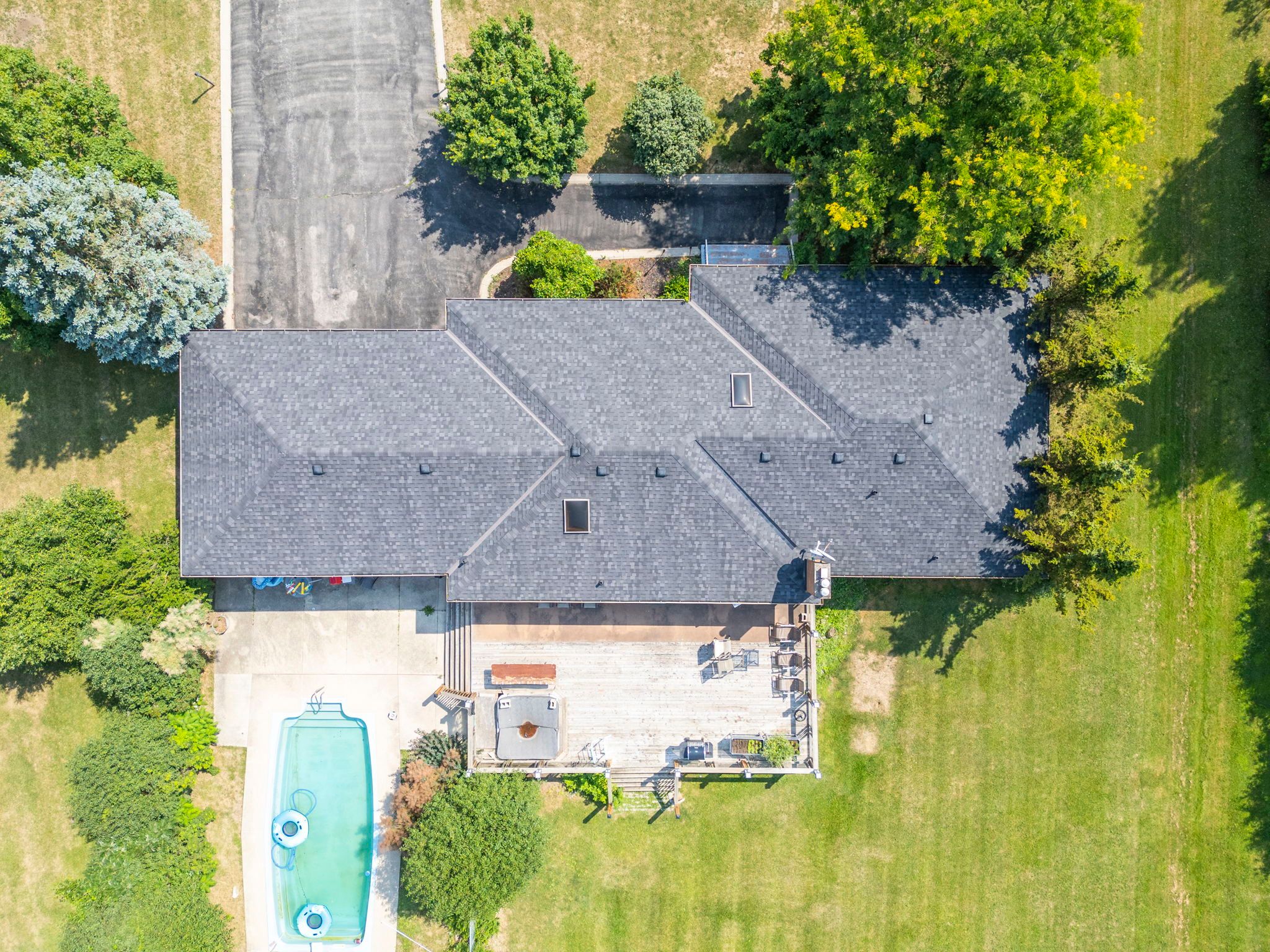 • Outdoor oasis includes a large deck, in-ground pool, hot tub, and mature trees.