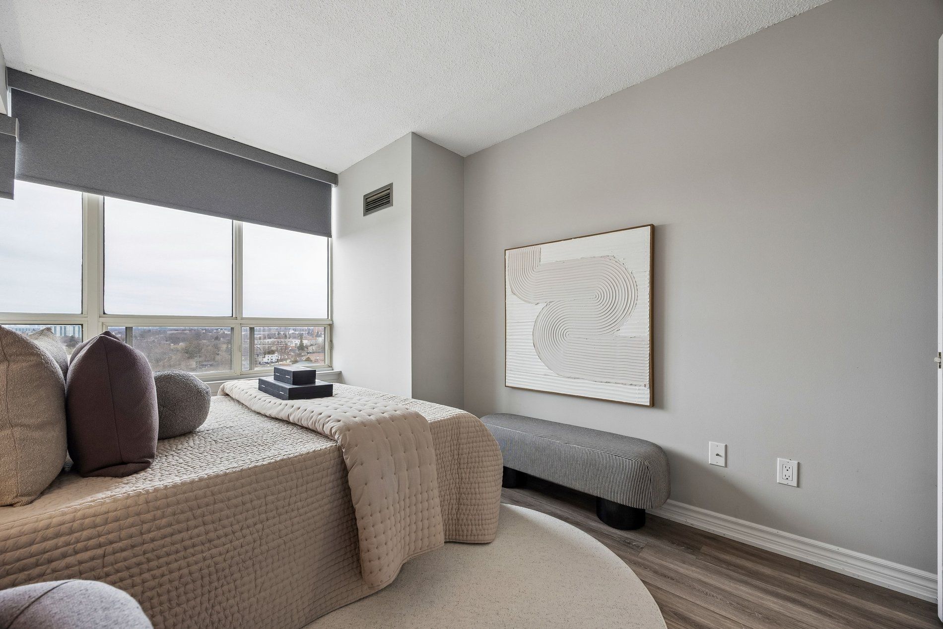Renovated living at 3 greystone walk dr 1 bed +1 parking and locker. Step into this bright suite with modern kitchen and bathroom, vinyl flooring (2025) and s/s appliances.. This generously sized 1-bedroom unit with a full laundry room with a sink boasts a contemporary kitchen with stainless steel appliances (dishwasher 2026) and newer blinds on all windows. Enjoy new flooring, updated lighting, freshly painted walls, and bright light throughout. All sliding doors replaced with upgraded hung doors. The smart layout offers a sun-filled bedroom with large windows, and convenient ensuite stacked washer and dryer set (2024) with laundry tub in the room!. Comes with 1 parking space and locker. Beautiful south west view from the balcony that has professionally installed bird screen. Nestled in a highly sought-after, gated community with 24/7 gatehouse security and award-winning resort-style amenities including an indoor & outdoor pool, gym, sauna, squash & tennis courts, party room, games room, and ample visitor parking. Unmatched location. Steps to go station, 24-hour ttc, r. H. King academy, grocery store, restaurants, and only minutes to the 401, dvp, scarborough bluffs, and more. Move in and enjoy luxury condo living without lifting a finger everything has already been done for you! Building is in process of major renovations to the lobby, hallways and driveways!