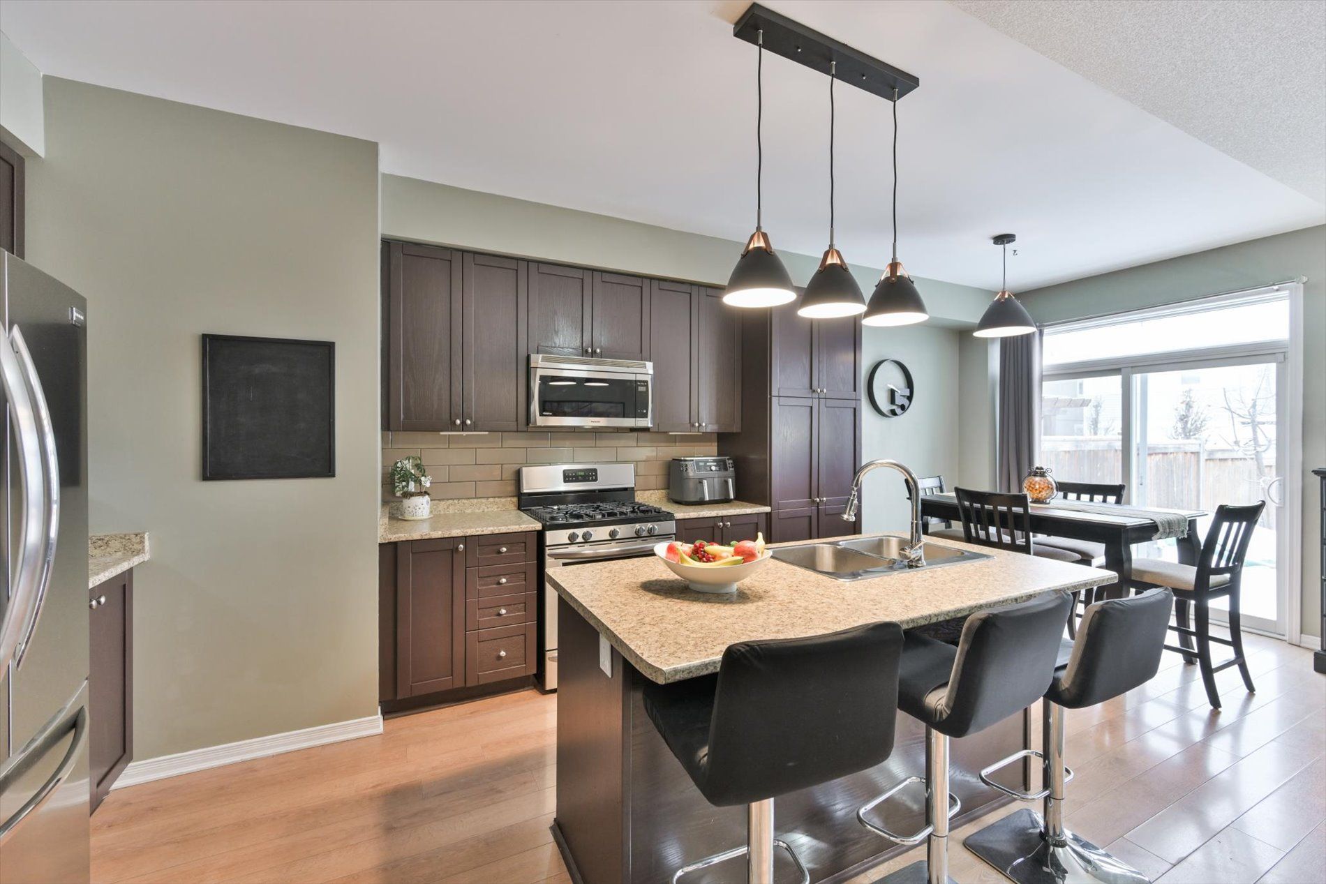 Welcome to this elegant and well-appointed 3+1 bedroom 4 bath 11 year old home, nestled on a private and quiet cul-de-sac bordering a beautiful ravine and walking path. This home features 1496 sf of well designed, efficient and proportional living spaces, equipped with all the modern facilities you need. The main living area is airy and sundrenched with 9' ceilings, open concept, and south facing 8' high picture window and glass patio door with transom window. A chef's dream kitchen with all stainless steel appliances, gas stove, high quality wood cabinetry, full height double door pantry, and large island with breakfast bar, is perfect for family meals or stylish entertaining. The 2nd floor accommodates three comfortably sized bedrooms including a primary bedroom ensuite with long vanity, glass shower, and large walk-in closet. The finished basement features an incredibly functional 681sf, boasting a bedroom (with a safety egress window), 4 pc washroom, living room, office and storage. For outdoor summer bbqs and fun, there is a large private fenced rear yard with a convenient access door from garage to rear yard. This "olde winchester" neighbourhood is beautifully located on a ravine with walking trails, conveniently around the corner from the "east village common" plaza with excellent services: convenience store, pizza, dental, pet food, nail & spa, e. T. C,. Locally, you're minutes from downtown brooklin and straight down thickson rd to downtown whitby, also on durham transit bus route 302. For commuting, there's hwy 407 and whitby go train. Beautiful home, excellent location, convenient amenities, priced right. See feature sheet attached.
