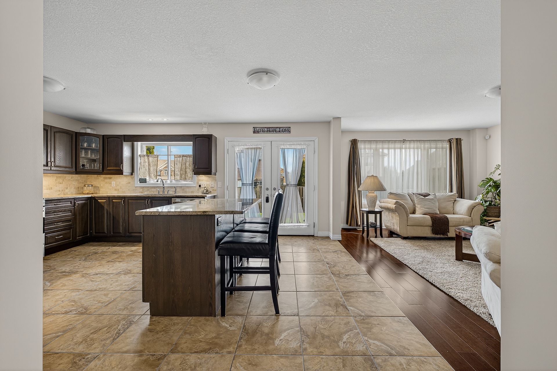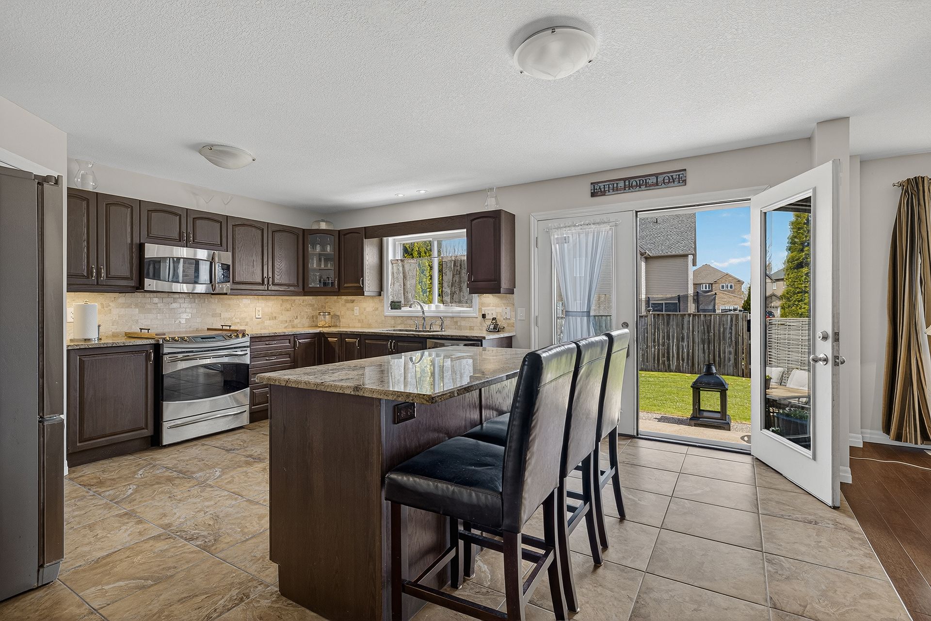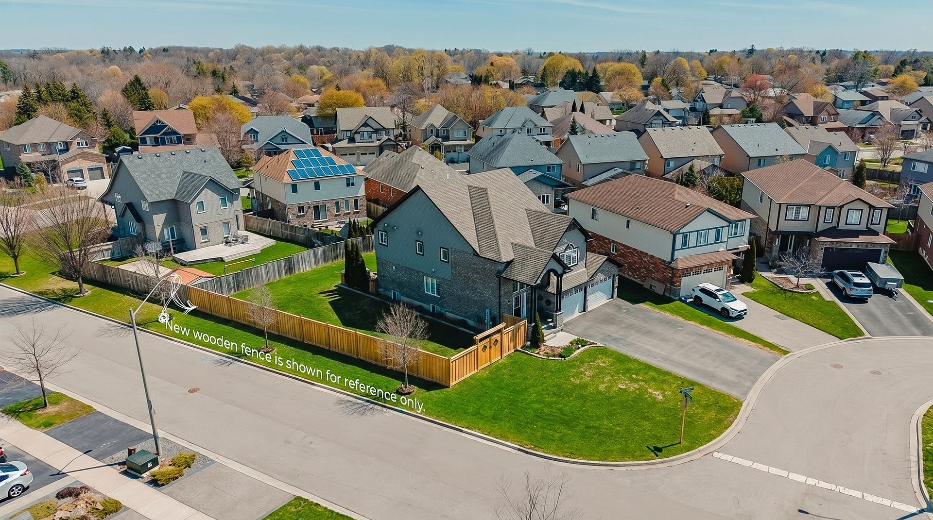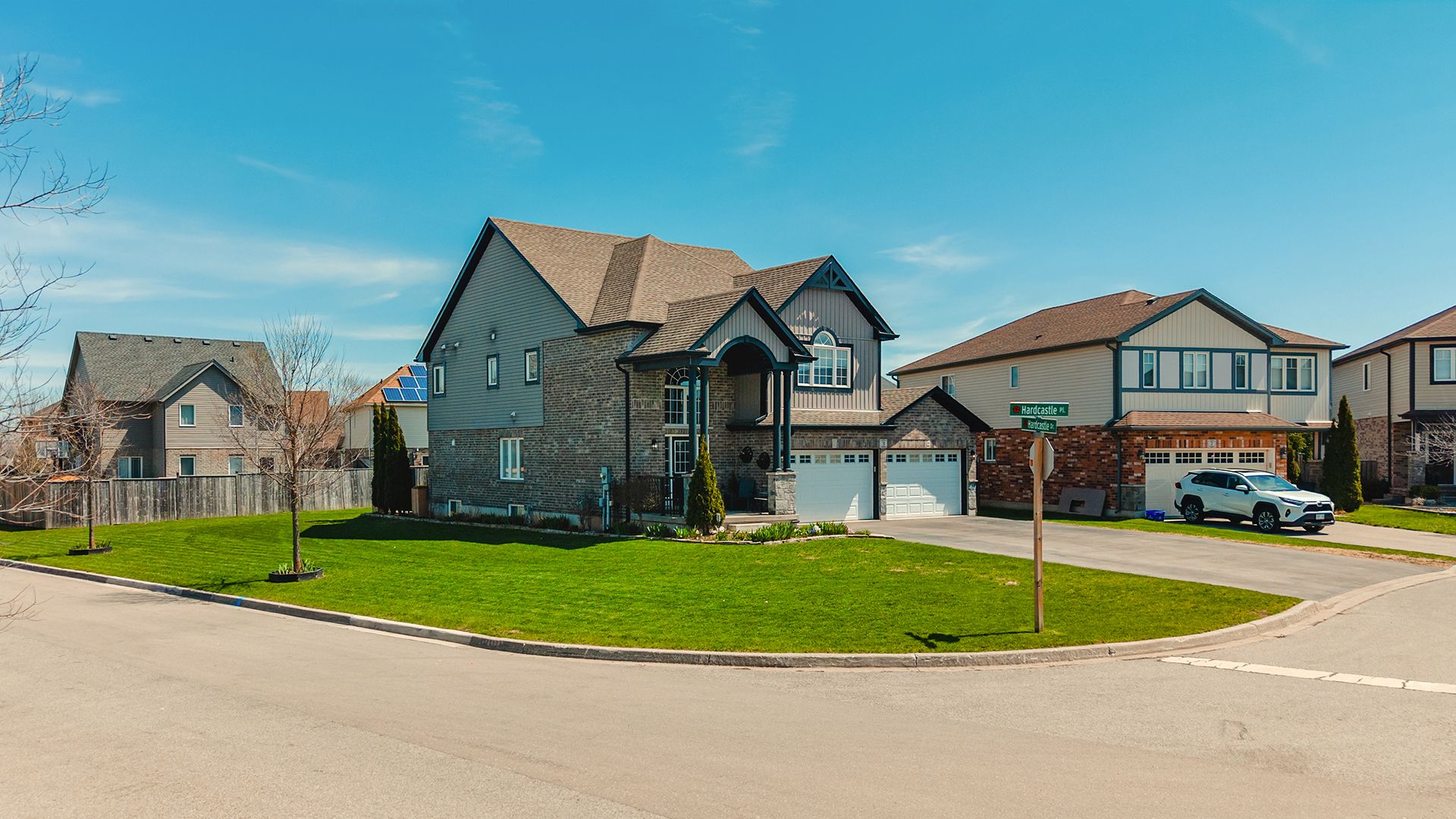 Stunning corner-lot showpiece in cambridge's sought-after west galt community! This beautiful 5 bedroom, 3. 5 bath two-storey home offers over 3,500 sq ft of finished living space with triple-wide garage and one of the largest lots in the neighbourhood. The soaring two-storey foyer with curved espresso staircase and balusters, and grand palladian-style windows sets the tone for this exceptional home. Rich dark hardwood floors flow through the main level, anchored by a chef's kitchen, featuring dark espresso cabinetry, granite countertops, stainless steel appliances, and a large island with bar seating. Entertain effortlessly with a formal dining room, two family living areas, a cozy electric fireplace, and a stunning open-concept layout. Upstairs, the oversized primary suite is a true retreat with a spa-inspired 5-piece ensuite boasting a frameless walk-in shower, corner soaker tub, double vanity, water closet along with a large walk-in closet. Three additional generous bedrooms, a 4-piece bath, and a dedicated upper-level laundry complete the second floor. The fully finished basement is an entertainer's dream featuring a bar, pool table, games area, rec room, full bedroom, and 4-piece bath. Impeccable curb appeal with stunning twilight presence, and proximity to parks, trails, and all amenities. A rare opportunity - don't miss this one!