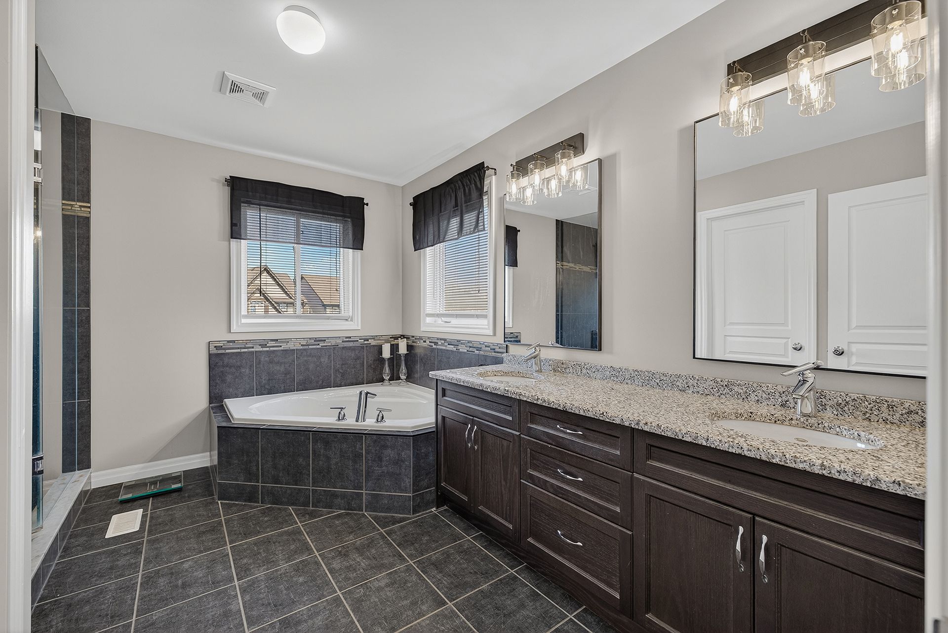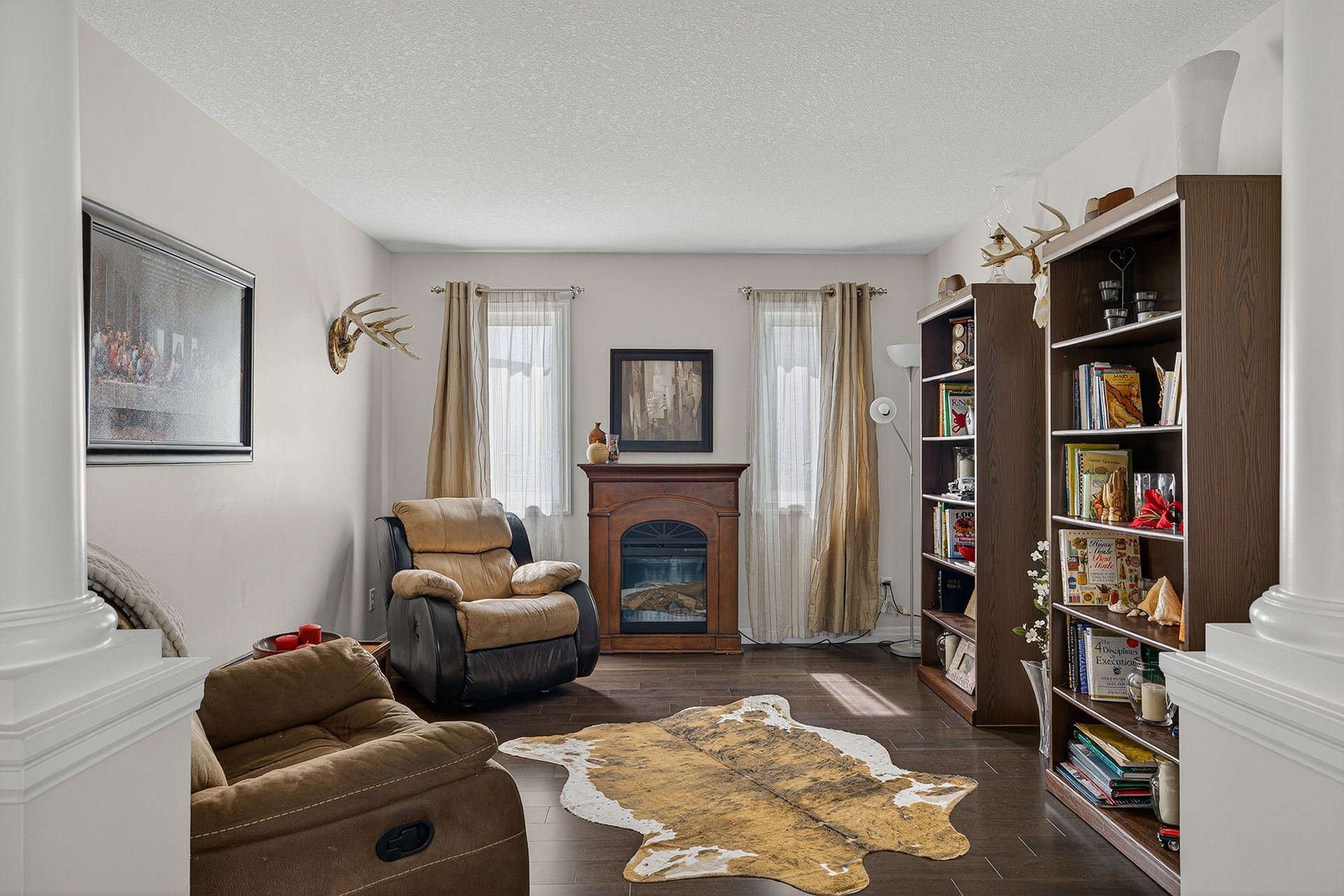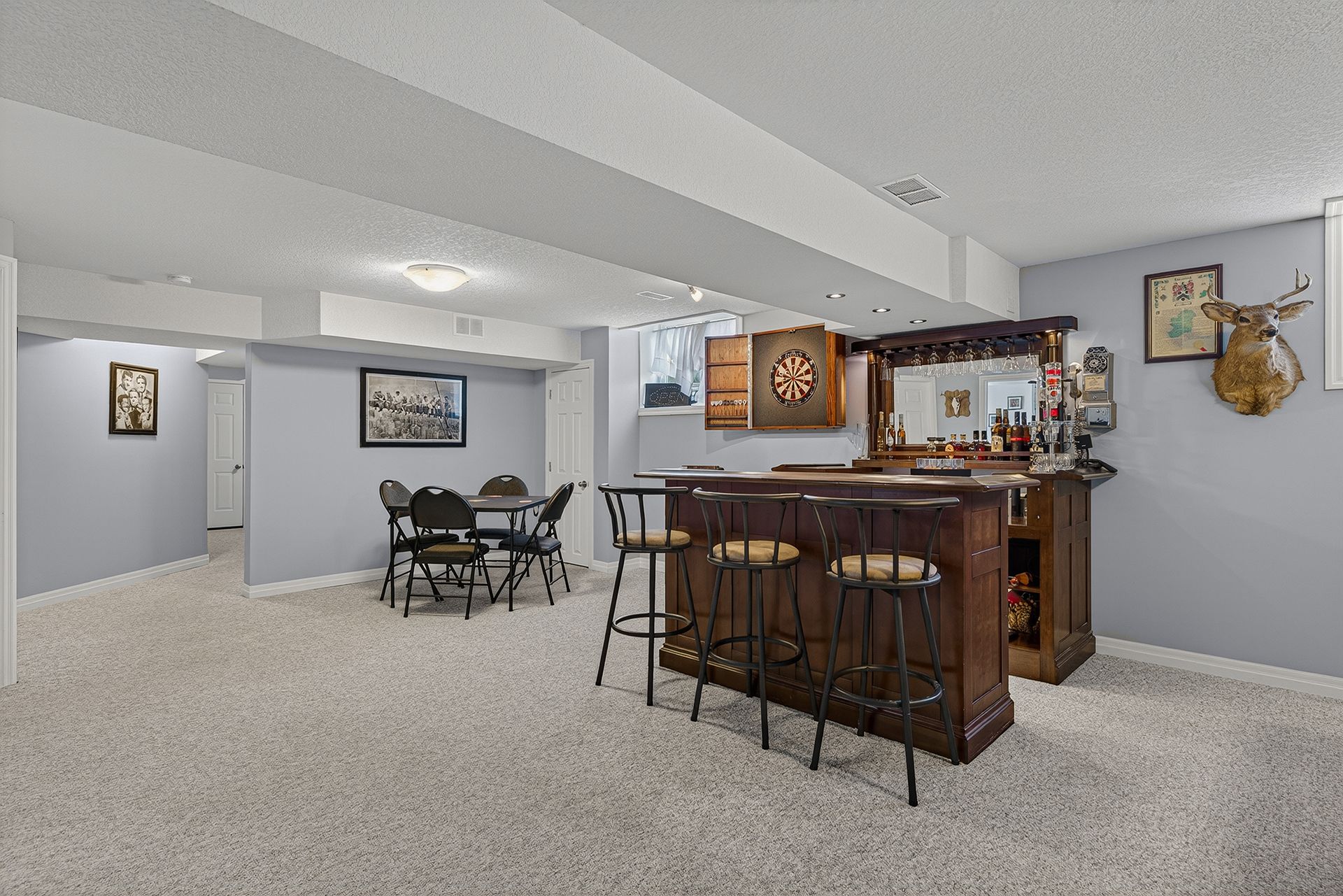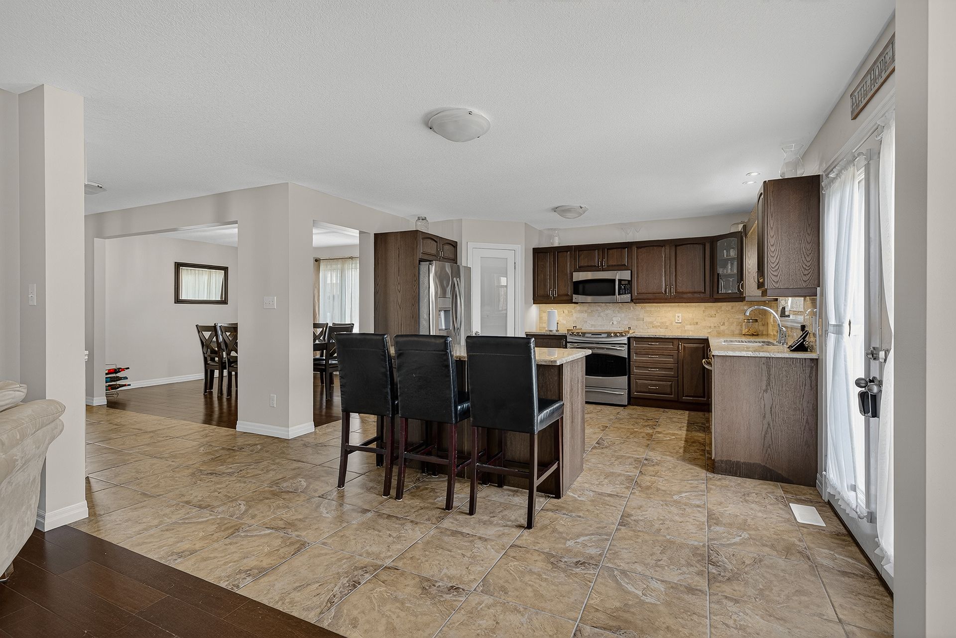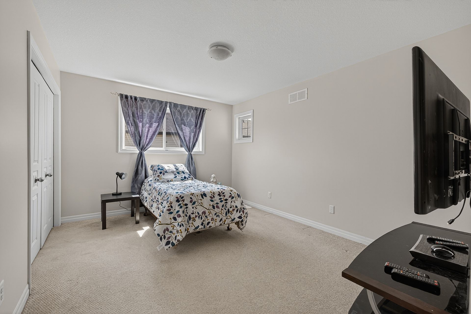 Stunning corner-lot showpiece in cambridge's sought-after west galt community! This beautiful 5 bedroom, 3. 5 bath two-storey home offers over 3,500 sq ft of finished living space with triple-wide garage and one of the largest lots in the neighbourhood. The soaring two-storey foyer with curved espresso staircase and balusters, and grand palladian-style windows sets the tone for this exceptional home. Rich dark hardwood floors flow through the main level, anchored by a chef's kitchen, featuring dark espresso cabinetry, granite countertops, stainless steel appliances, and a large island with bar seating. Entertain effortlessly with a formal dining room, two family living areas, a cozy electric fireplace, and a stunning open-concept layout. Upstairs, the oversized primary suite is a true retreat with a spa-inspired 5-piece ensuite boasting a frameless walk-in shower, corner soaker tub, double vanity, water closet along with a large walk-in closet. Three additional generous bedrooms, a 4-piece bath, and a dedicated upper-level laundry complete the second floor. The fully finished basement is an entertainer's dream featuring a bar, pool table, games area, rec room, full bedroom, and 4-piece bath. Impeccable curb appeal with stunning twilight presence, and proximity to parks, trails, and all amenities. A rare opportunity - don't miss this one!
