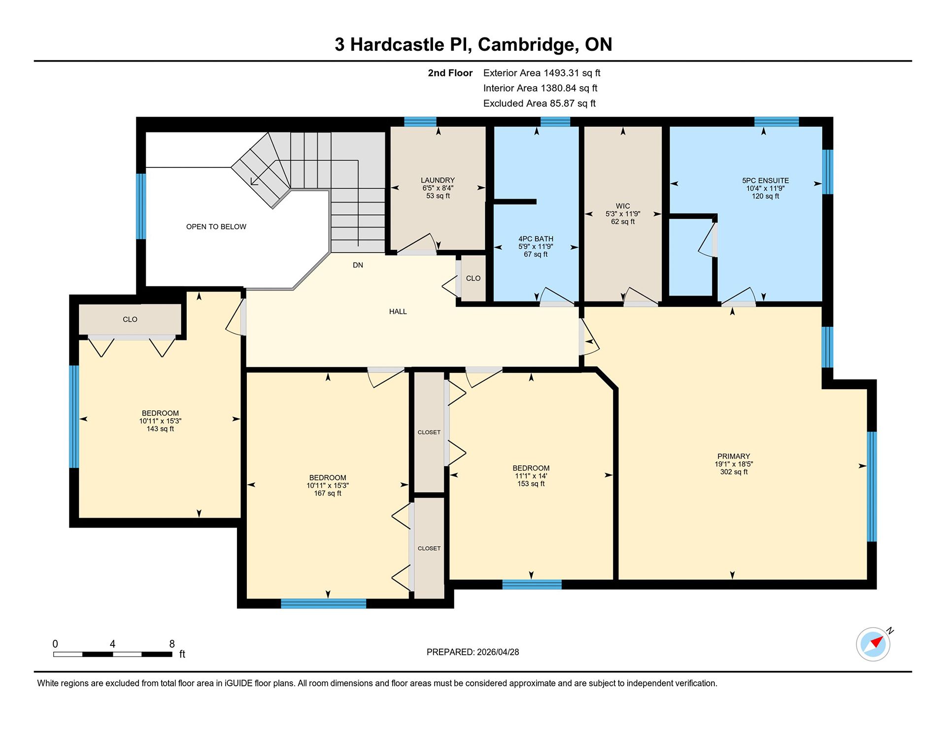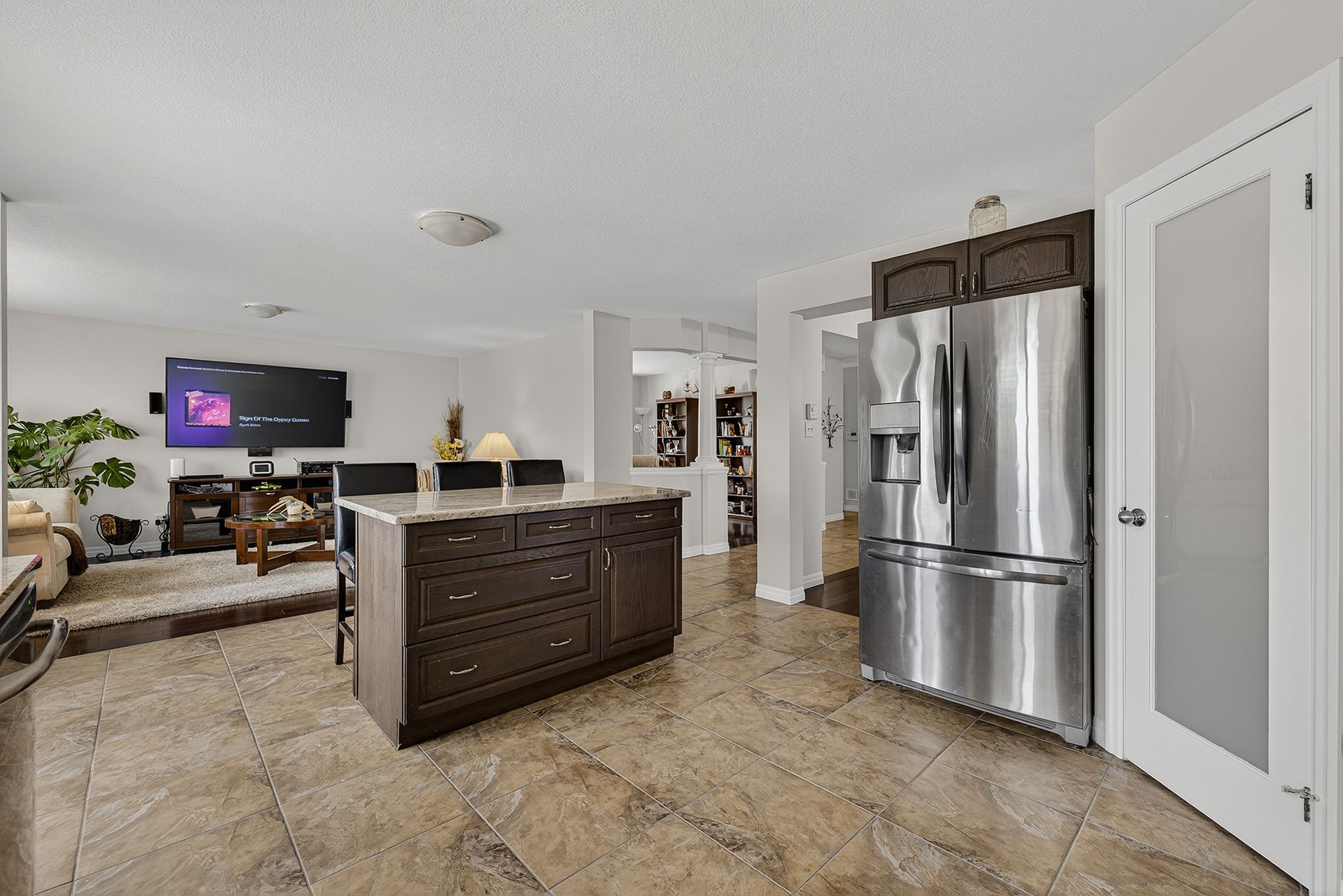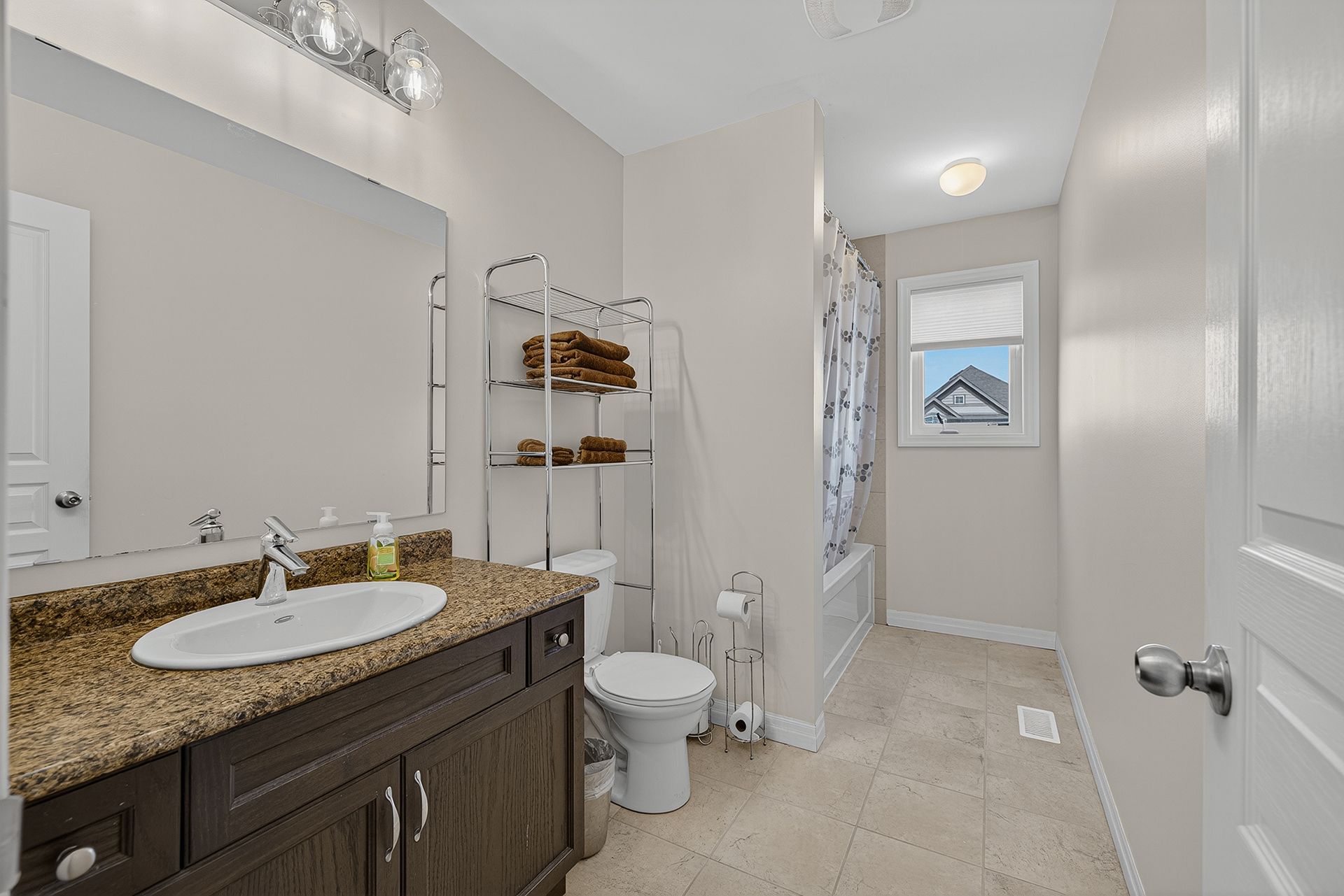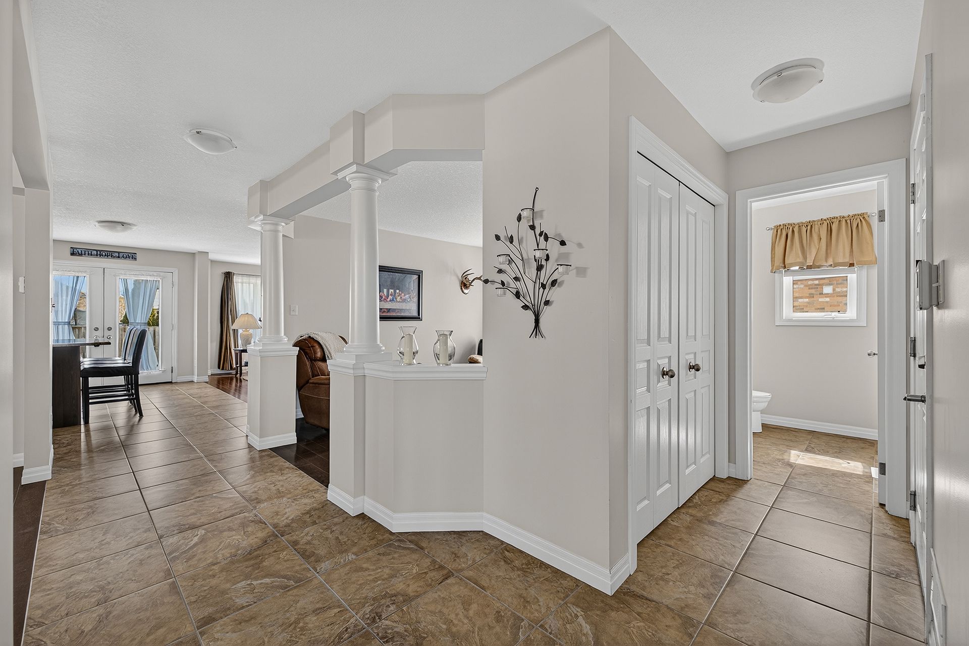 Stunning corner-lot showpiece in cambridge's sought-after west galt community! This beautiful 5 bedroom, 3. 5 bath two-storey home offers over 3,500 sq ft of finished living space with triple-wide garage and one of the largest lots in the neighbourhood. The soaring two-storey foyer with curved espresso staircase and balusters, and grand palladian-style windows sets the tone for this exceptional home. Rich dark hardwood floors flow through the main level, anchored by a chef's kitchen, featuring dark espresso cabinetry, granite countertops, stainless steel appliances, and a large island with bar seating. Entertain effortlessly with a formal dining room, two family living areas, a cozy electric fireplace, and a stunning open-concept layout. Upstairs, the oversized primary suite is a true retreat with a spa-inspired 5-piece ensuite boasting a frameless walk-in shower, corner soaker tub, double vanity, water closet along with a large walk-in closet. Three additional generous bedrooms, a 4-piece bath, and a dedicated upper-level laundry complete the second floor. The fully finished basement is an entertainer's dream featuring a bar, pool table, games area, rec room, full bedroom, and 4-piece bath. Impeccable curb appeal with stunning twilight presence, and proximity to parks, trails, and all amenities. A rare opportunity - don't miss this one!