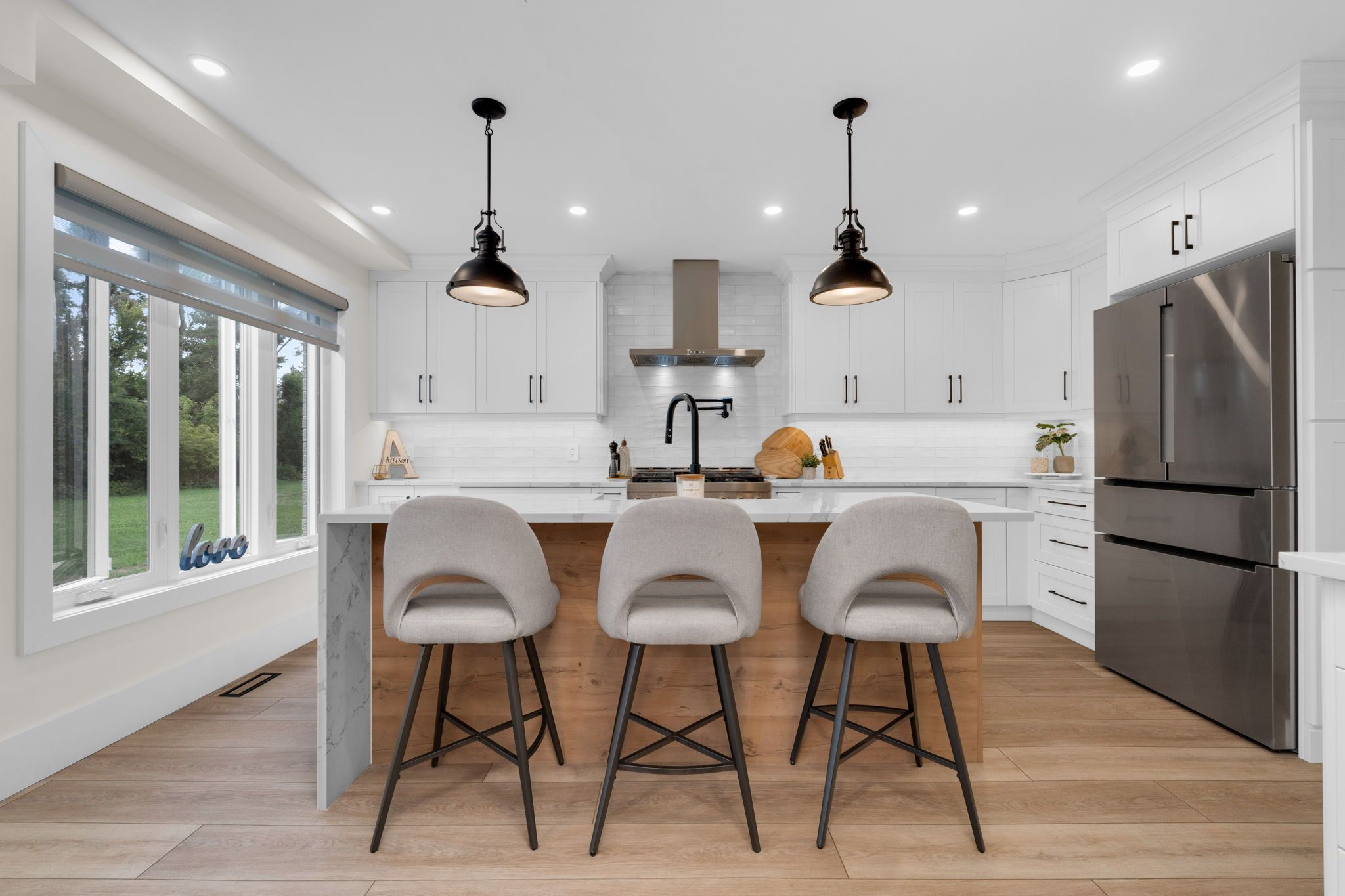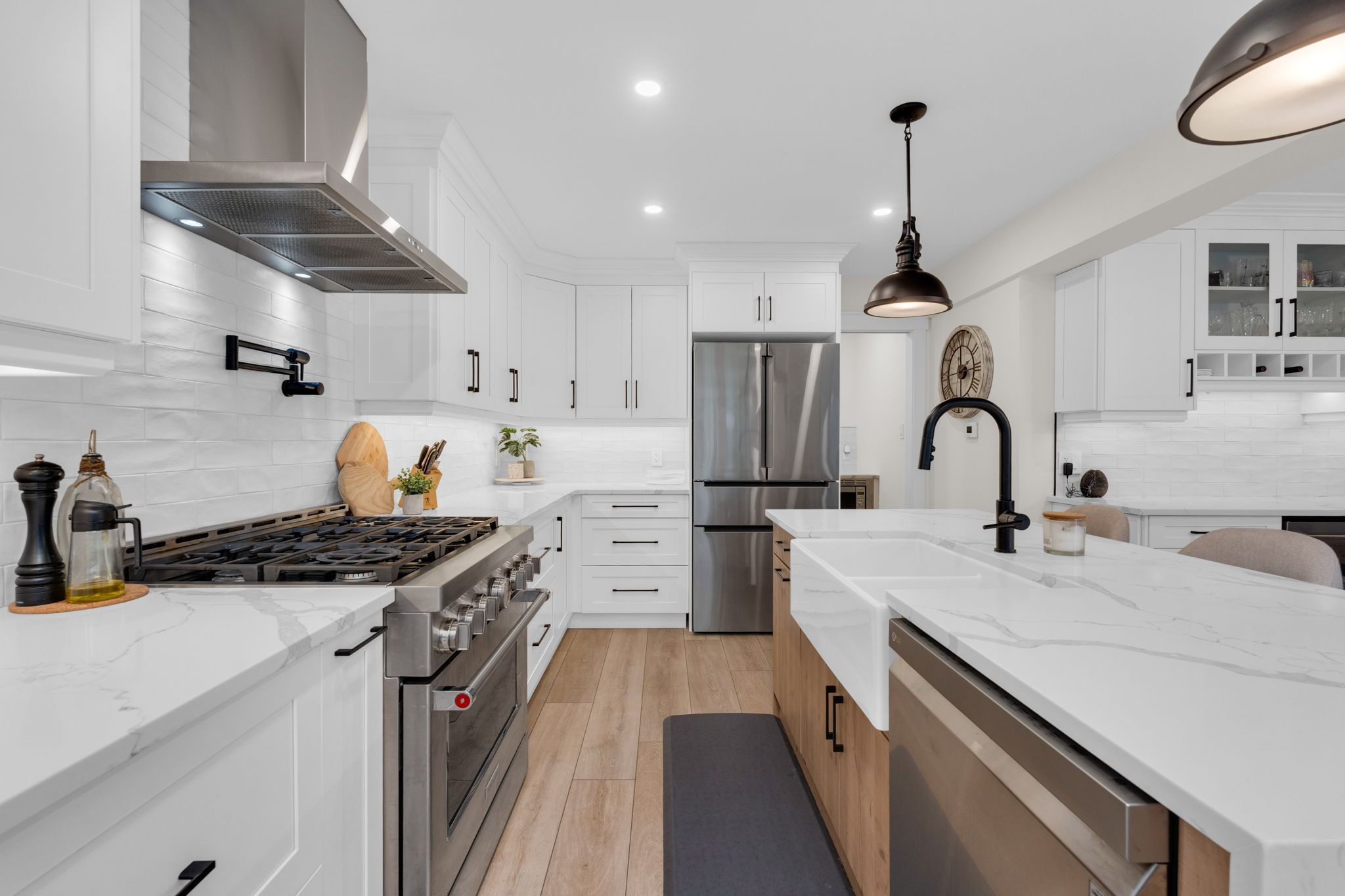 Presenting 3 heatherwood drive in springwater's sought after midhurst community of custom homes, offerings family-centric old-school charm. The curb appeal of this home starts from the moment you drive through this established neighbourhood with mature trees, where each home is unique. With over 2400 sq. Ft. Of functional living space and an open main level floor plan - this fully remodelled home offers a perfect blend of style, form and design. Tasteful neutral decor with contemporary finishes throughout incorporating extras like top-to-bottom oak staircase, hardwood flooring, feature walls, gas fireplace, walk-in pantry with custom storage, beverage station, study nook. Custom upgraded chef's kitchen - truly the heart of this home - has been renovated to today's modern standards with an oversized island for serving/prep work, exceptional stainless steel appliance package with gas range, s/s range hood, farmhouse-style sink, quartz countertops, plenty of cabinets for storage, as well as a separate butler's pantry (built-in microwave) for even more storage space! Open concept from the kitchen to the living/dining rooms allows for effortless family connection and entertaining. You will appreciate the natural light throughout the main level from the large wrap around window package. Convenience of main floor office, 2pc guest bathroom, laundry with access to double car garage. Private upper level presents a large primary bedroom + oversized walk in closet with organizers + stunning 5pc ensuite (dual sink vanity, free-standing soaking tub, separate glass walled shower, as well as 3 comfortable bedrooms for family/guests, renovated main bath. Extend your living space outdoors into the large backyard of this premium lot - for family play time, outdoor games, room for four-legged friends to frolic. This property easily meets the needs of a busy household - even a home-based business (with ample parking for vehicles, rvs) - with plenty of room for everyone's comfort!