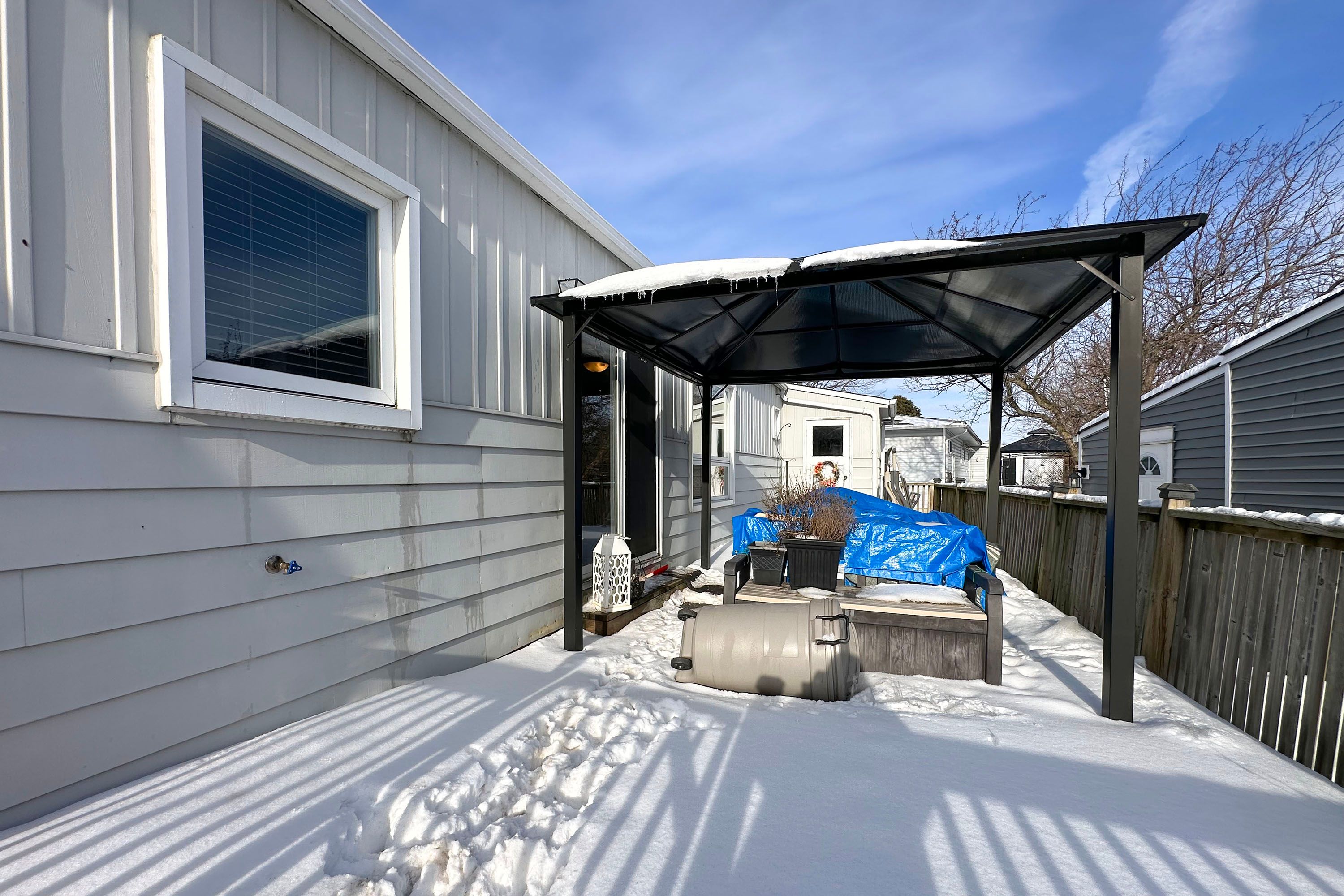 Welcome to wilmot creek (an adult lifestyle community situated along the shores of lake ontario. This 2 bedroom bungalow has a lot to offer. The double driveway is located at the side of the house giving lots of frontage as it is a corner home. Kitchen boasts stainless steel appliances. Pantry and walk-out to a 10 x 30 (approx) deck. The living room features a gas fireplace and an open concept design. The primary bedroom has a large walk-in closet and oversized front window. This home shows pride of ownership. The $1300. 00 monthly maintenance fee includes snow removal from the driveway, sewer charge and full access to an exceptional range of amenities, including (but not limited to) a 9-hole golf course, recreation centre, pools, gym, sauna, tennis/pickleball court, lawn bowling, horseshoes and over 100 activities, leagues and special interest groups. A rare opportunity to enjoy carefree living in a vibrant, active community.