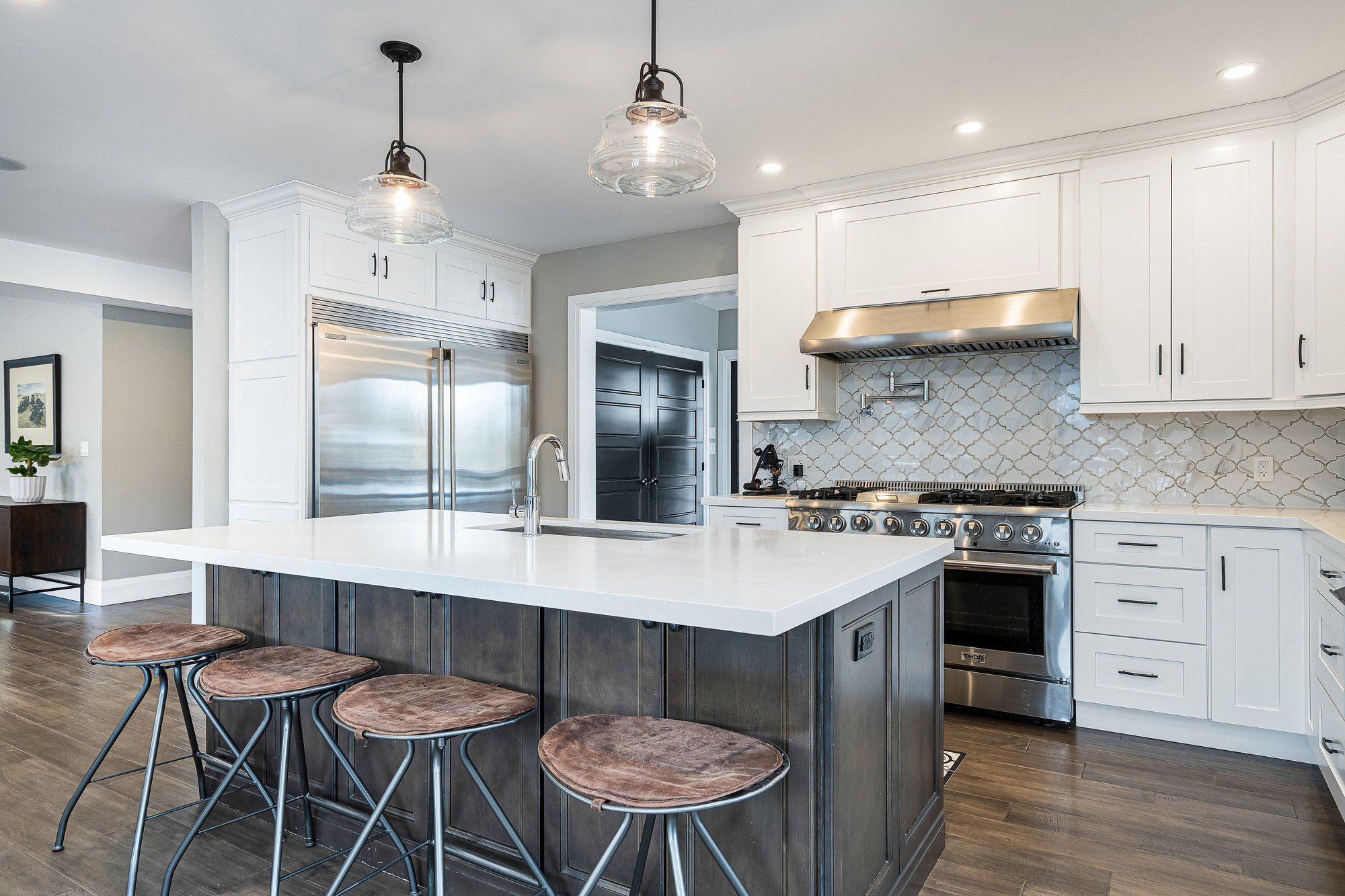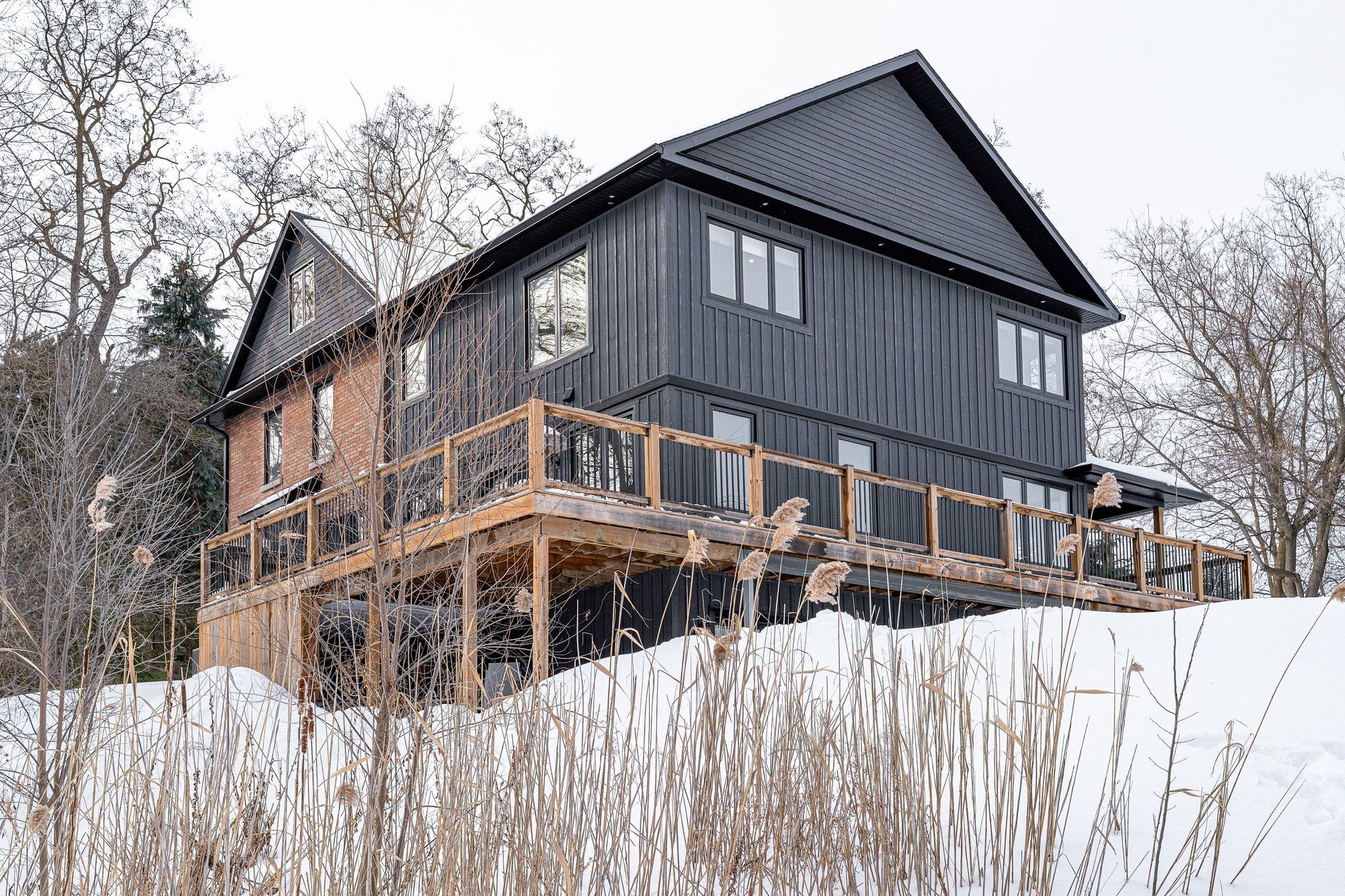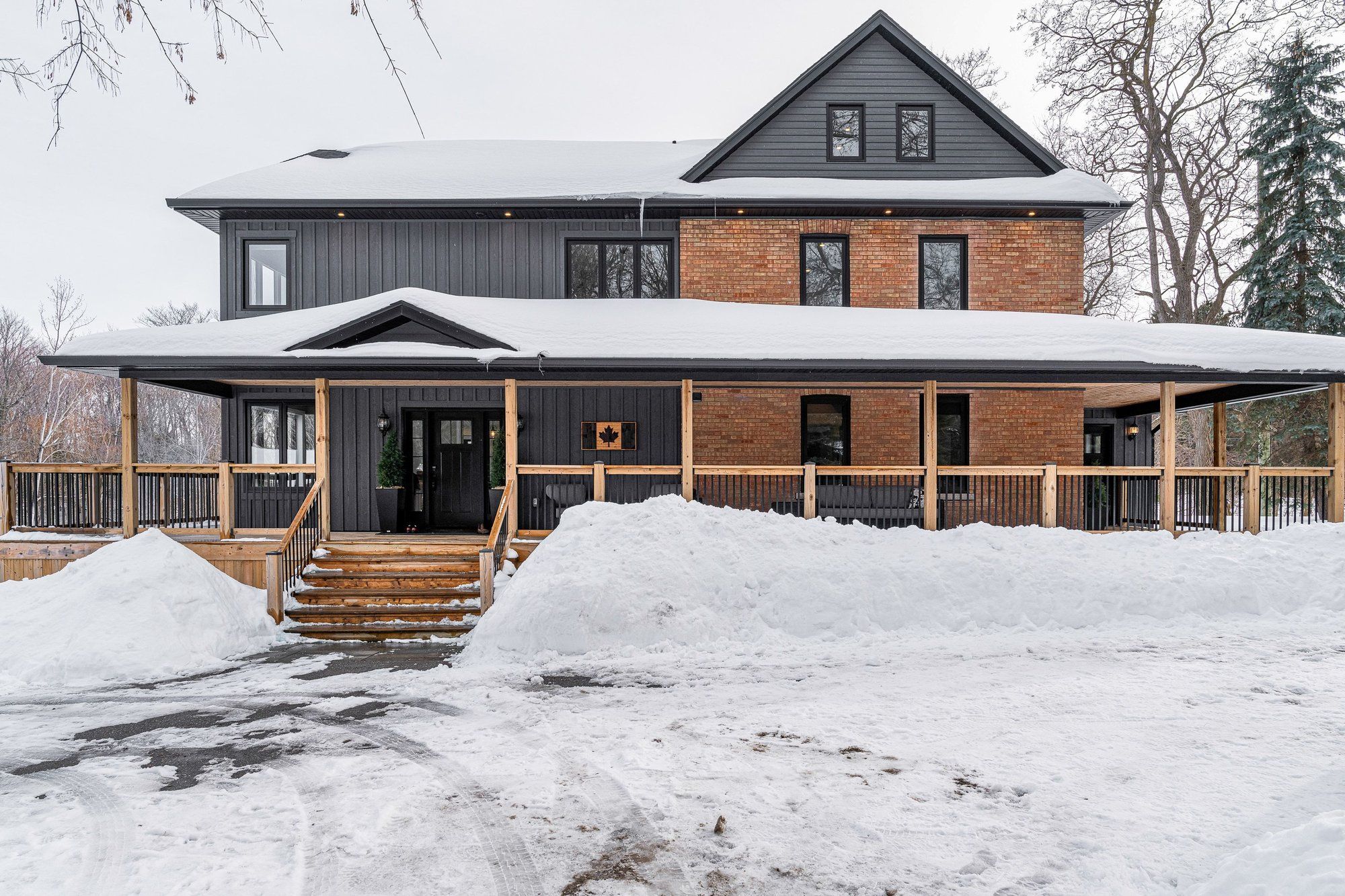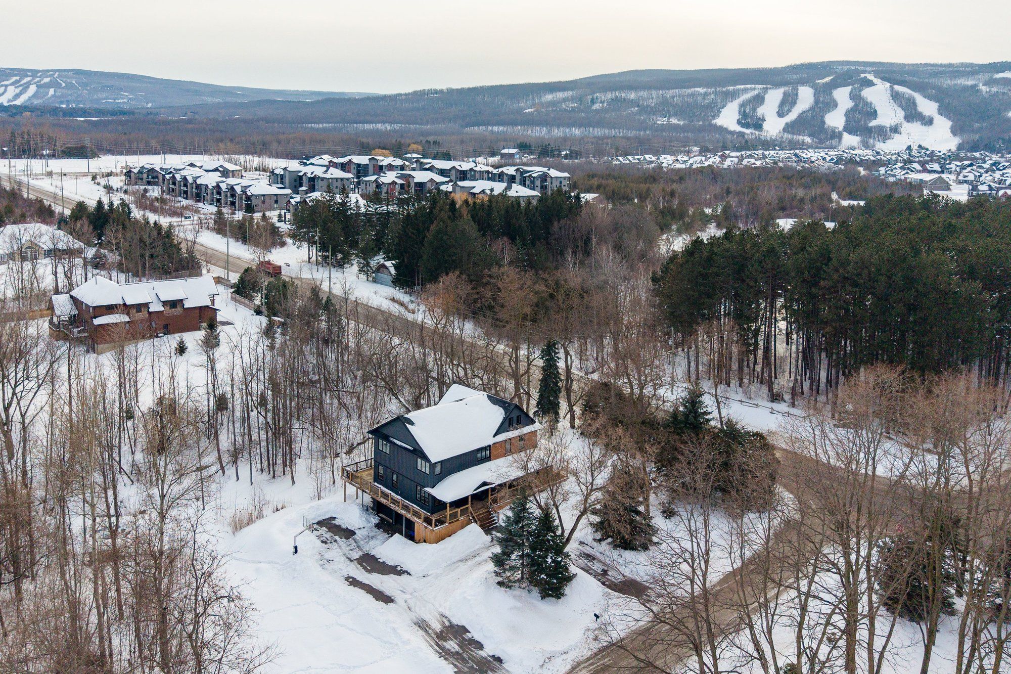 This beautifully crafted, contemporary brick home delivers a refined balance of modern style and mountain-inspired warmth. Thoughtfully designed, the original farmhouse has been updated and substantially added to, with upscale finishes and inviting natural textures... It's equally suited to full-time living or effortless weekend escapes. The main level is built for family gatherings and entertaining with a showpiece gourmet kitchen anchoring the space, complemented by a generous dining area designed to host with ease. Oversized windows frame the surrounding landscape, while a wrap-around deck and covered porch create seamless indoor-outdoor living in every season. With five spacious bedrooms and six well-appointed bathrooms, plus a dedicated office, double garage, and abundant storage for recreational gear, the home offers room and privacy for everyone. The versatile third level provides flexible space for extended family or guests, and offers a separated recreational space for the kids. Outdoors, professionally landscaped grounds set the stage for relaxation - enjoy evenings around the fire pit or follow the gentle creek that borders the property. Ideally positioned on 3/4 of an acre, just moments from local trails and only minutes to the slopes, georgian bay, collingwood, and blue mountain, this exceptional home captures the essence of upscale four-season living in a remarkable natural setting. A rare opportunity to own a property where style, comfort, and location come together beautifully.