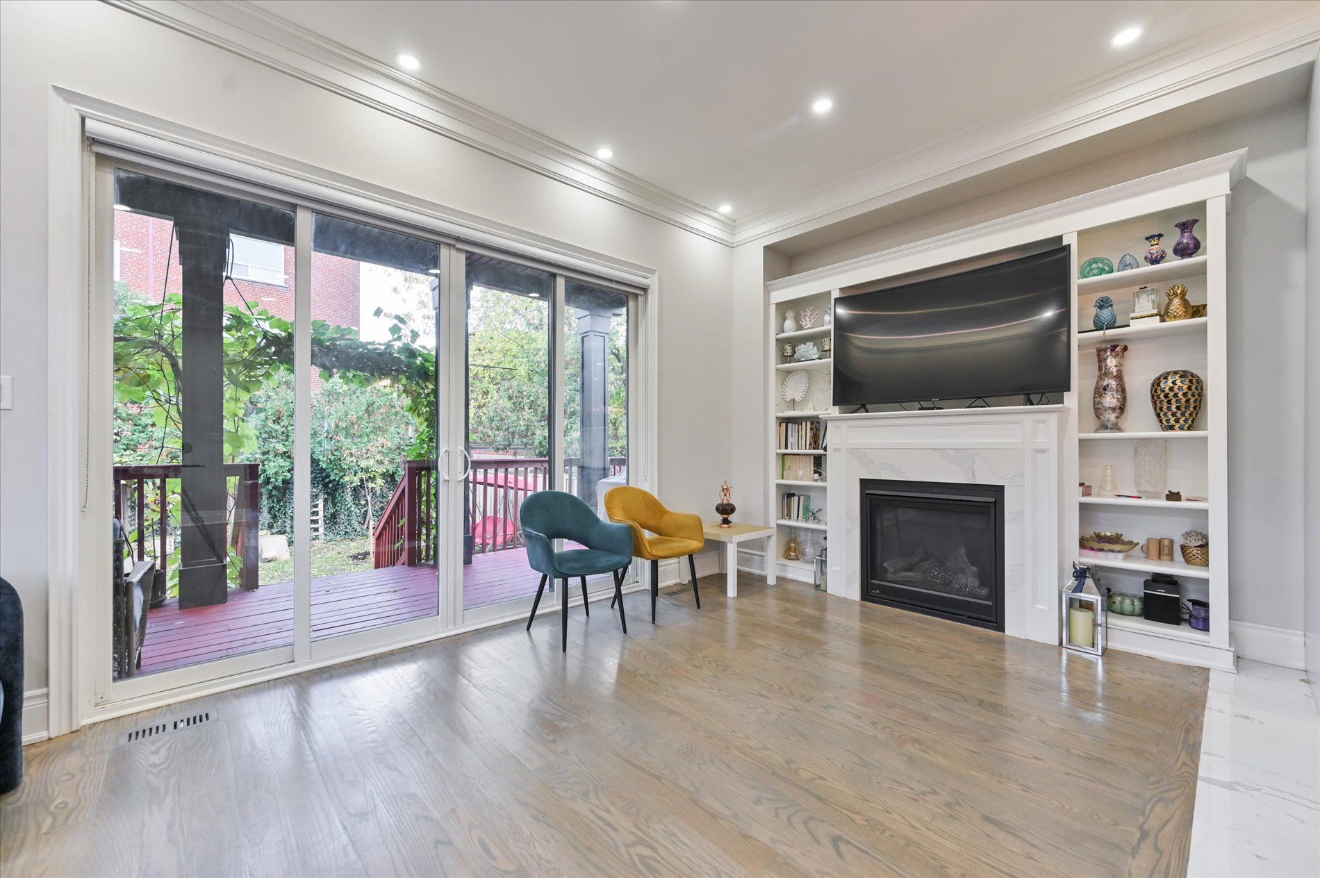 • Private backyard with a covered porch for relaxation and play.