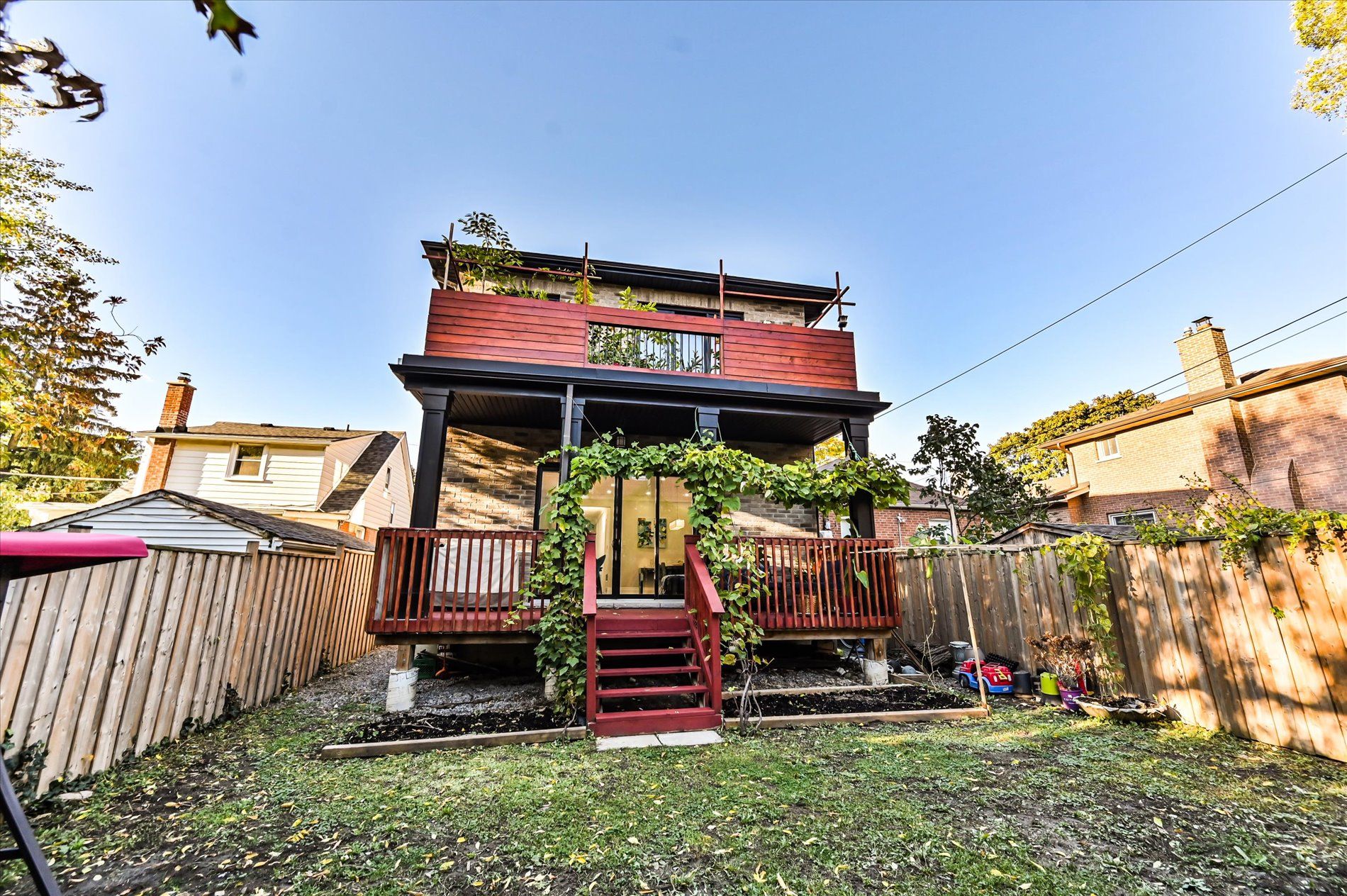 Custom all-brick family home in topham park. Built for the owner's own use with careful attention to detail, this solid all-brick home delivers space, function, and comfort for real family living. The main floor features a stunning open-concept layout with a chef-inspired kitchen, dining, and family room combined - ideal for both everyday life and entertaining. Tall ceilings, hardwood floors, large windows, and a skylight bring natural light throughout. The home offers 7 bedrooms in total (4 up + 3 down), making it ideal for larger families or multigenerational living. A separate side entrance provides rental potential or the option for a fully self-contained in-law suite. The principal bedroom is a private retreat with a walk-in closet, spa-style ensuite with soaker tub and rain shower, and a private balcony for morning coffee. The second floor includes two full bathrooms plus one half bathroom and convenient laundry. A covered porch off the main living area extends your everyday space - perfect for unwinding in the shade, enjoying summer rain showers, or watching kids play in the generous, fully fenced backyard. Located on a quiet, well-loved street in topham park, a neighbourhood where families stay long-term and many homes are being rebuilt, making this a sound investment. Walk to topham park for playgrounds, splash pad, baseball, soccer, pickleball, and community programs at the clubhouse. Enjoy the best mix of big-box and boutique shopping nearby, easy dvp access, and convenient travel with both the subway and lrt within reach. A rare opportunity to own a thoughtfully built home in a family-first community. ** open house sat apr 4 & sun apr 5, 2-4pm **