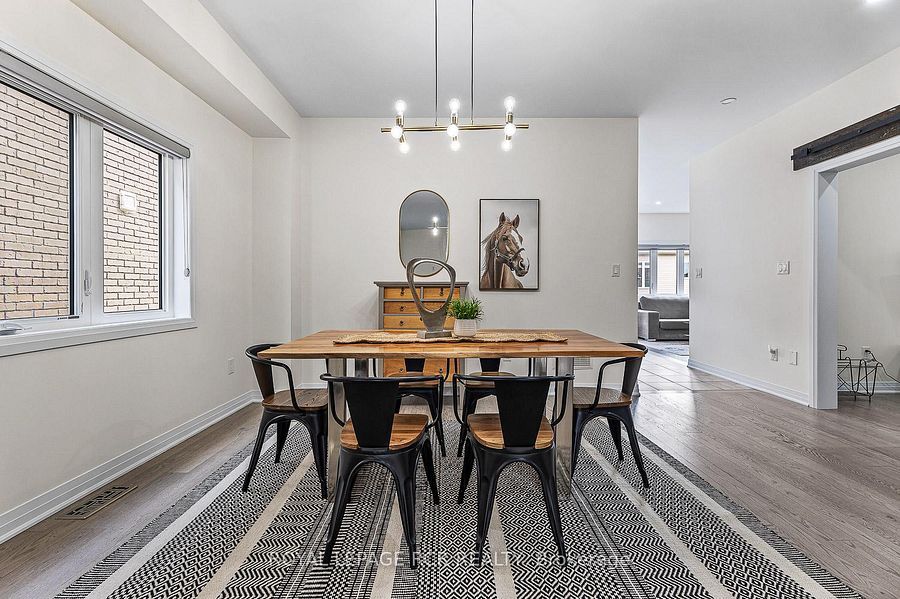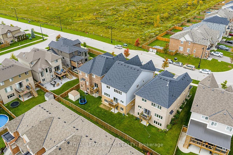 Perfectly located in a sought-after neighborhood in grand valley this custom upgraded home offers lots of space for the entire family. In fact, it is the largest home by square footage on the street. The spacious main floor features hardwood flooring throughout. The piece de resistance is the open-concept kitchen, which was custom-built to add an extra 3 feet of space, making room for an amazing full-size fridge and full-size freezer. The kitchen also features a gas stove, built in ovens, quartz countertops and center island all overlooking the family room with custom built-ins and gas fireplace. Off to the side of the open-concept living and dining area is a perfect den currently used as the children's tv/play area, which would also make for a great office space. On this level you will also find a great mudroom with built-in benches and shelving, including a direct walkout to the two-car garage. Upstairs you will find four bedrooms: the primary and 2nd bedrooms have full ensuites and the 3rd and 4th bedrooms share a jack and jill bathroom. Upstairs you also find an upgraded laundry room. The lower level is fully finished with a full walkout to the backyard, pot lights, and a large room currently being used as a gym. There is also a wet bar leaving lots of opportunity for a potential in-law suite. All this is within walking distance to the quaint town of grand valley with all the essentials of daily life including restaurants, shopping, a recreation centre, and a public school. Just a short 15-minute drive to orangeville, 60 minutes to pearson international and downtown brampton making this a perfect home for those who work from home and those who must commute. *please note the lower level measurements include a separate enclosed gym area (17. 94 x 10. 82 feet)*