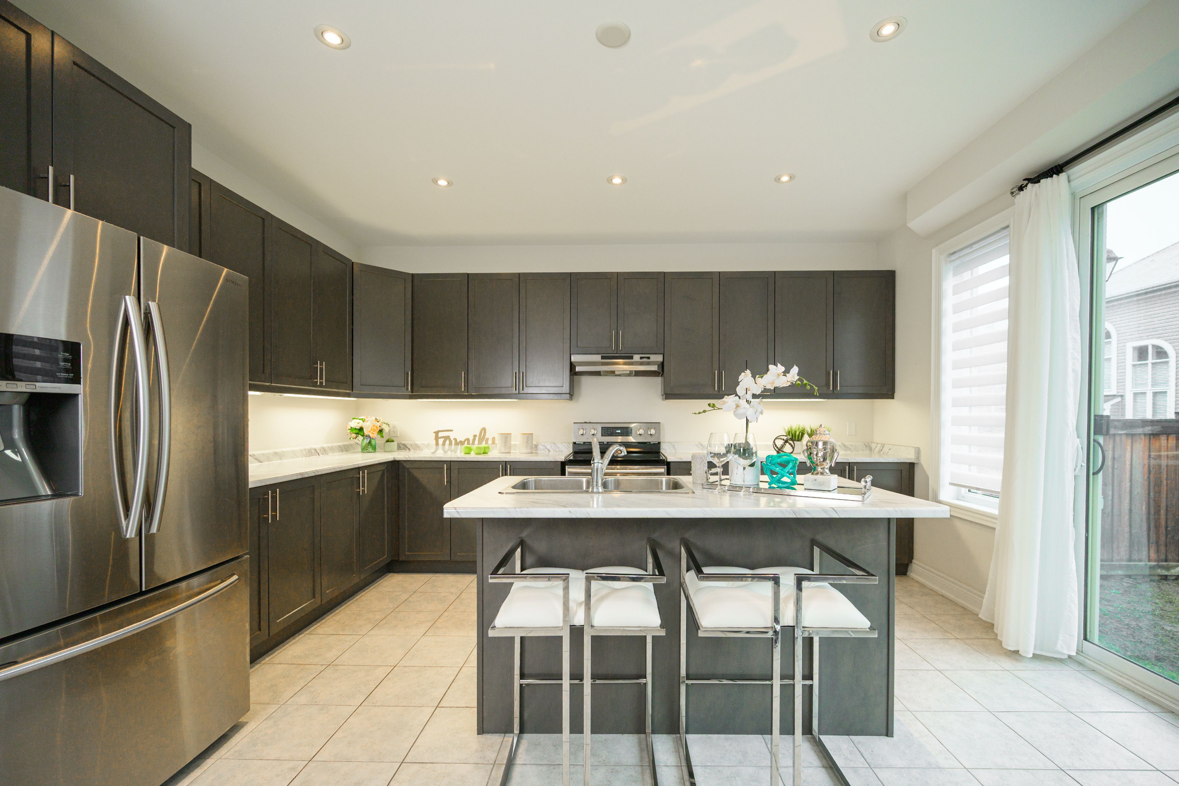 • Large kitchen featuring center island and stainless steel appliances.