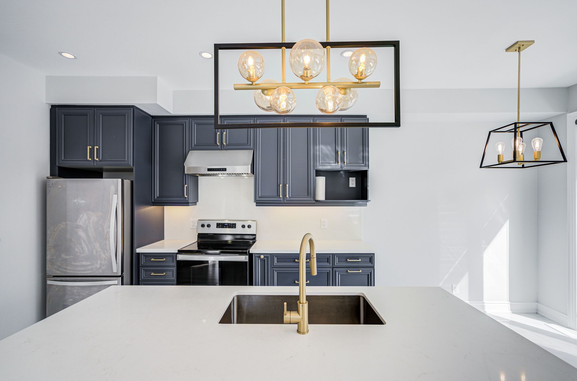 • Upgraded kitchen finishes and modern light fixtures throughout.